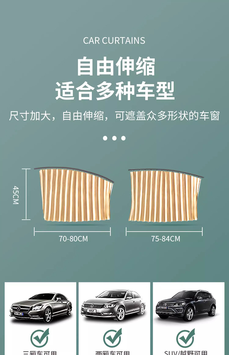汽车遮阳帘轨道式小车窗帘防晒隔热磁吸遮阳挡车内用儿童隐私侧窗