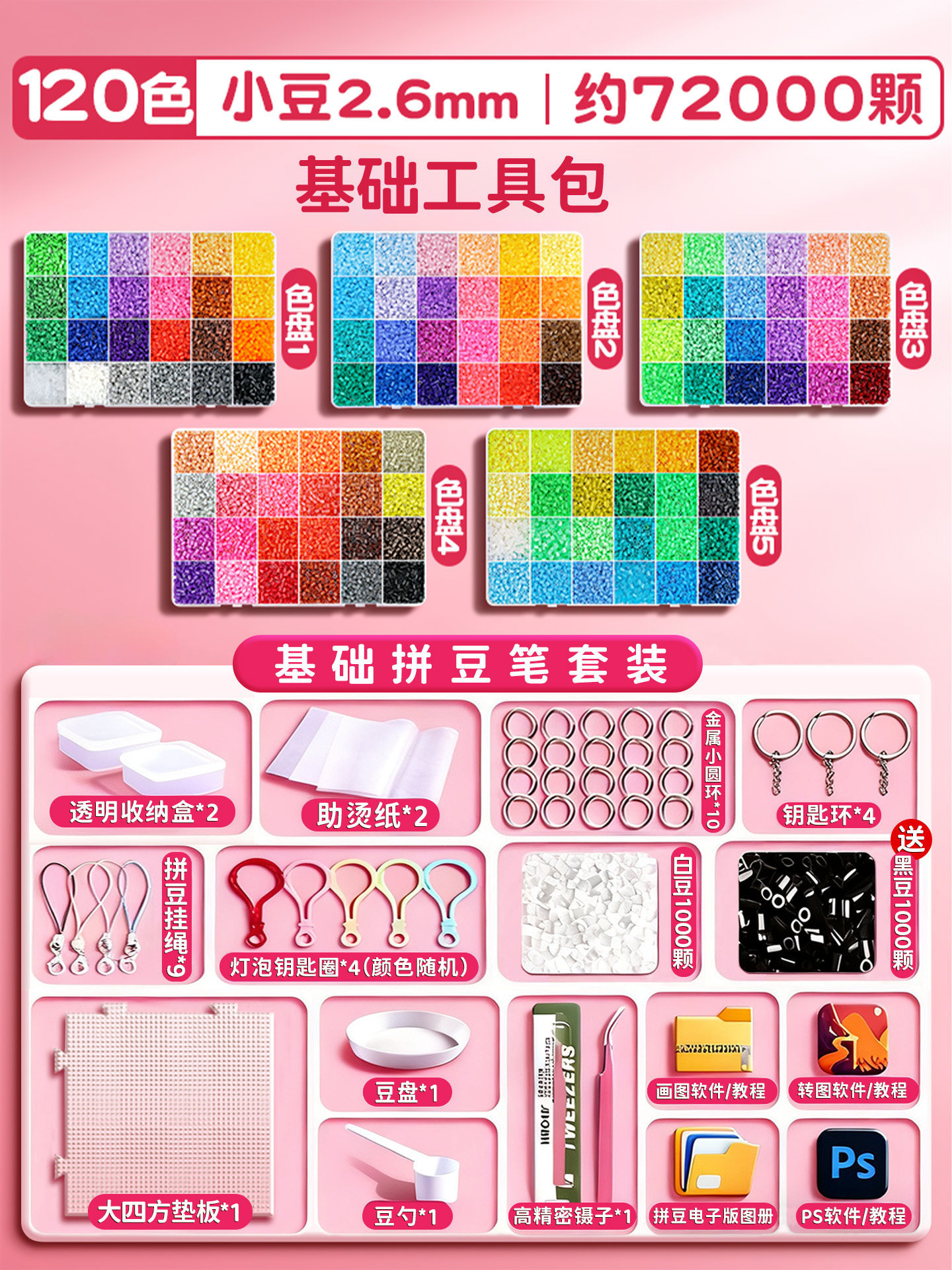 拼豆材料包益智玩具拼图2.6mm融合小豆diy手工套装MARD黄豆豆同款