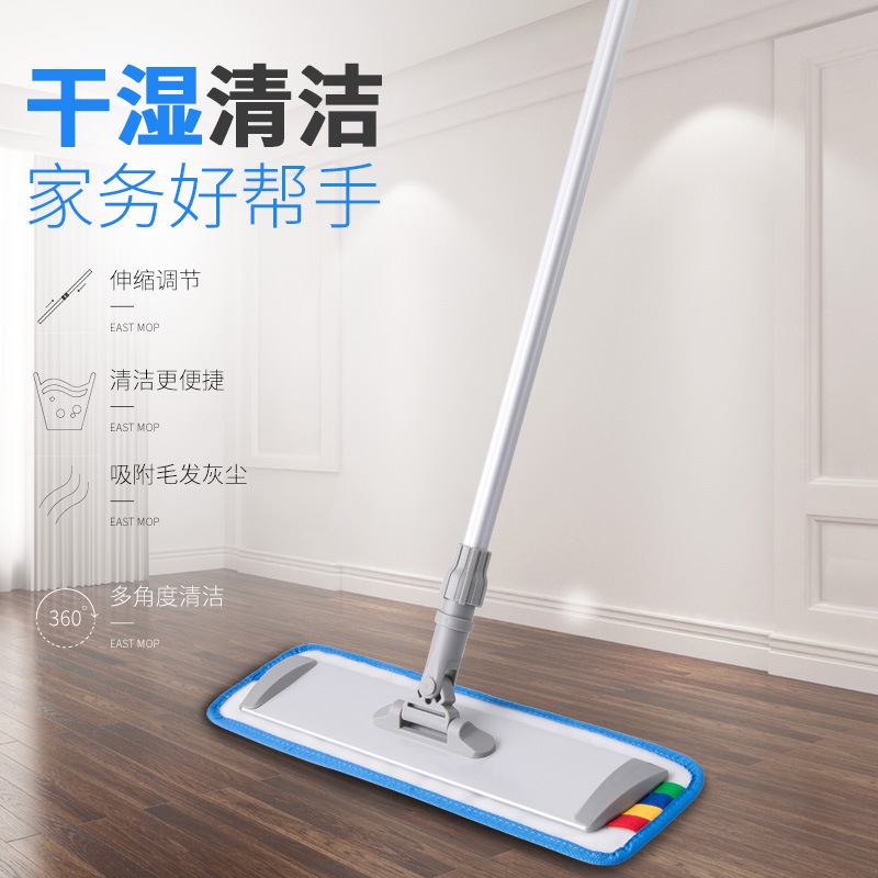 平板拖把 铝合金大拖把干湿两用排拖粘扣式家用拖把超细纤维拖把