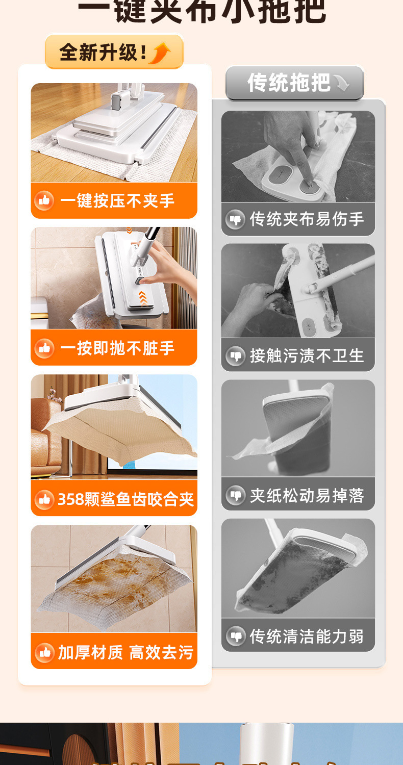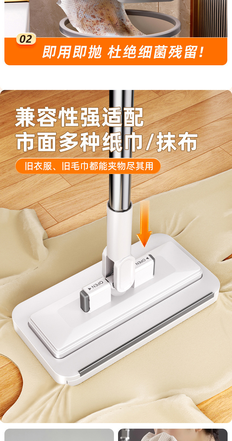 2025新款家用一拖免手洗多功能懒人夹布平板拖地神器净洗脸巾拖把