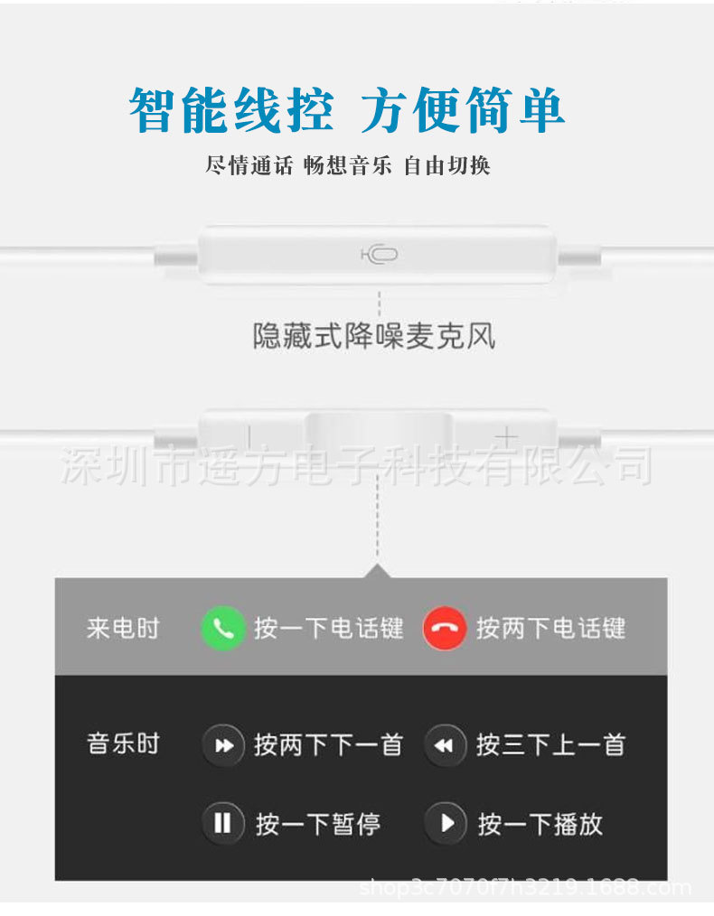 遥方Type-C入耳式重低音线控有线耳机适用于iPhone苹果15安卓手机