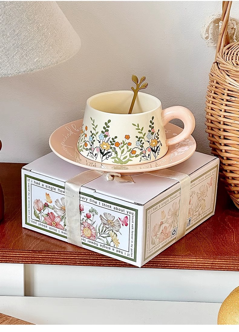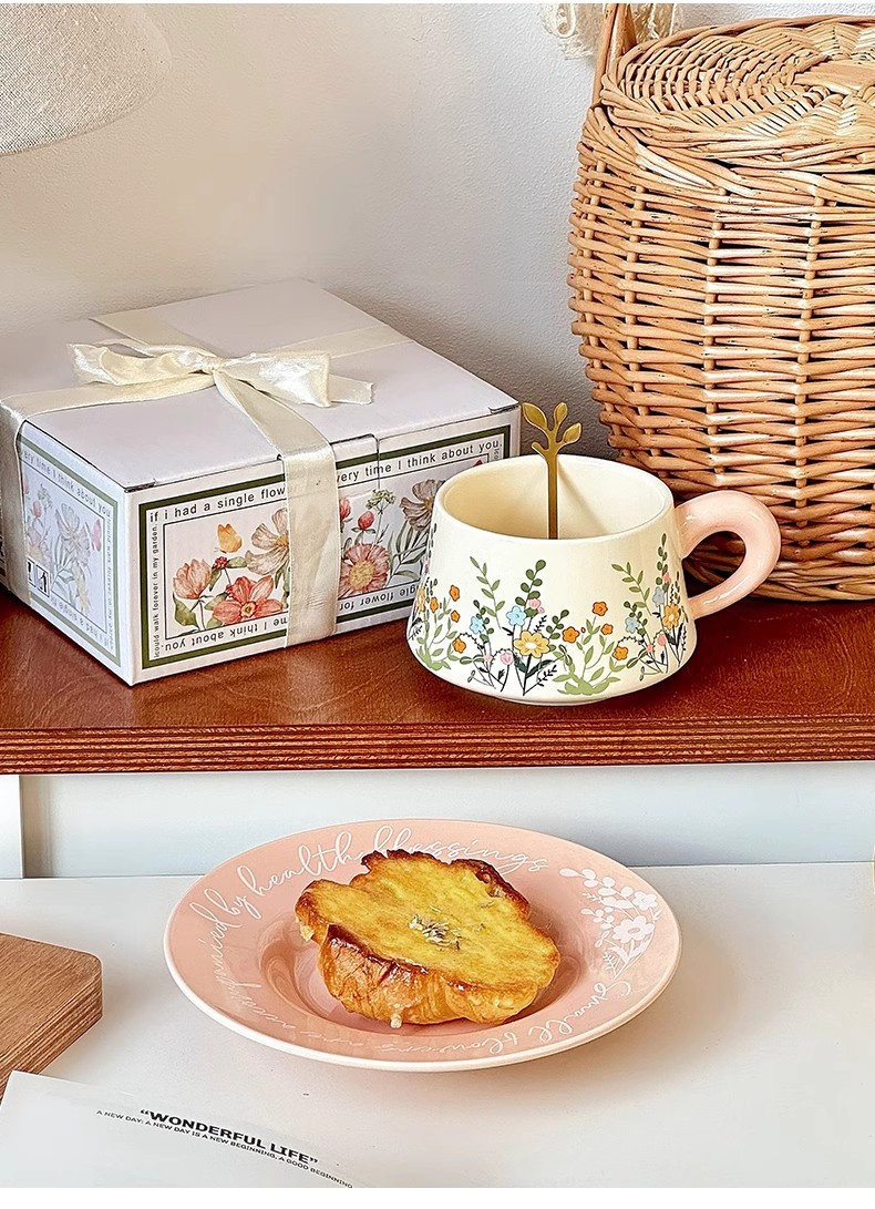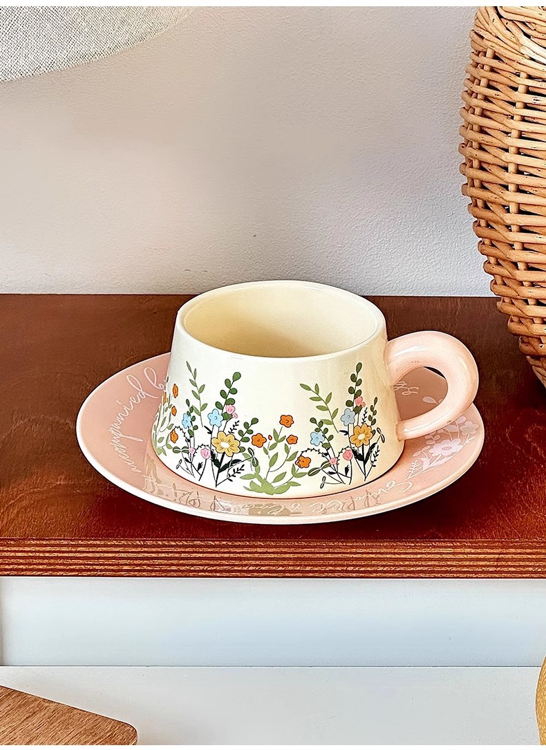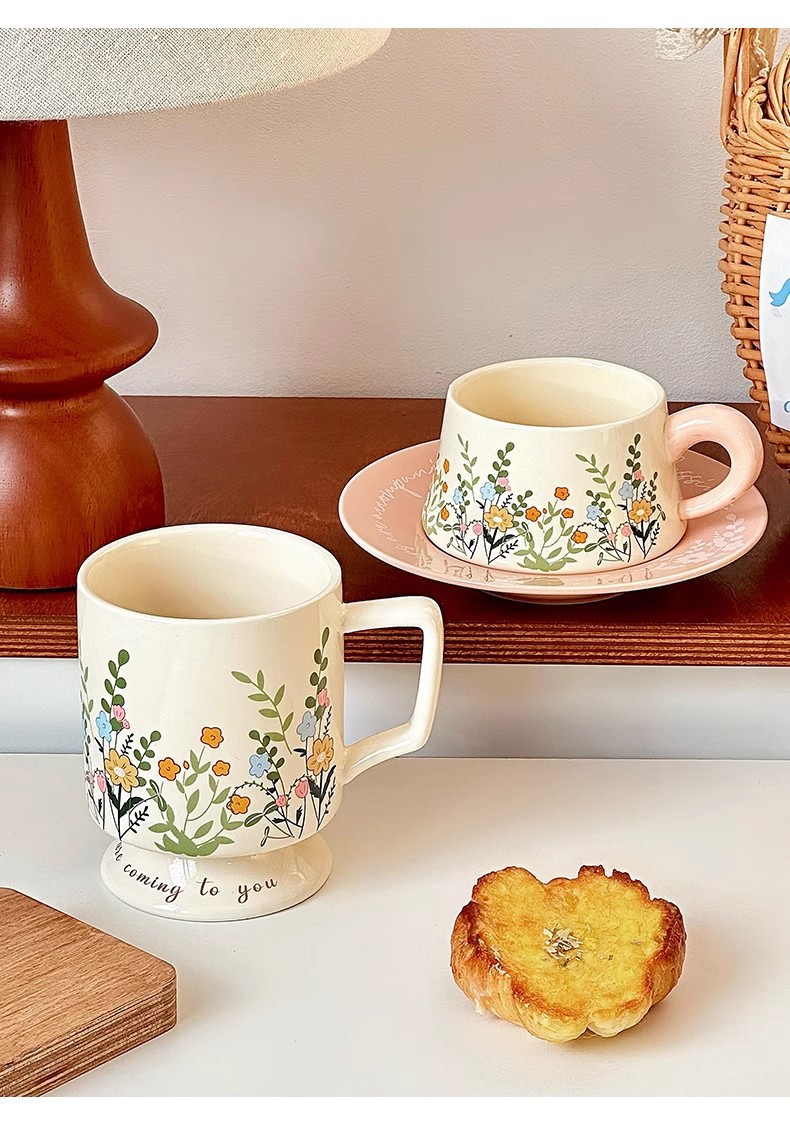 原创设计感小黄花咖啡杯碟套装陶瓷马克杯小众情侣杯子女生伴手礼