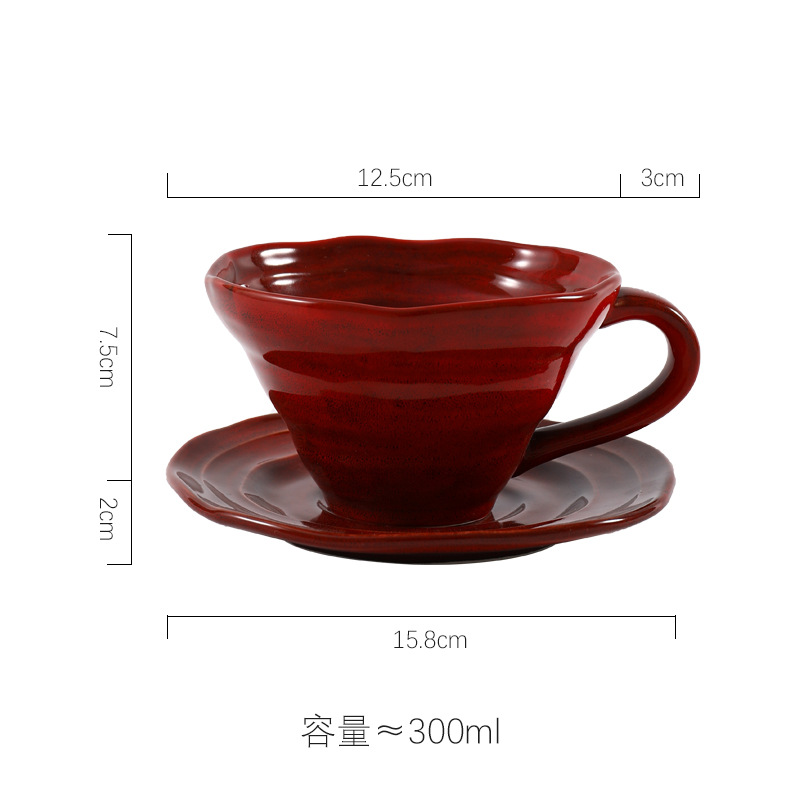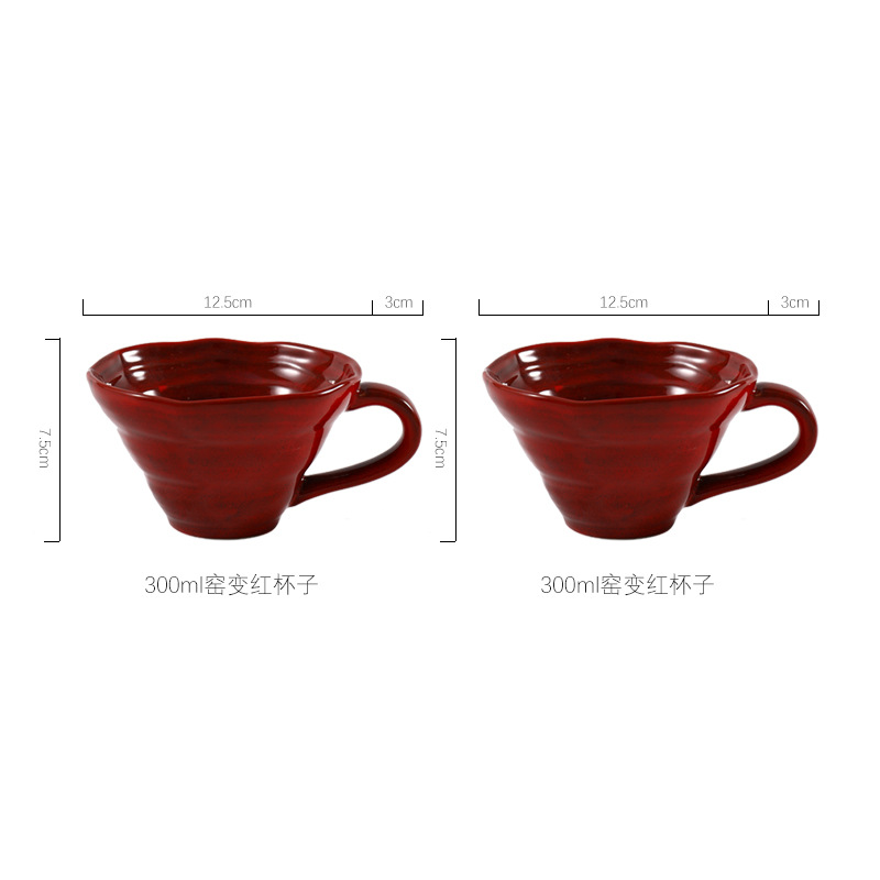 窑变红手冲咖啡杯碟早餐牛奶杯旋纹斗笠麦片杯碟家用餐厅手持杯碟