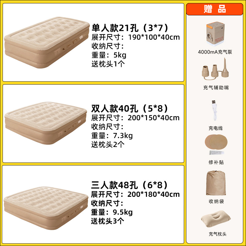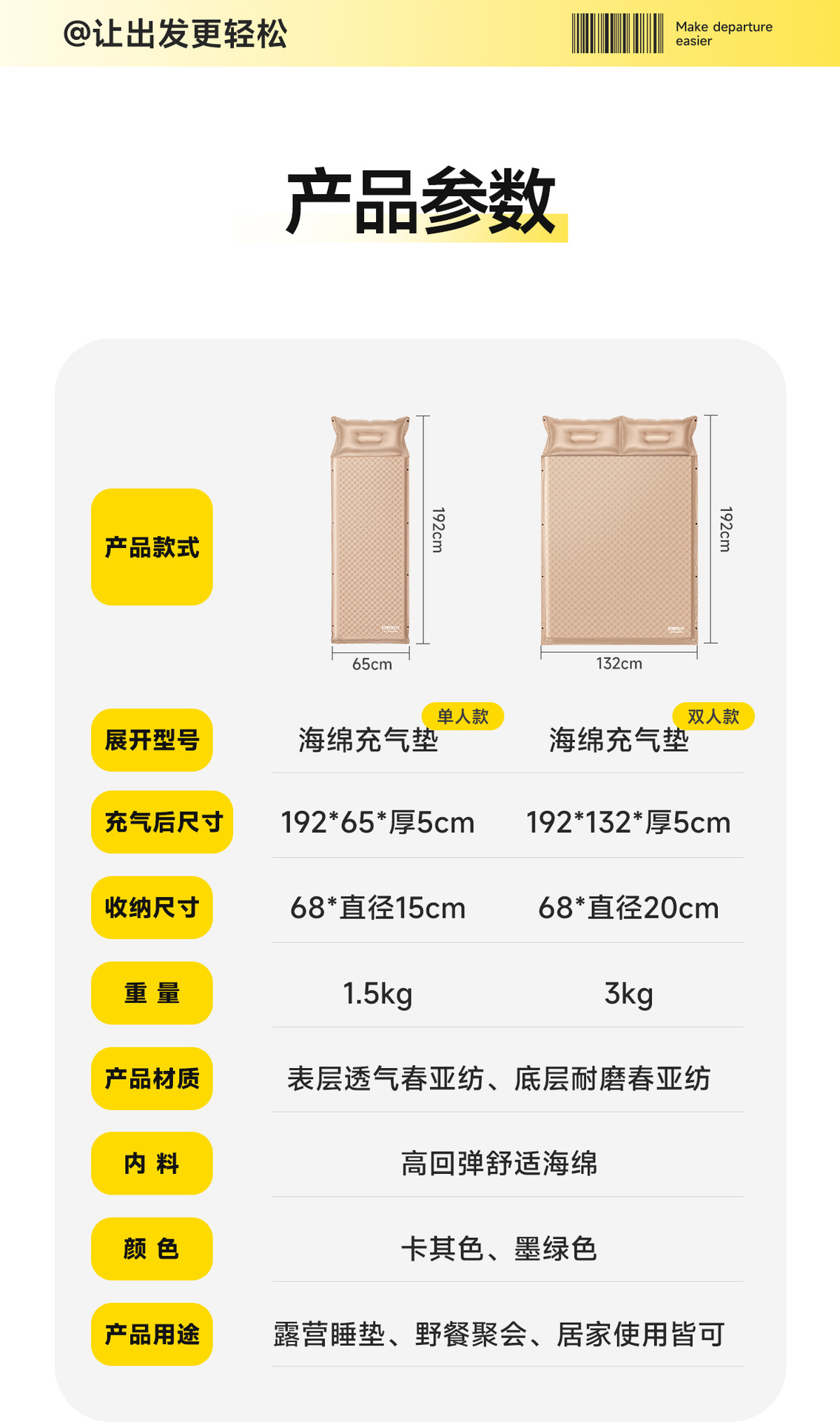 自动充气床垫户外露营防潮加厚地垫家用野营便携帐篷打地铺气垫床