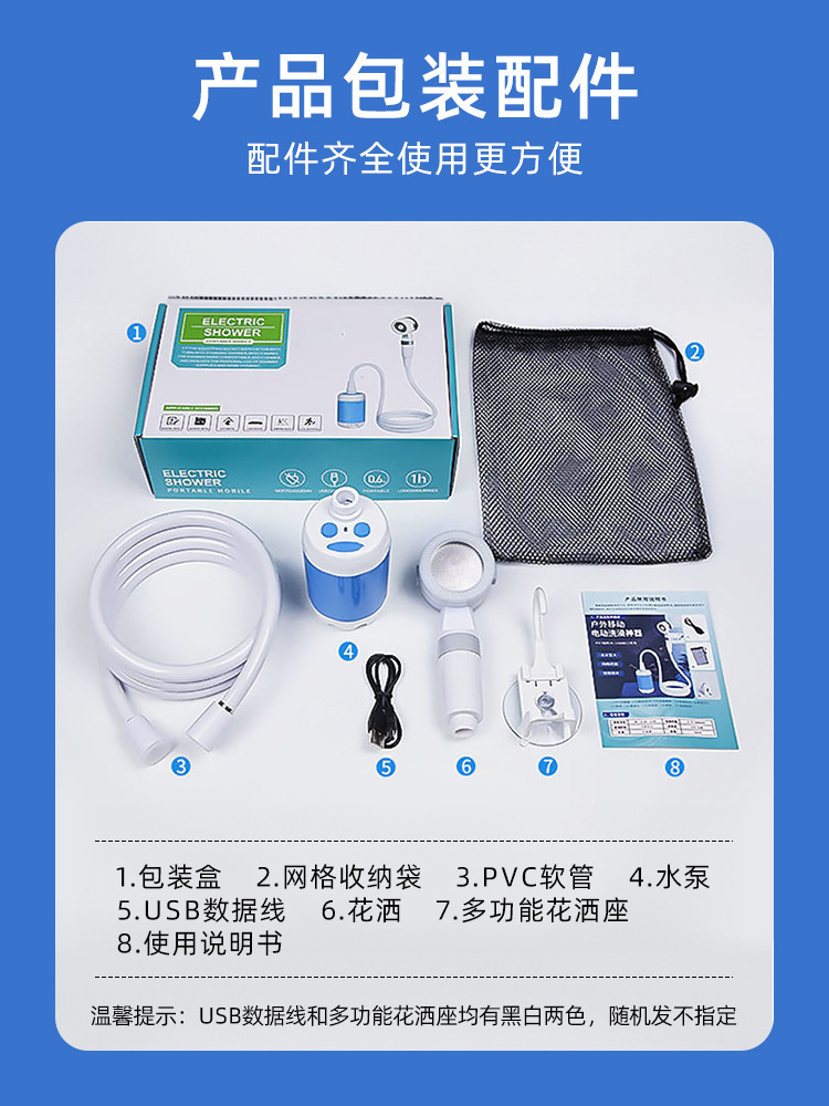 户外洗澡神器淋浴器自吸泵增压花洒套装户外露营简易便携淋浴神器