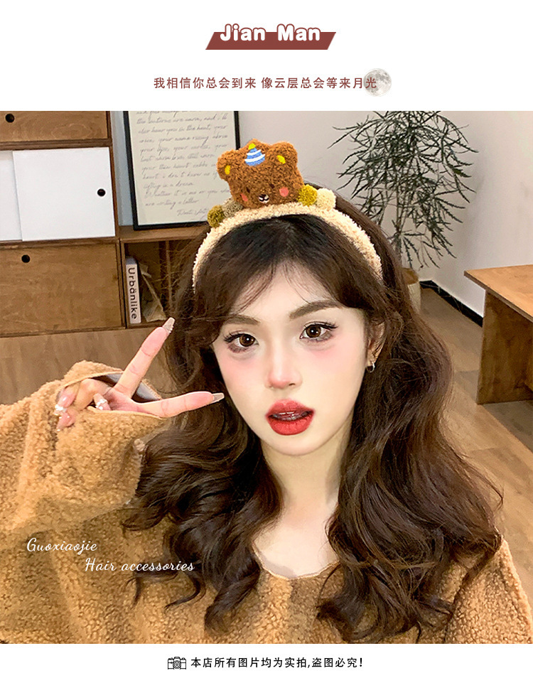 卡通超可爱毛绒小熊发箍化妆洗脸发捆头箍头饰秋冬新款熊熊发箍