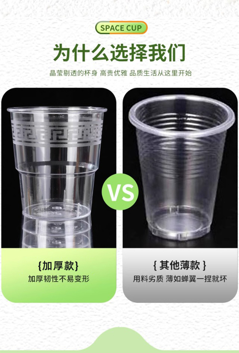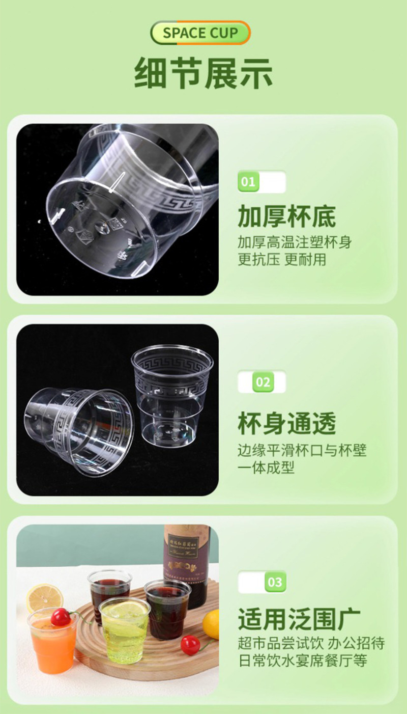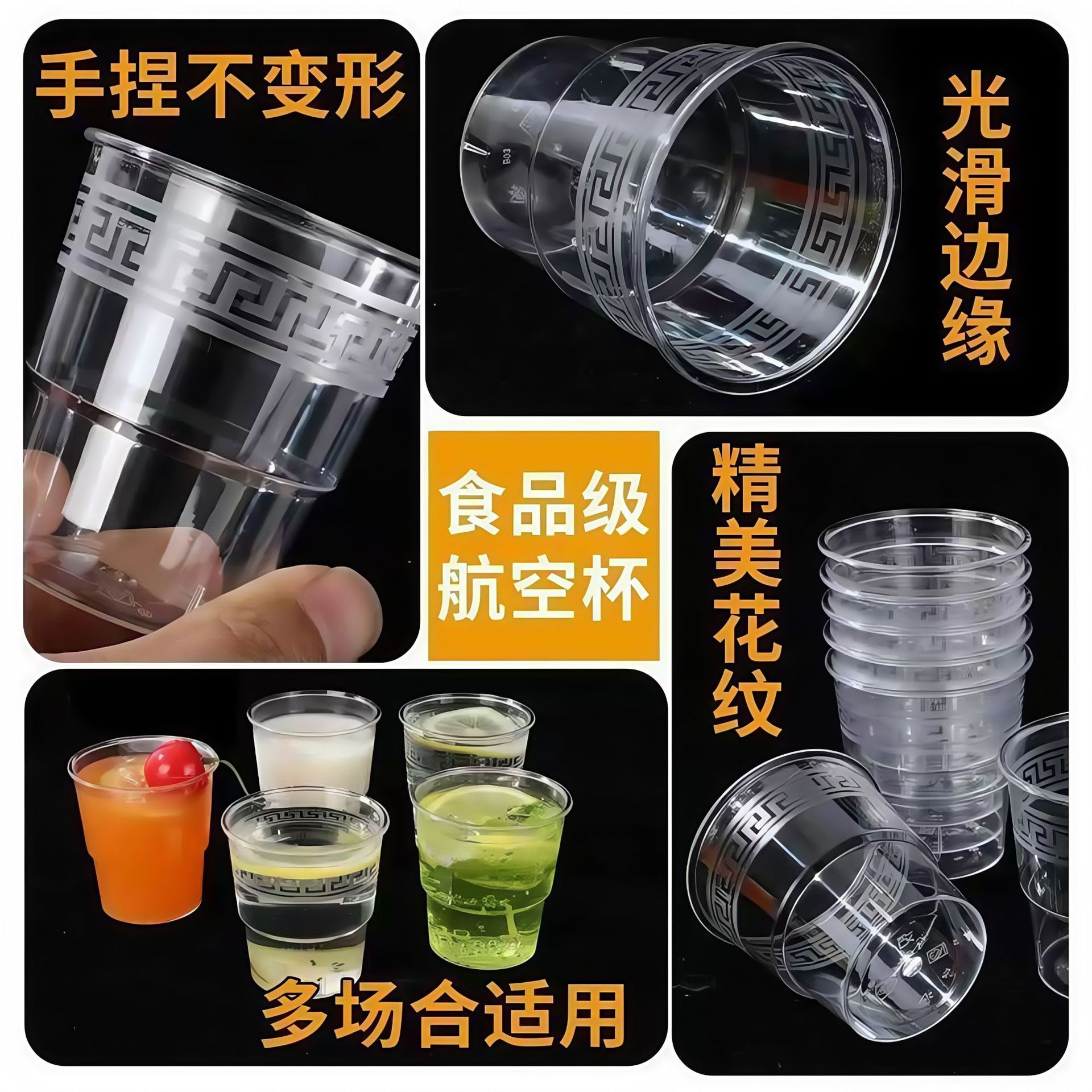 水晶杯加厚航空杯一次性商用硬塑水杯透明食品级酒水茶杯摆摊试饮
