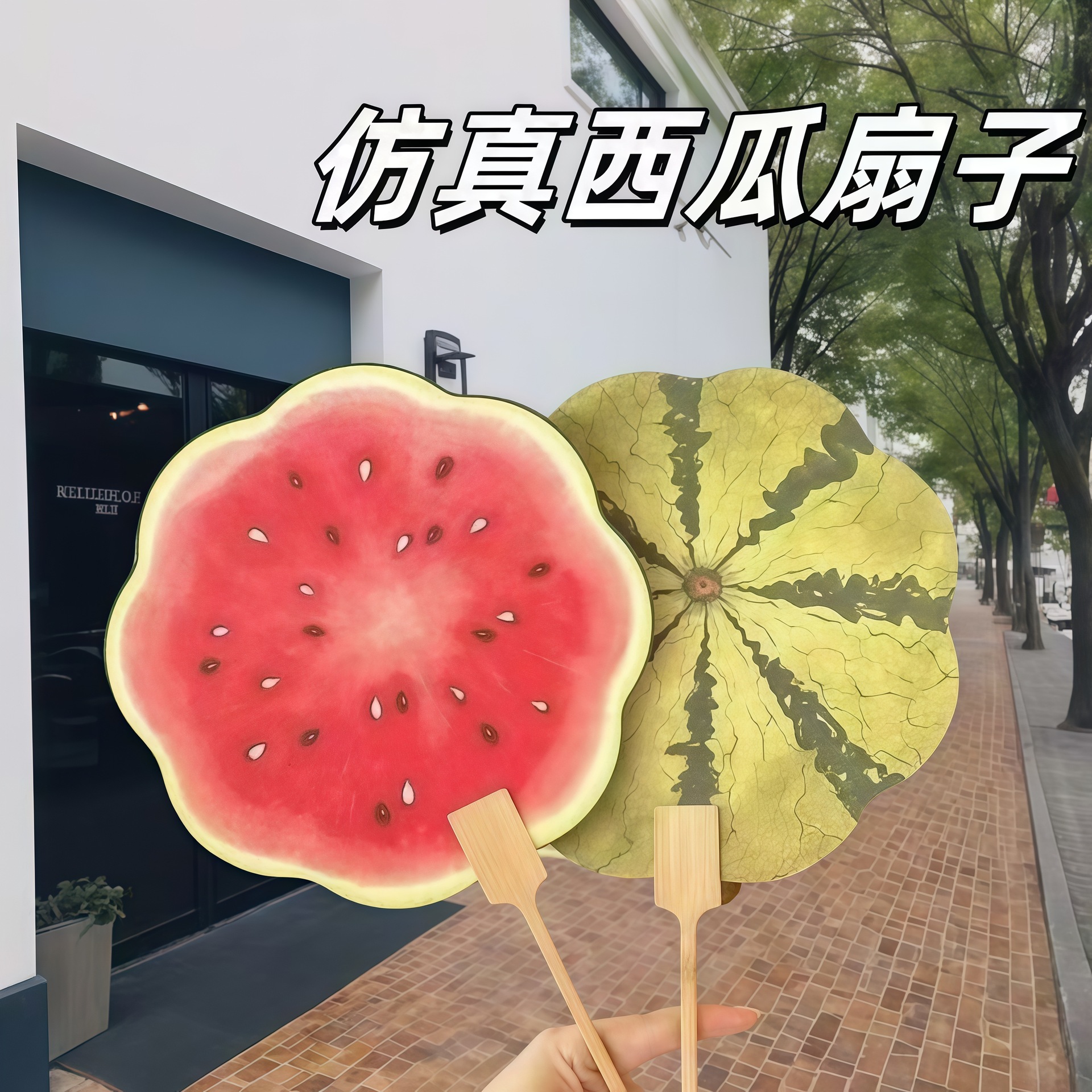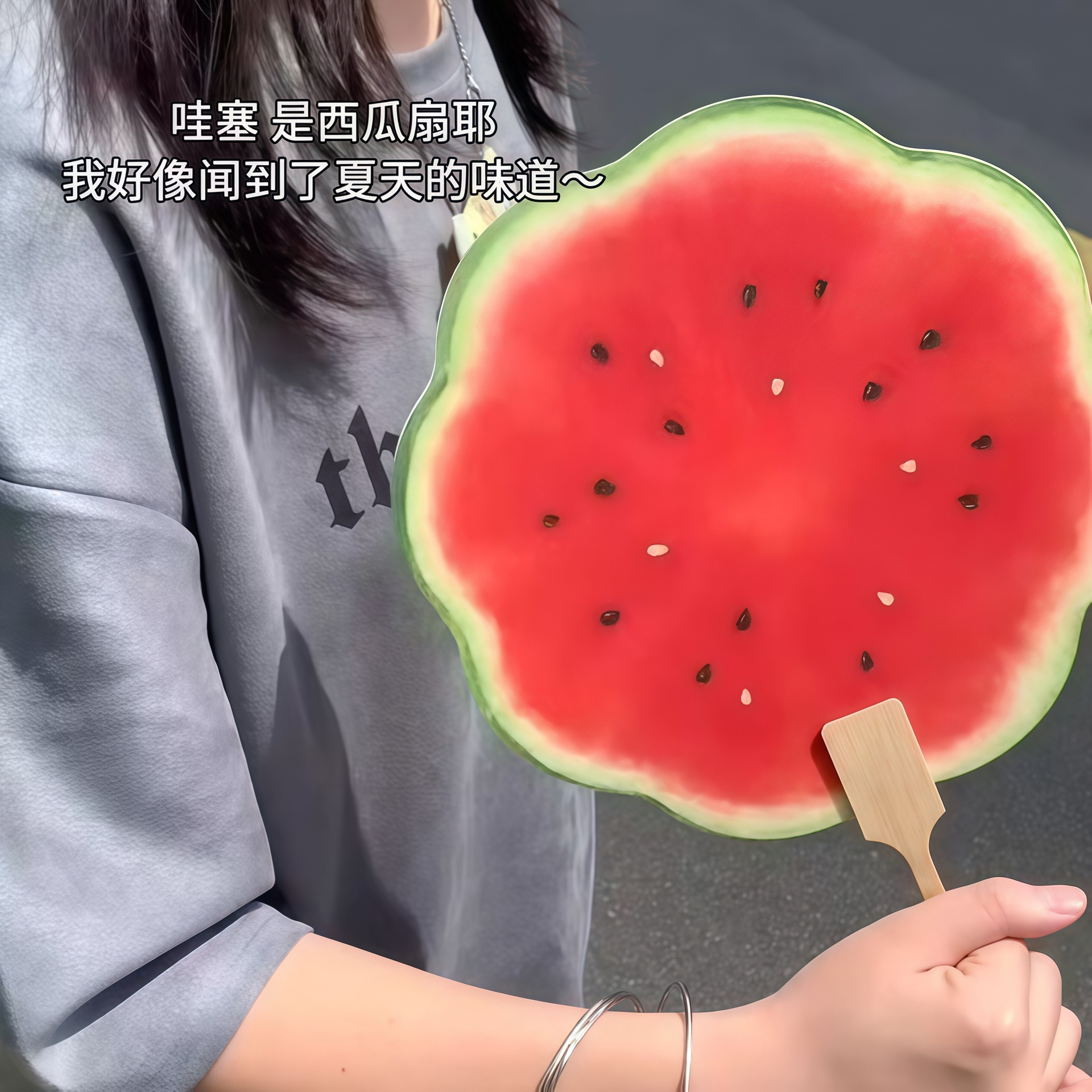 西瓜扇子手持团扇夏日清凉古风家用创意出片暖场道具扇送闺蜜礼物