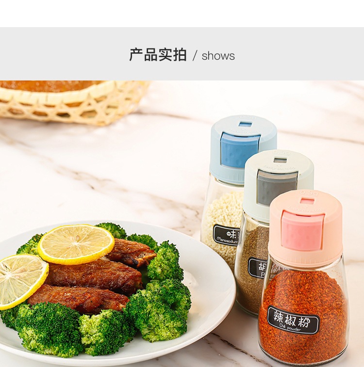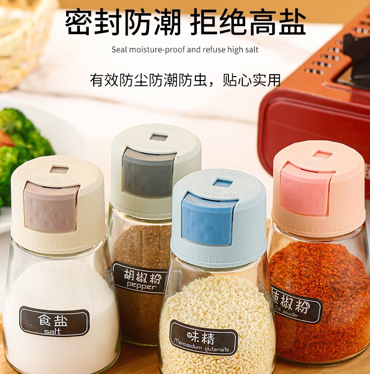 定量调料罐彩欧按压控盐瓶调料瓶味精盐罐家用厨房计量撒盐调味瓶