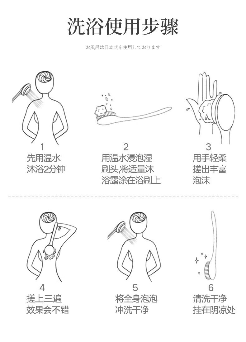 日式搓背刷洗澡刷长柄不求人擦背部搓澡沐浴刷超软毛搓澡神器身体