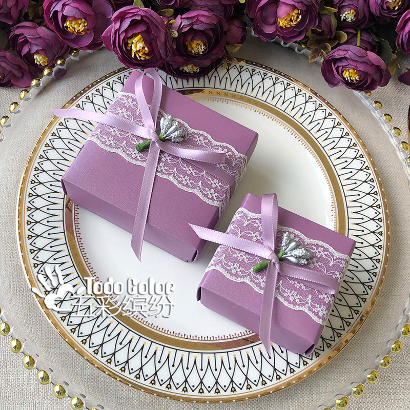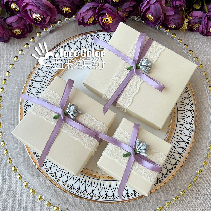 则礼 简约蝴蝶结喜糖盒 婚礼盒子韩式结婚礼盒免折叠礼品盒定作