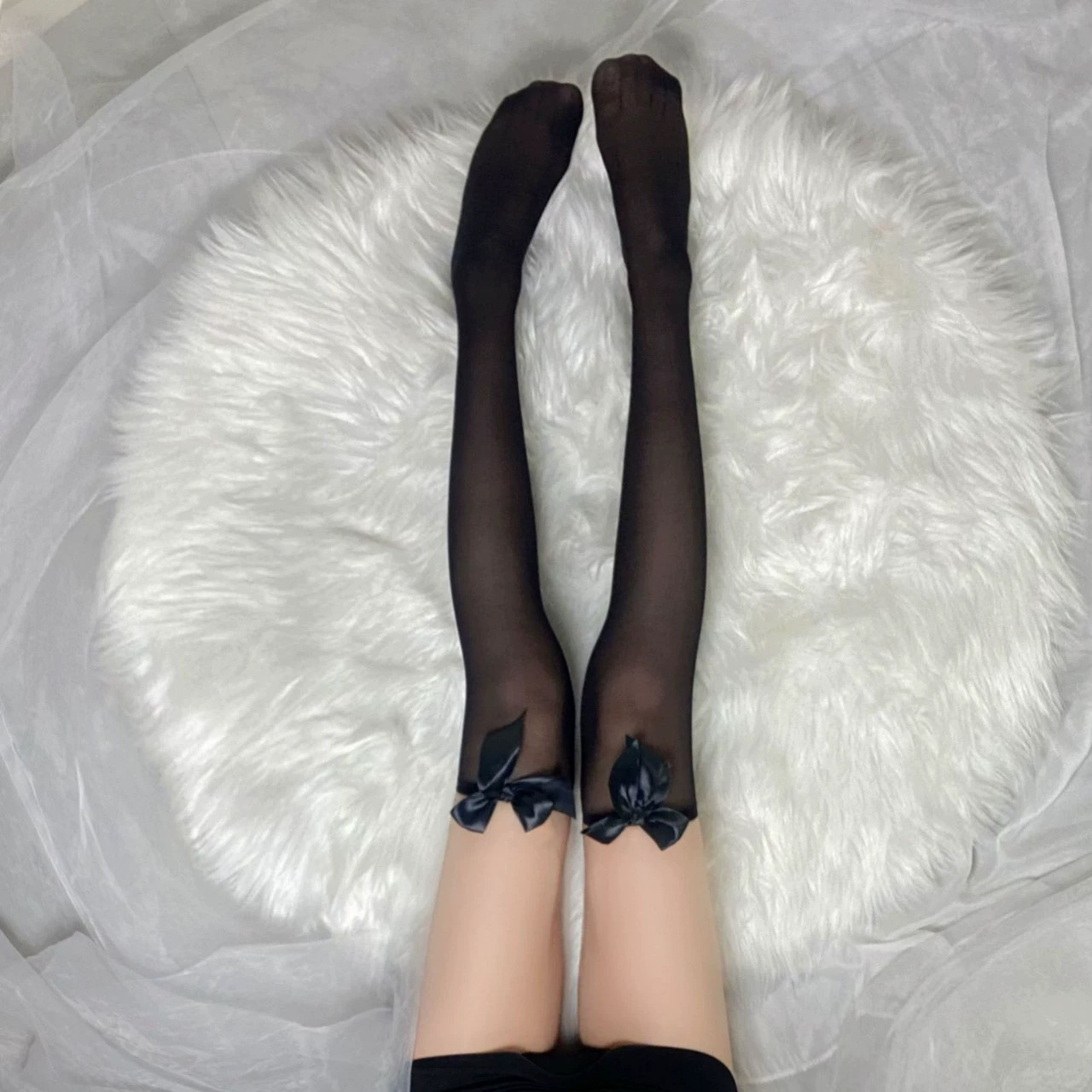 黑丝袜女jk渔网袜蝴蝶结蕾丝花边长筒袜超薄性感纯欲防滑外穿丝袜