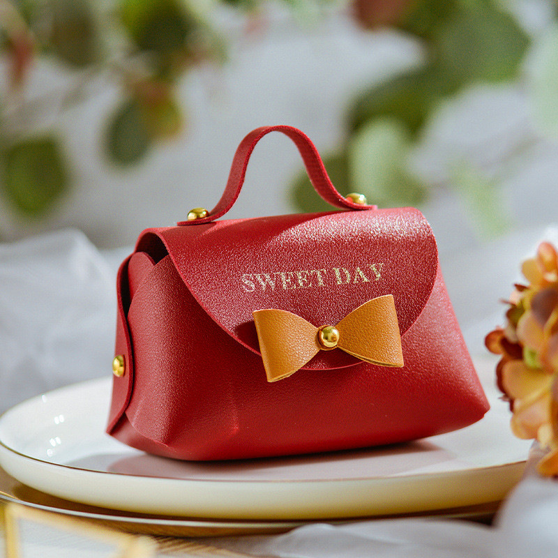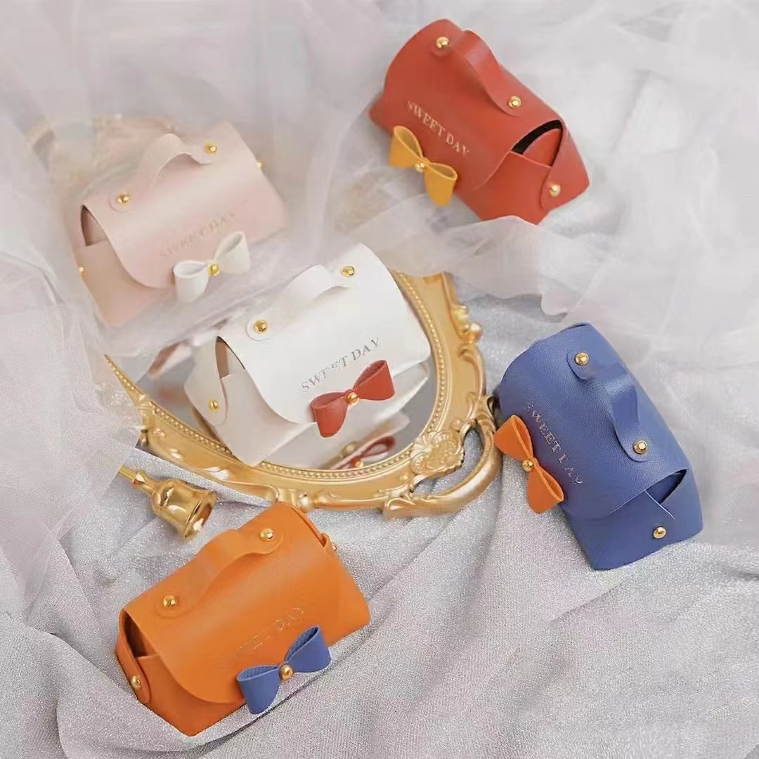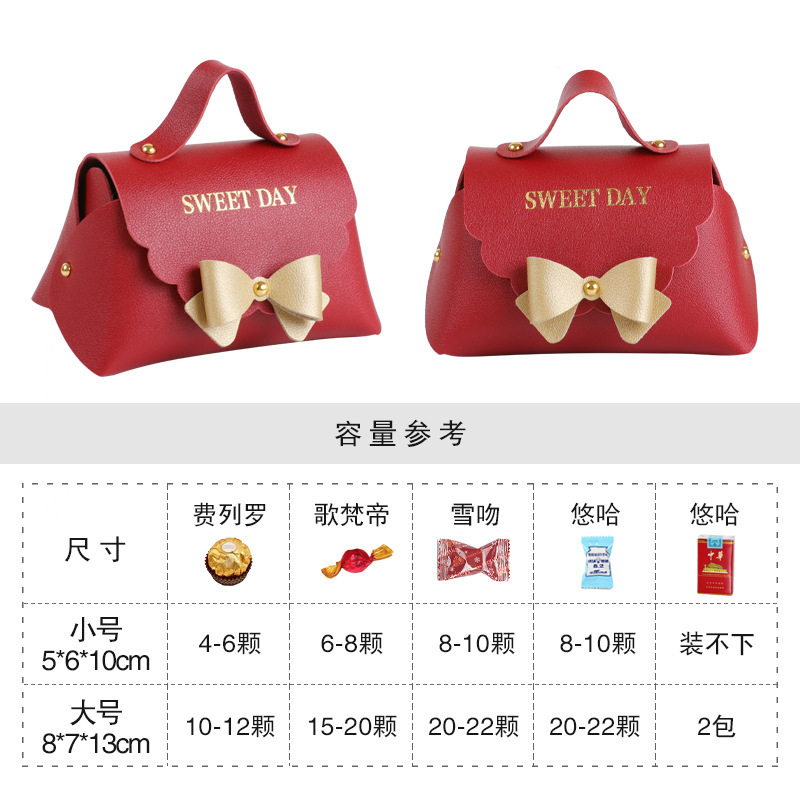 新款皮质手提袋礼品盒皮革喜糖盒回礼桌糖包糖果伴手礼盒现货