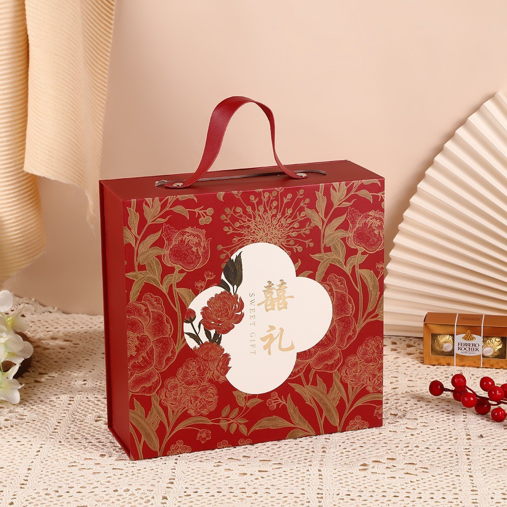 婚礼伴手礼盒手提喜糖盒中式喜礼翻盖空盒包装婚庆订婚结婚用品