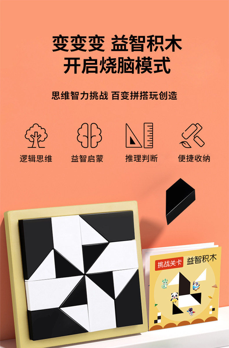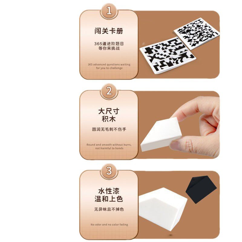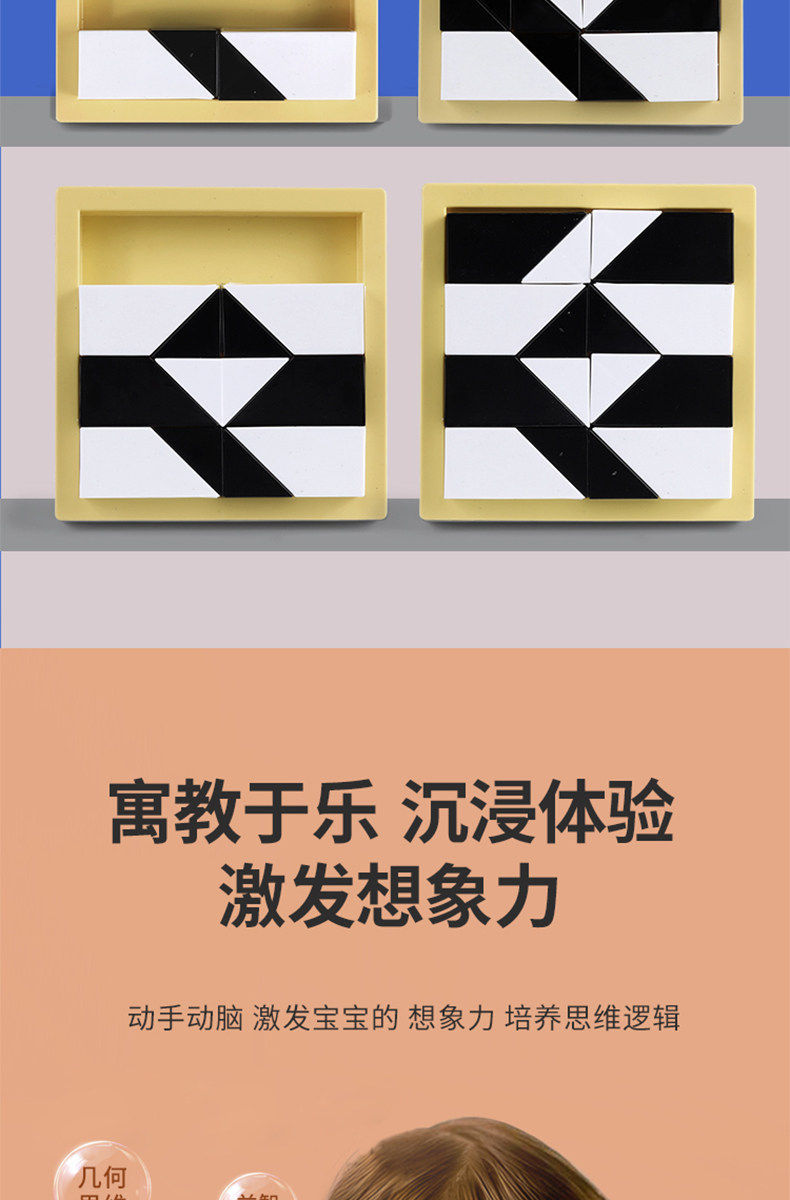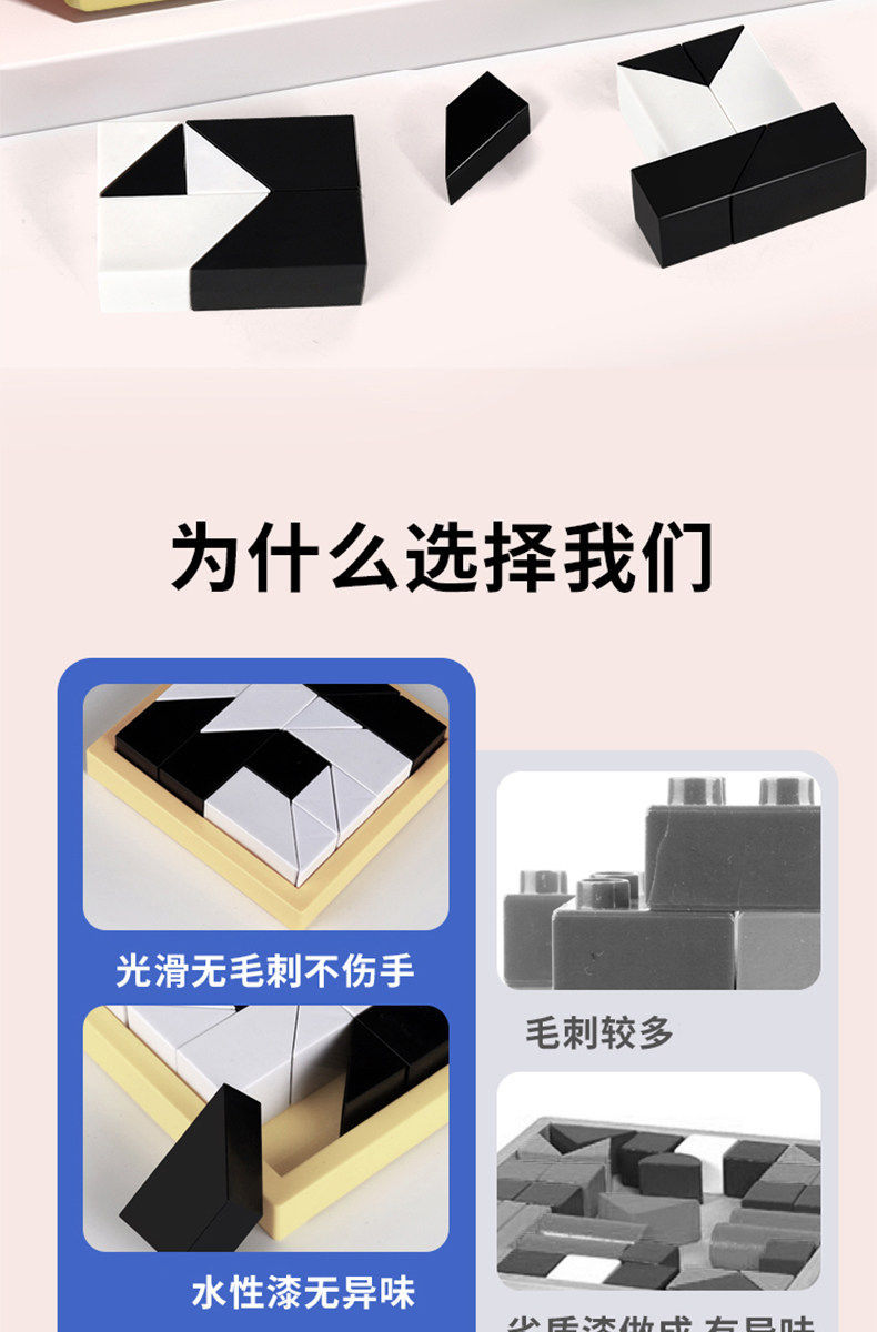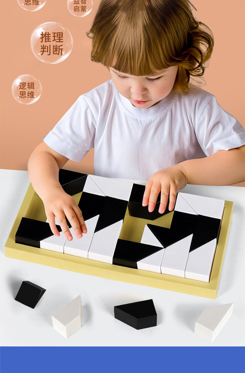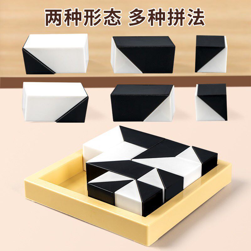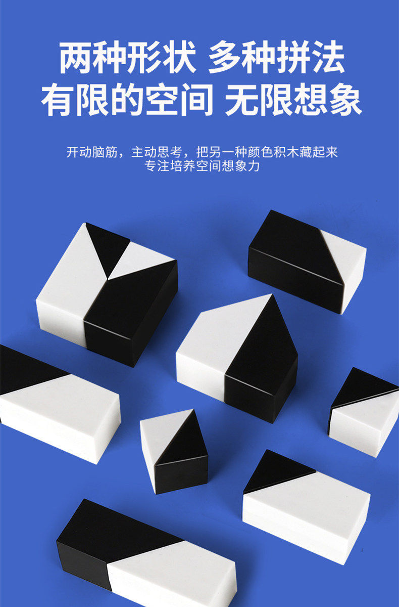 益智隐藏黑白积木拼图玩具锻炼儿童空间思维能力立体式益智七巧板