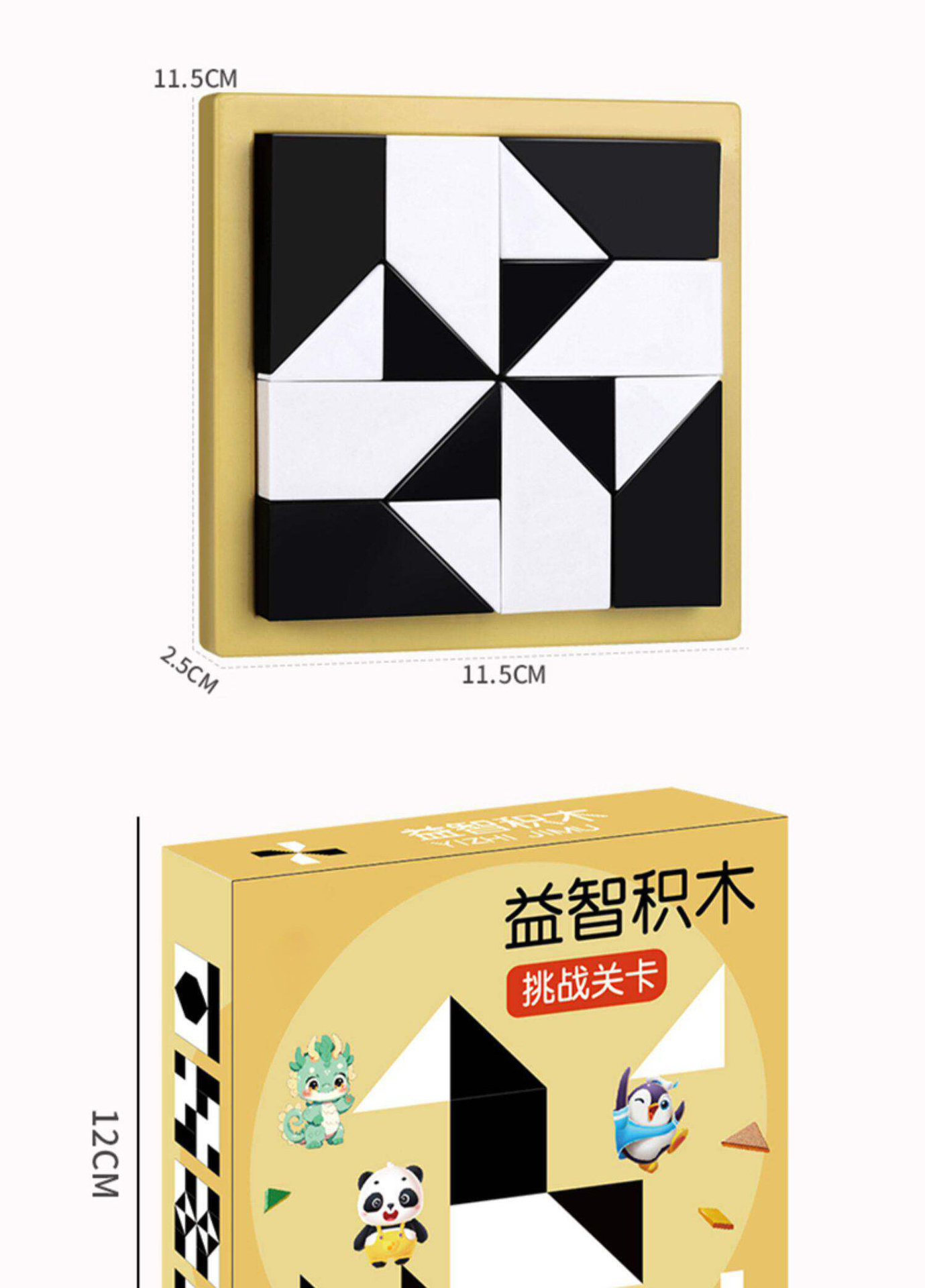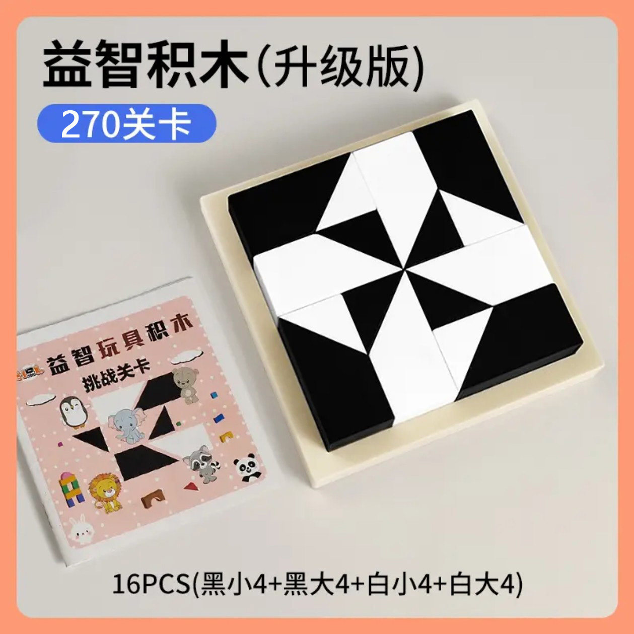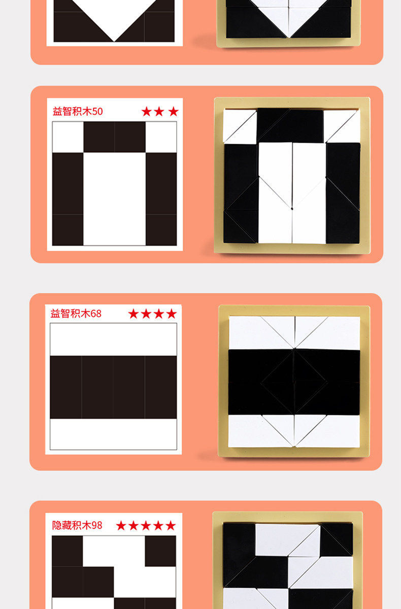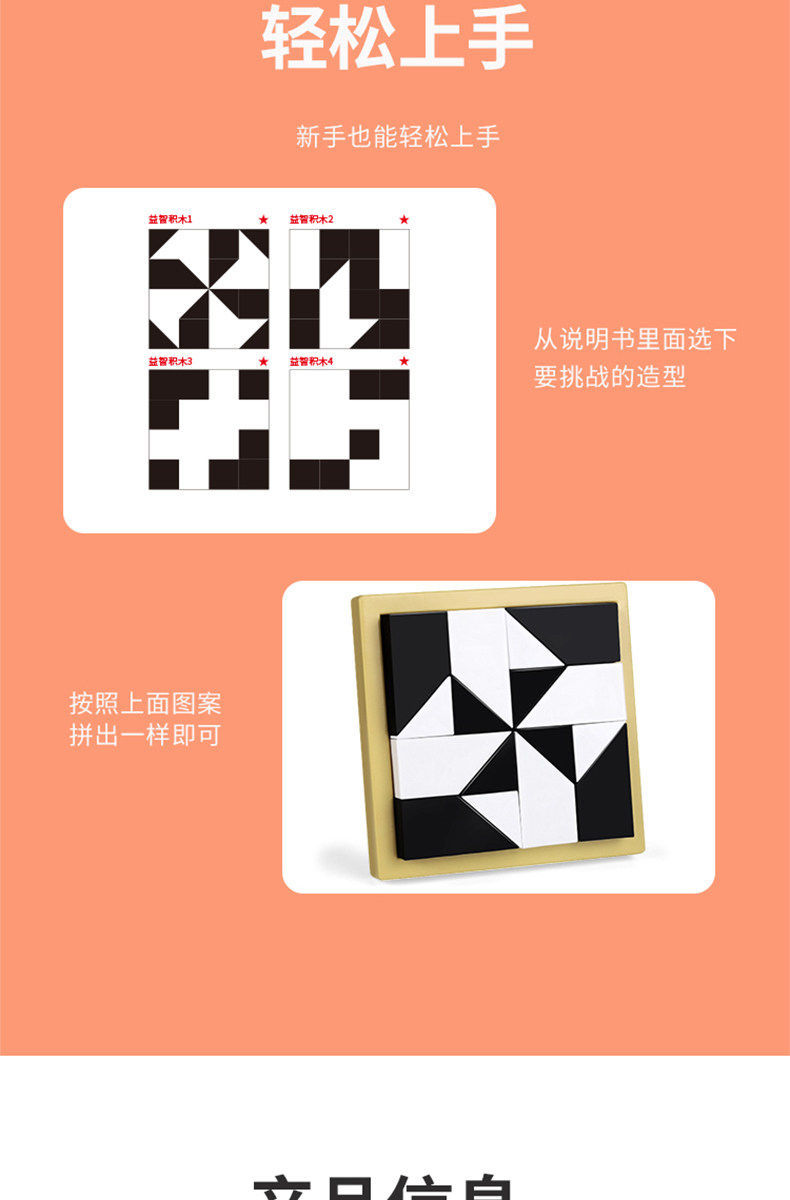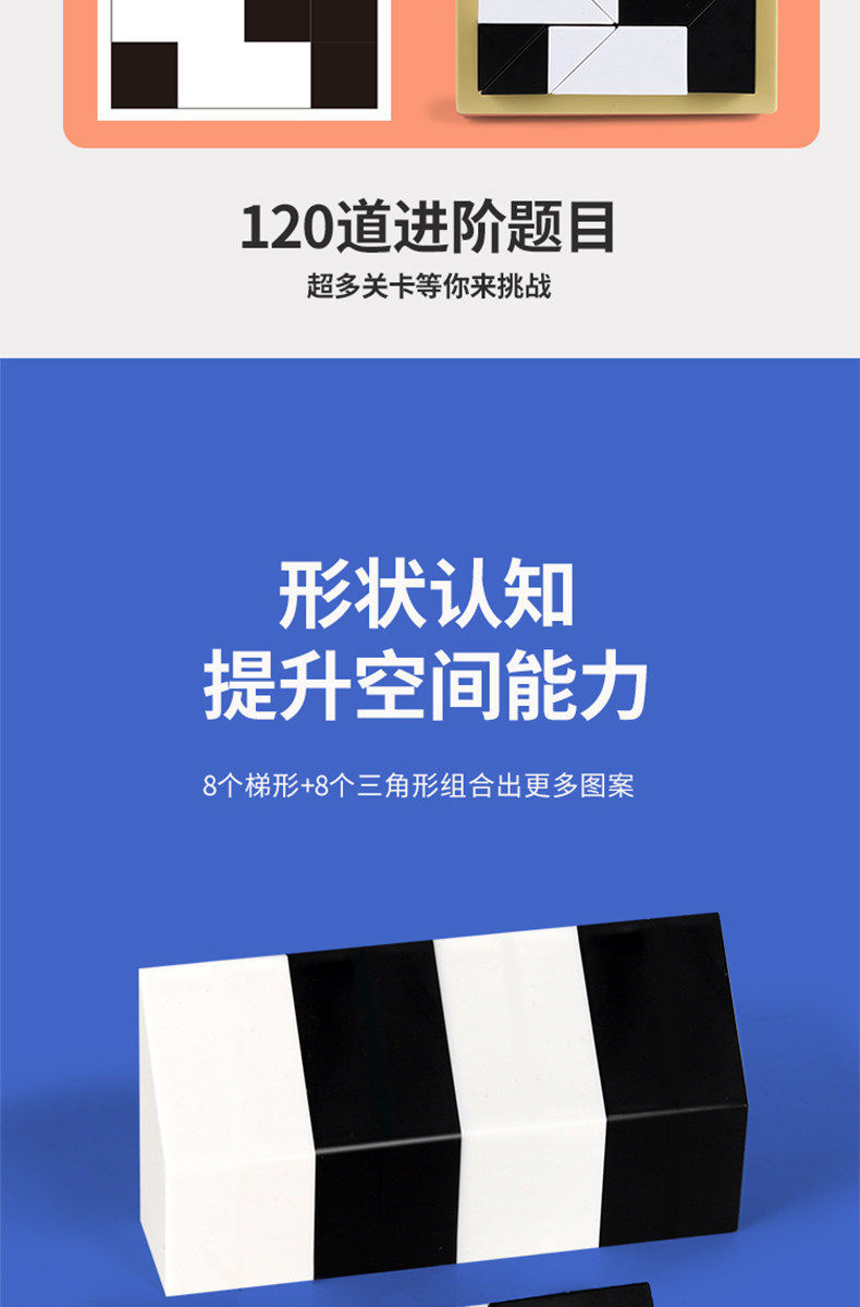 益智隐藏黑白积木拼图玩具锻炼儿童空间思维能力立体式益智七巧板