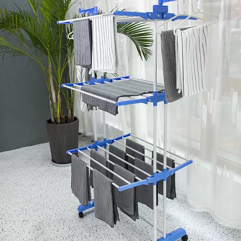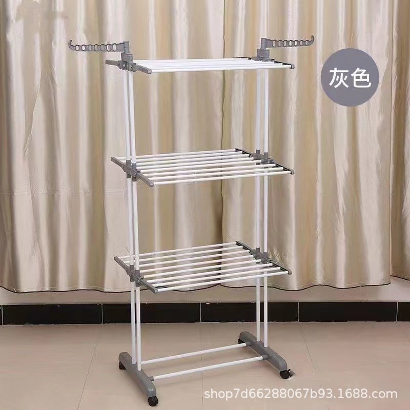落地三层毛巾架室内置物晾衣架翼型可伸移动晾衣架毛巾架批发