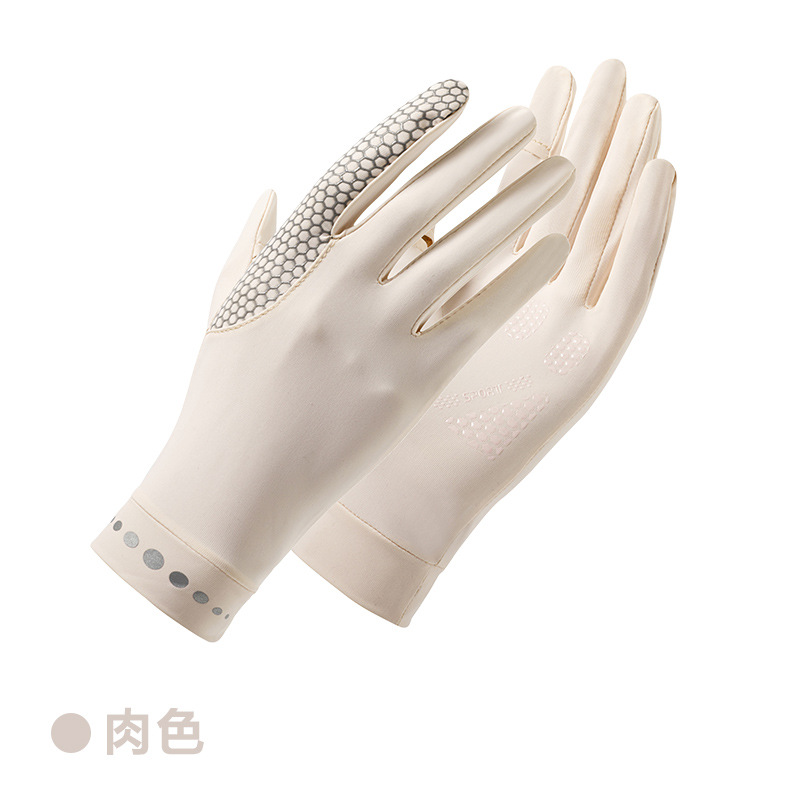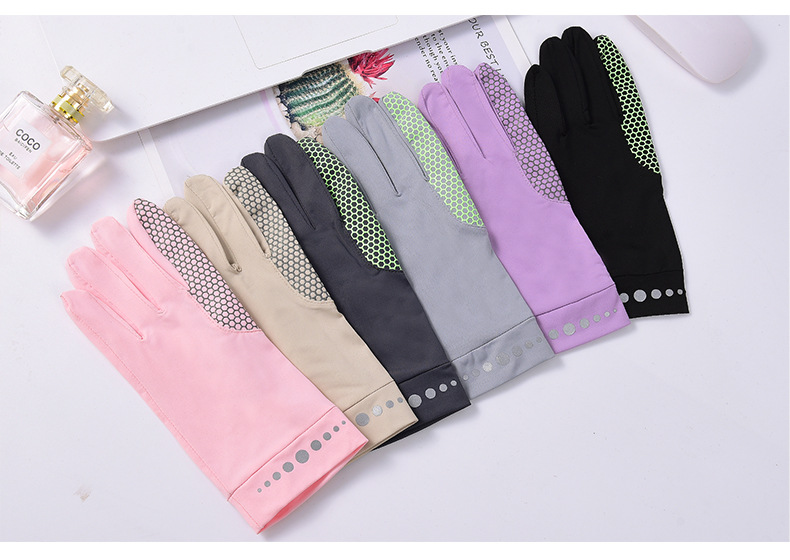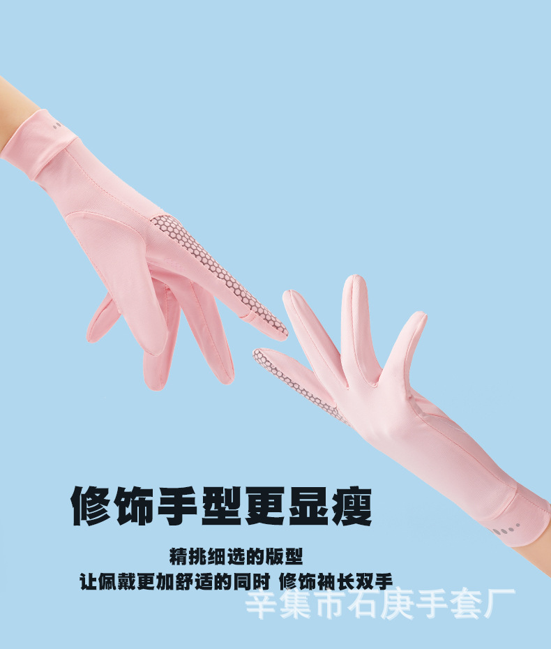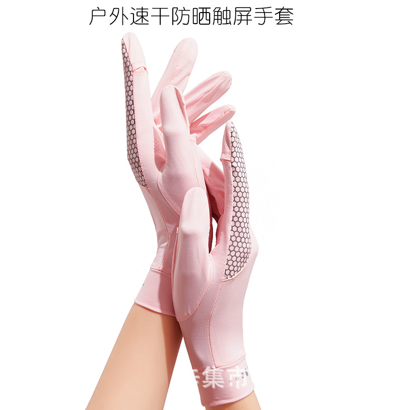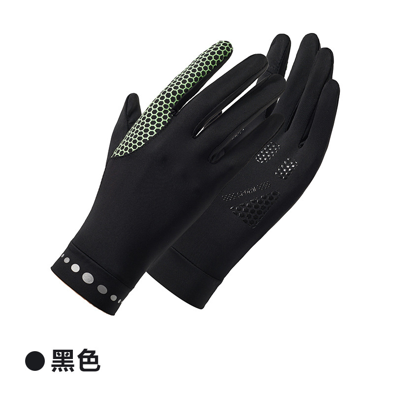 男女弹力冰丝纯色触屏防晒防紫外线轻薄透气露指防滑开车骑行手套