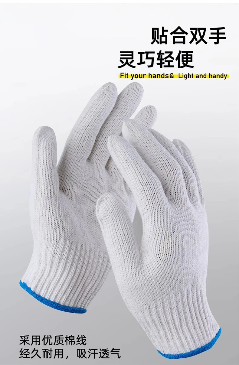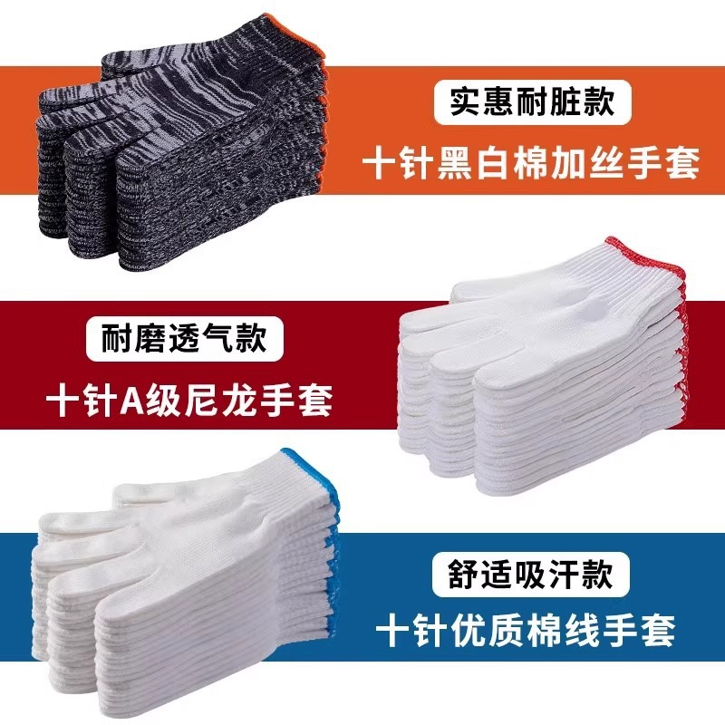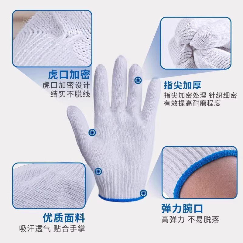 手套劳保耐磨工作棉线白棉纱加厚耐磨防滑纯棉汽修劳工男工地干活