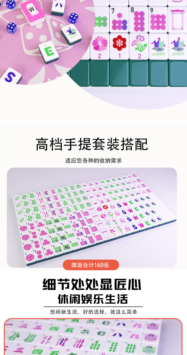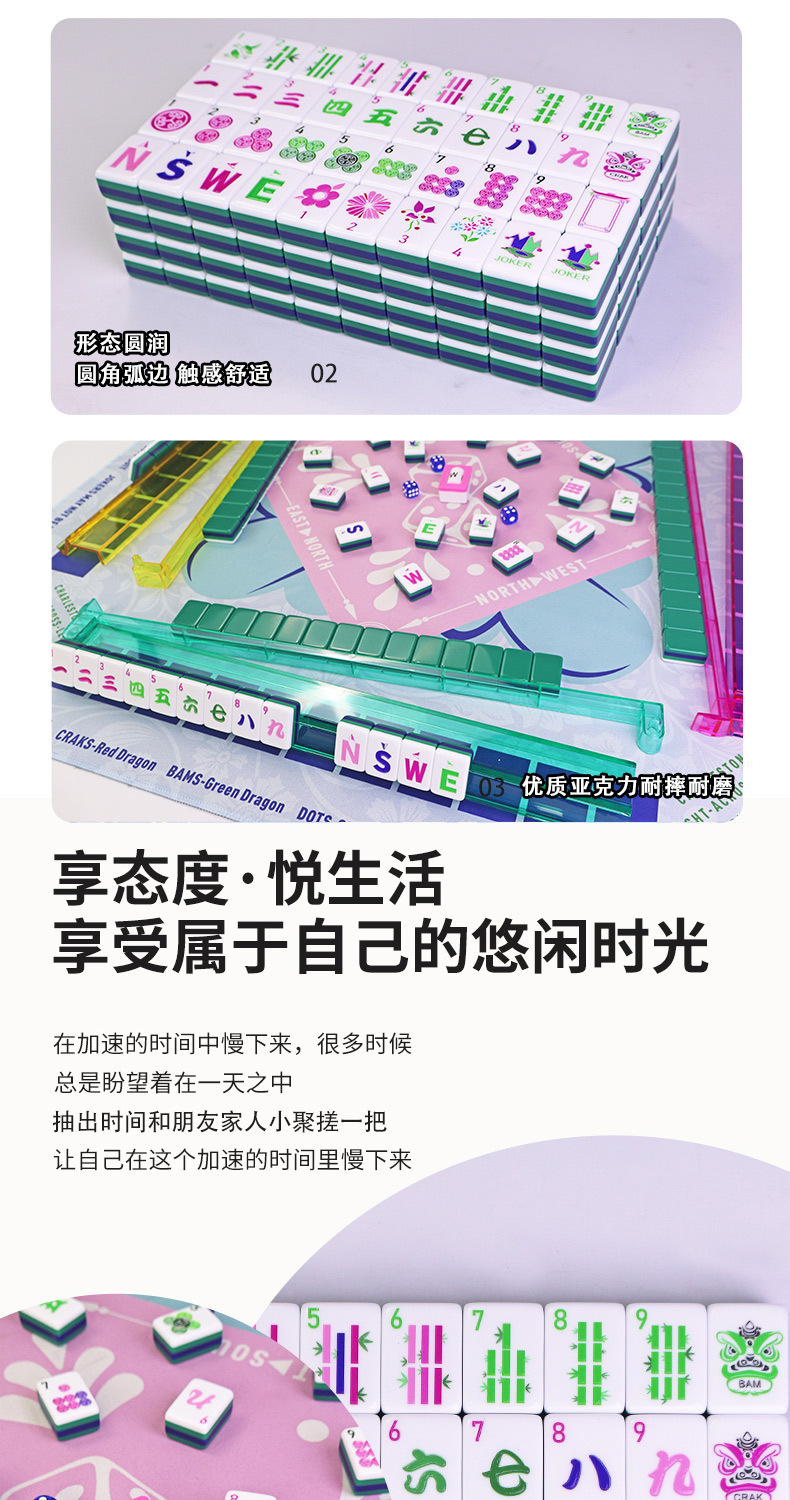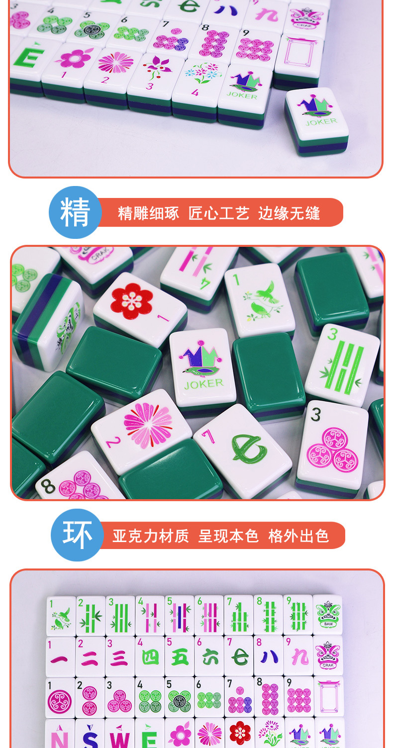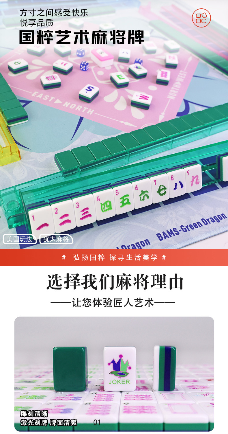 绿色亚克力美国麻将牌 家用送礼收纳袋套装手搓牌高档水晶麻将