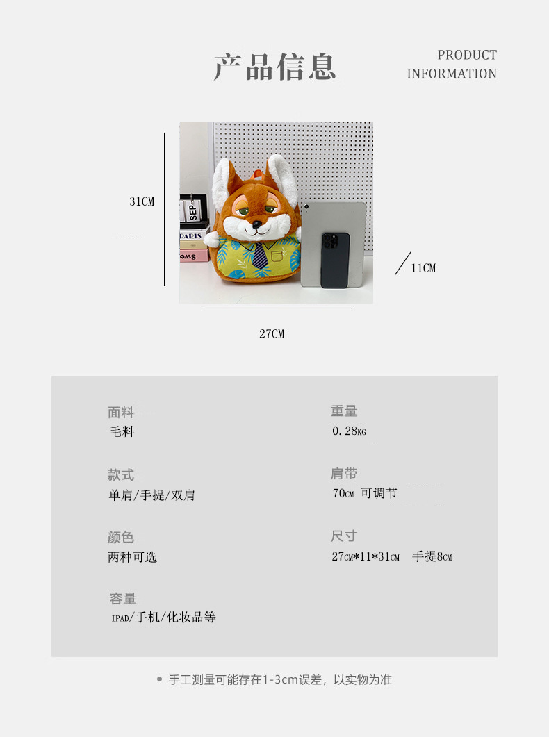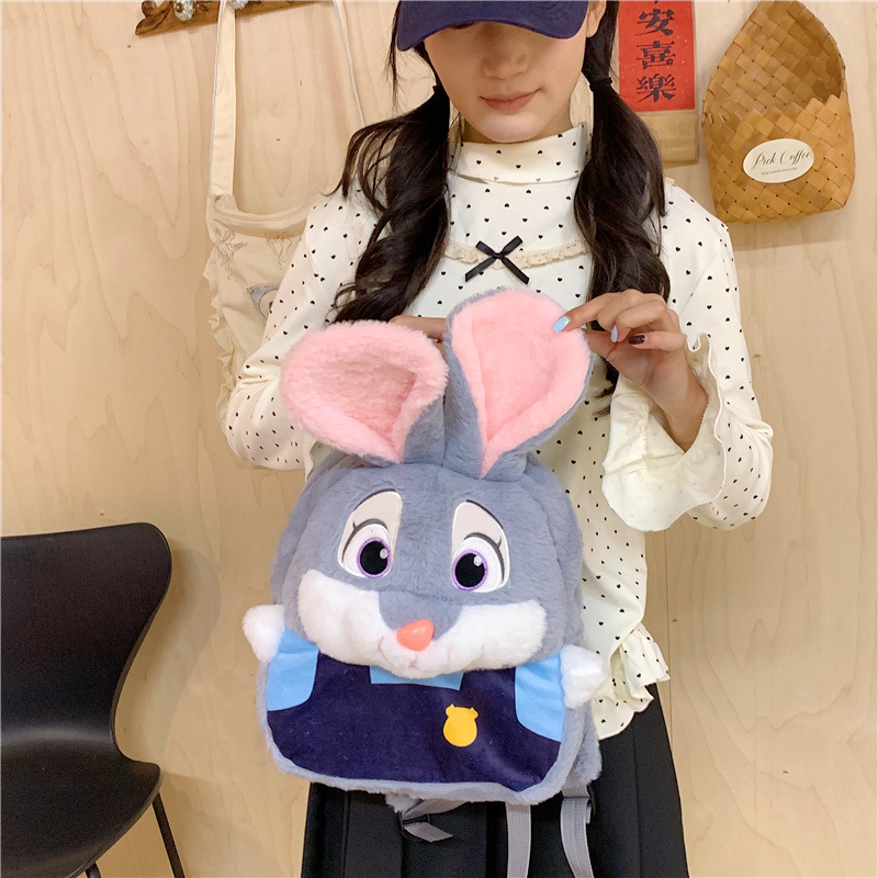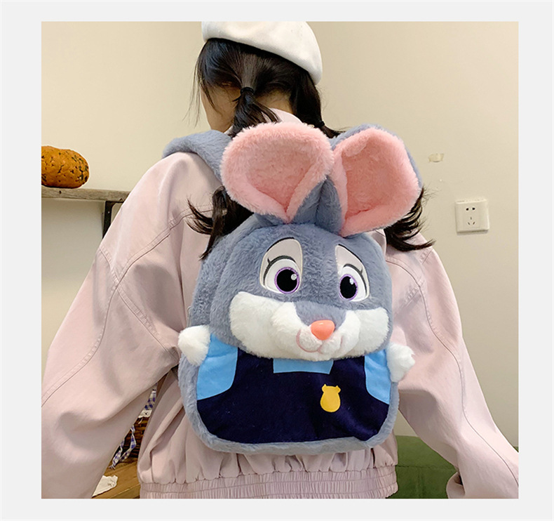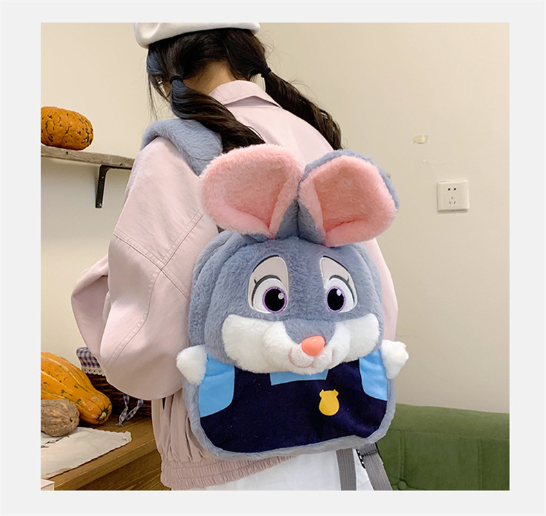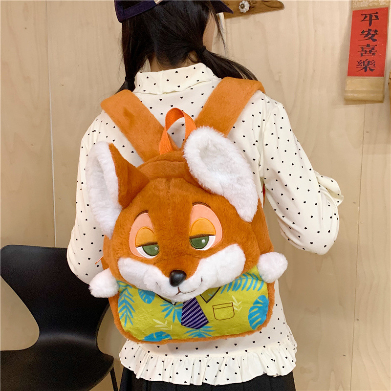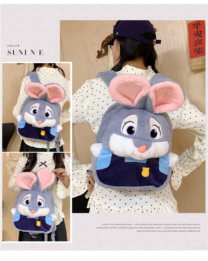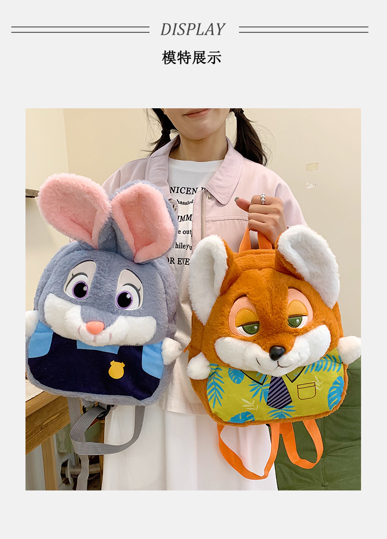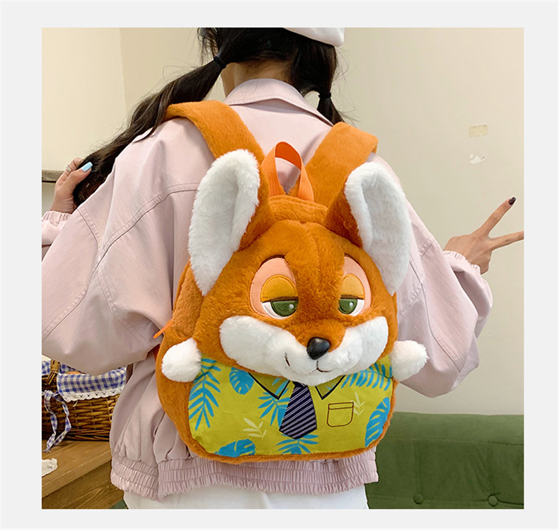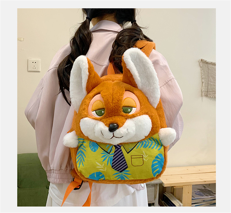 新款卡通儿童背包大容量狐狸兔子玩偶双肩包儿童包书包可爱毛绒包