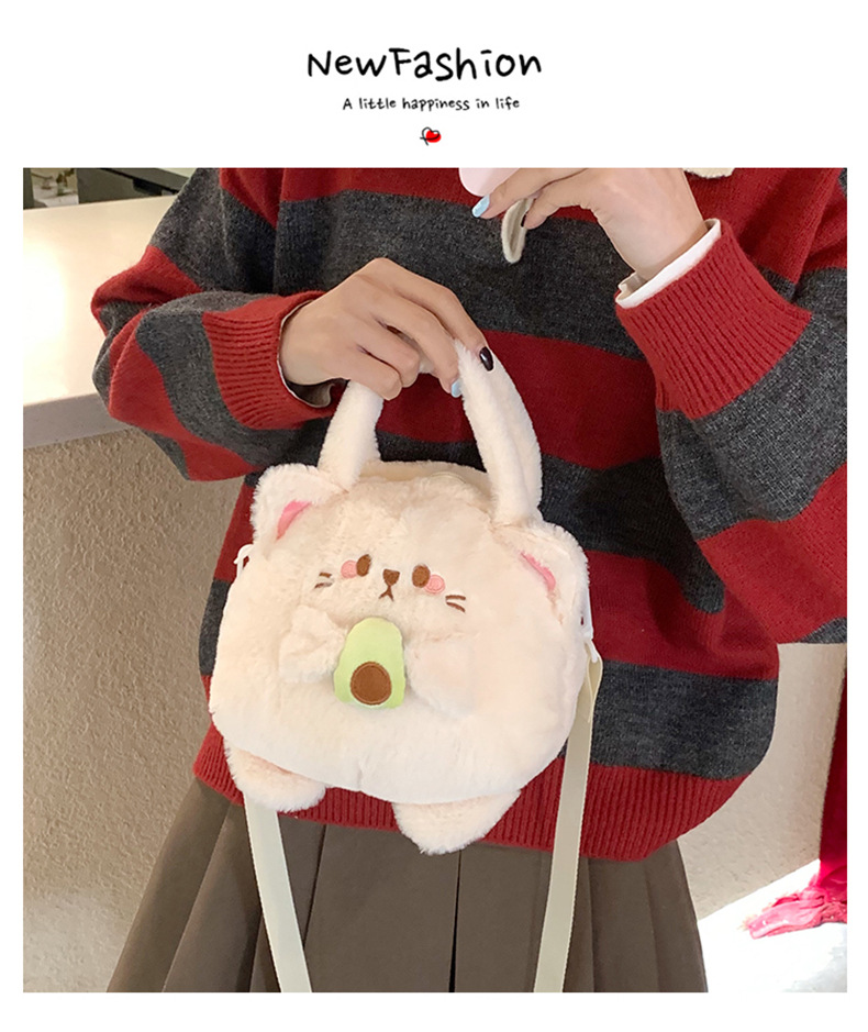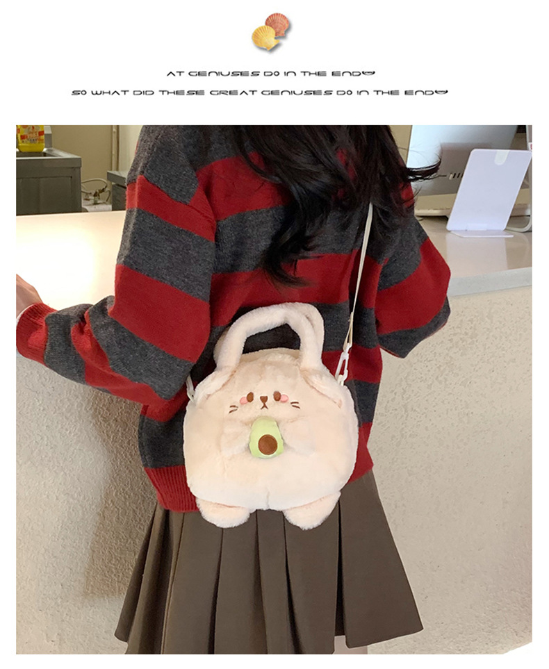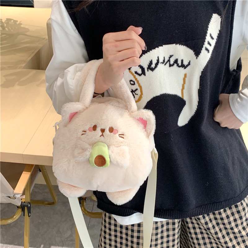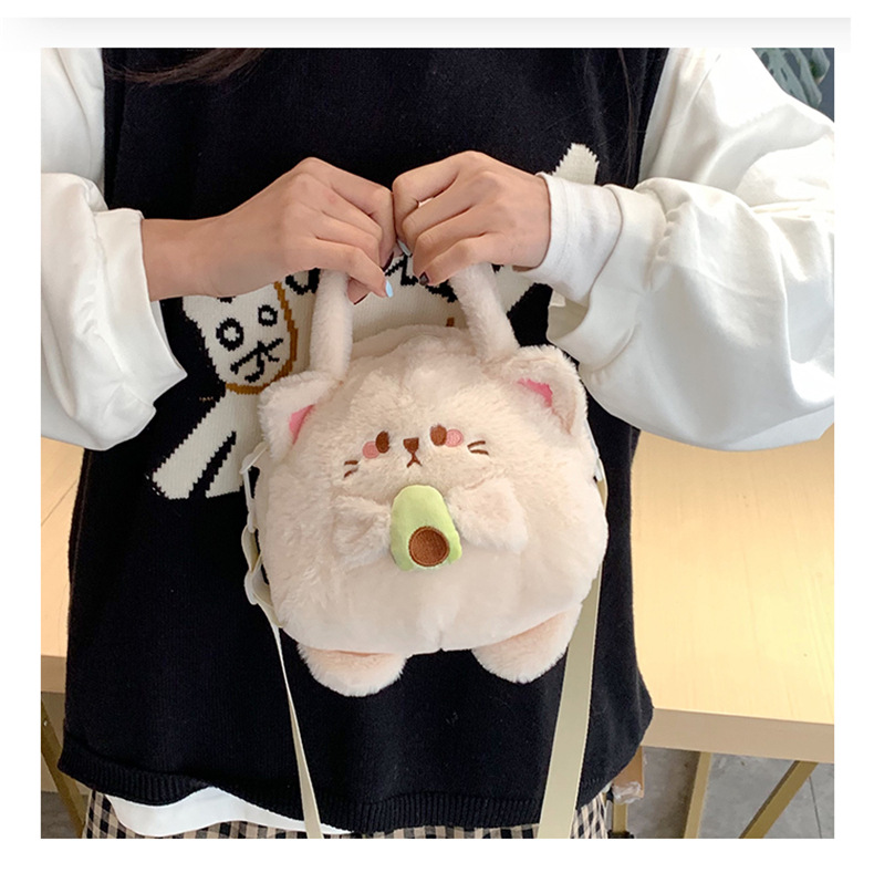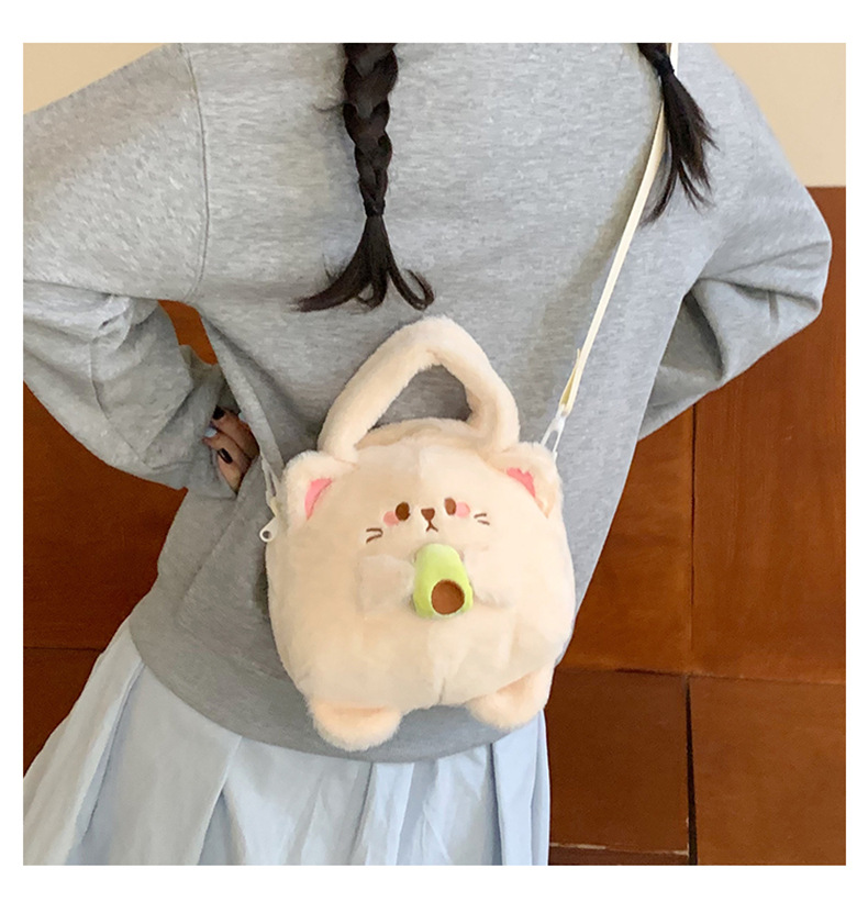 卡通猫咪玩偶动少女心布娃娃斜挎包可爱牛油果兔子公仔毛绒包包