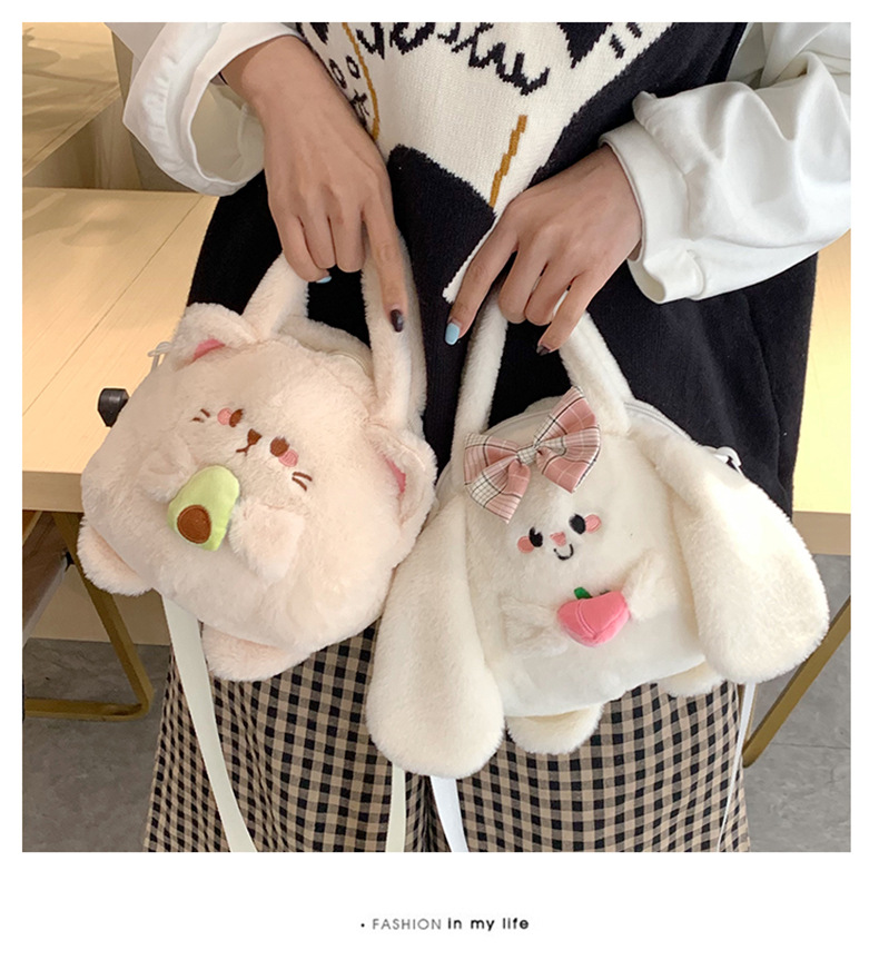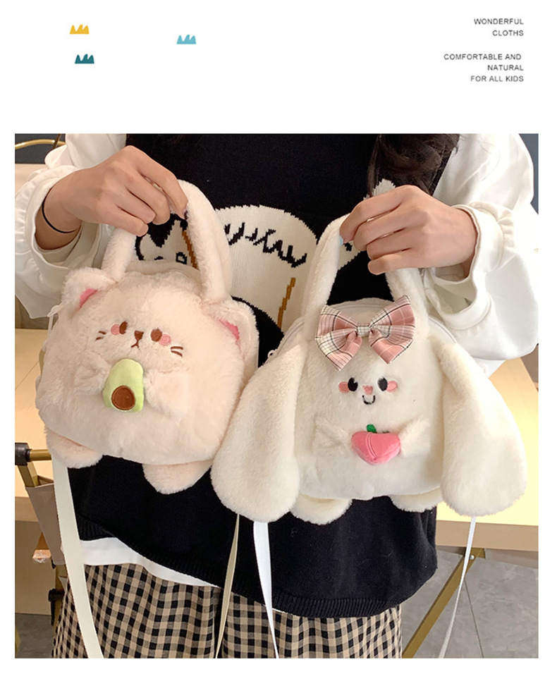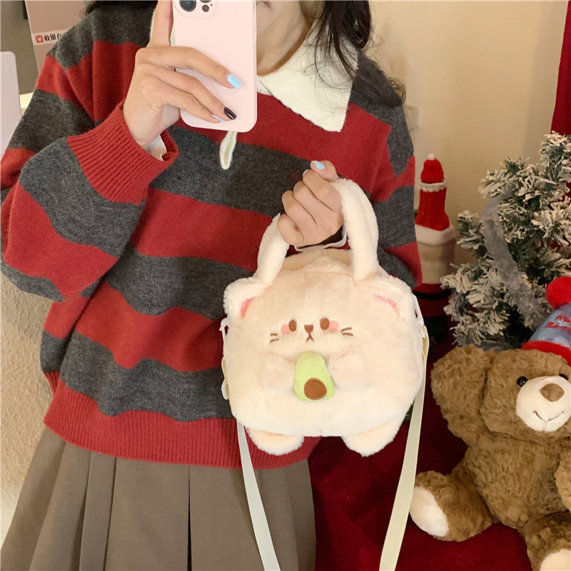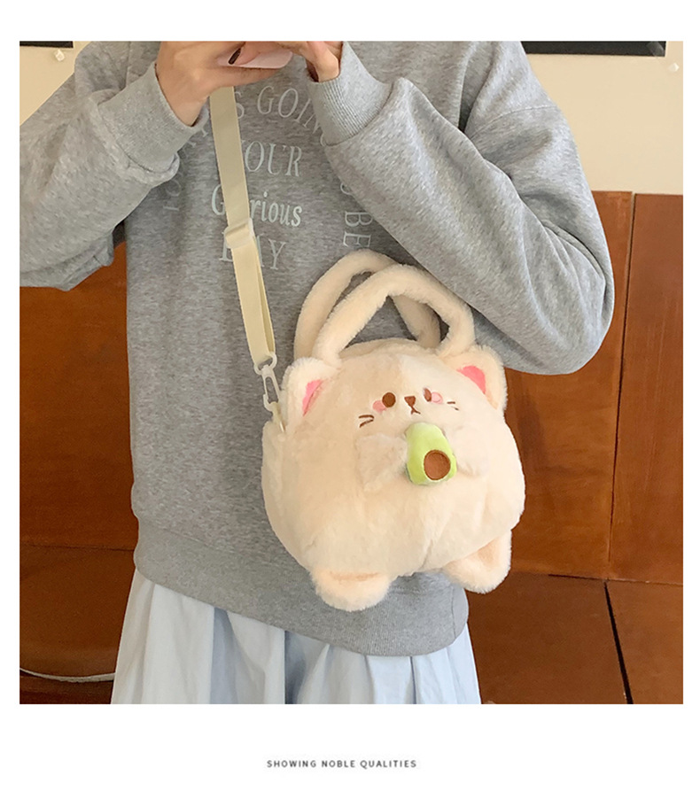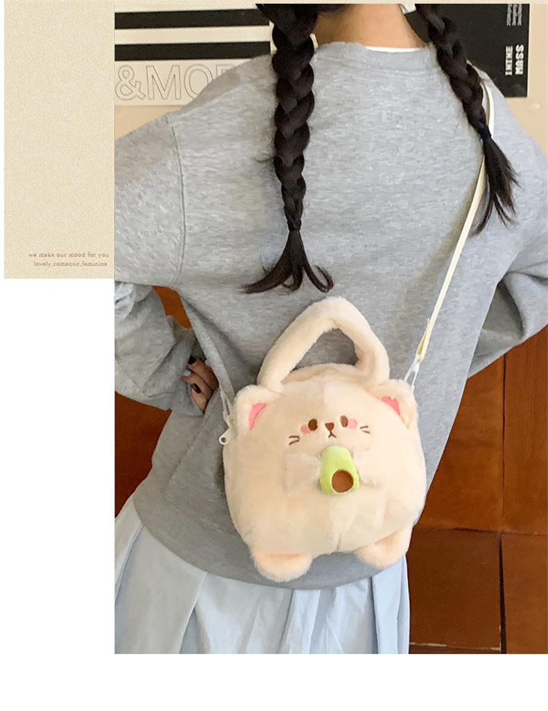 卡通猫咪玩偶动少女心布娃娃斜挎包可爱牛油果兔子公仔毛绒包包