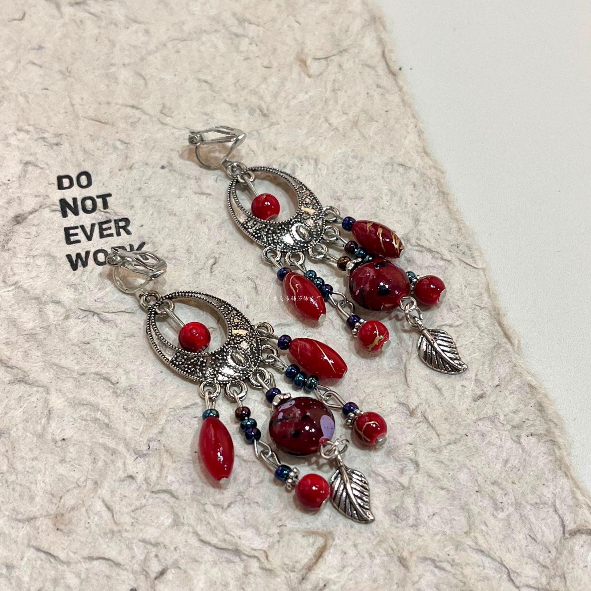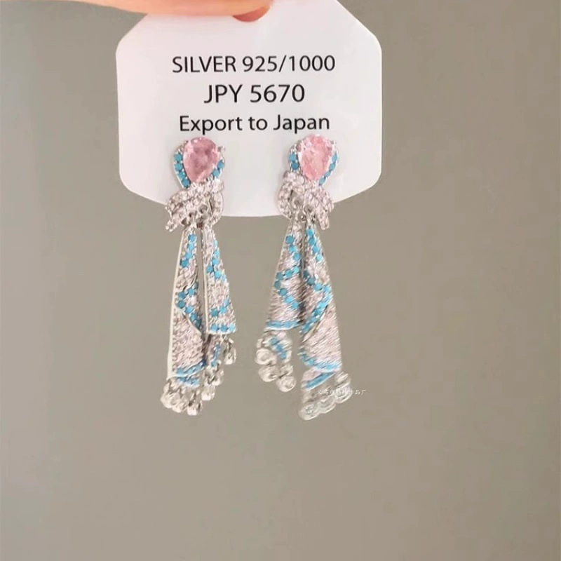 异域风情高级感小众民族风粉钻裙摆耳环度假风耳饰女耳钉2025新款