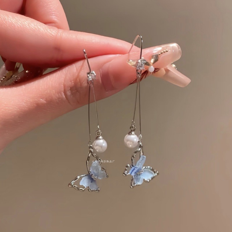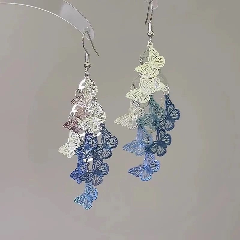 春日之约新中式国风蝴蝶流苏耳环爆款高级感长款耳坠耳钉耳饰品女