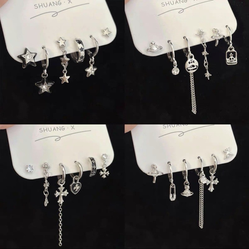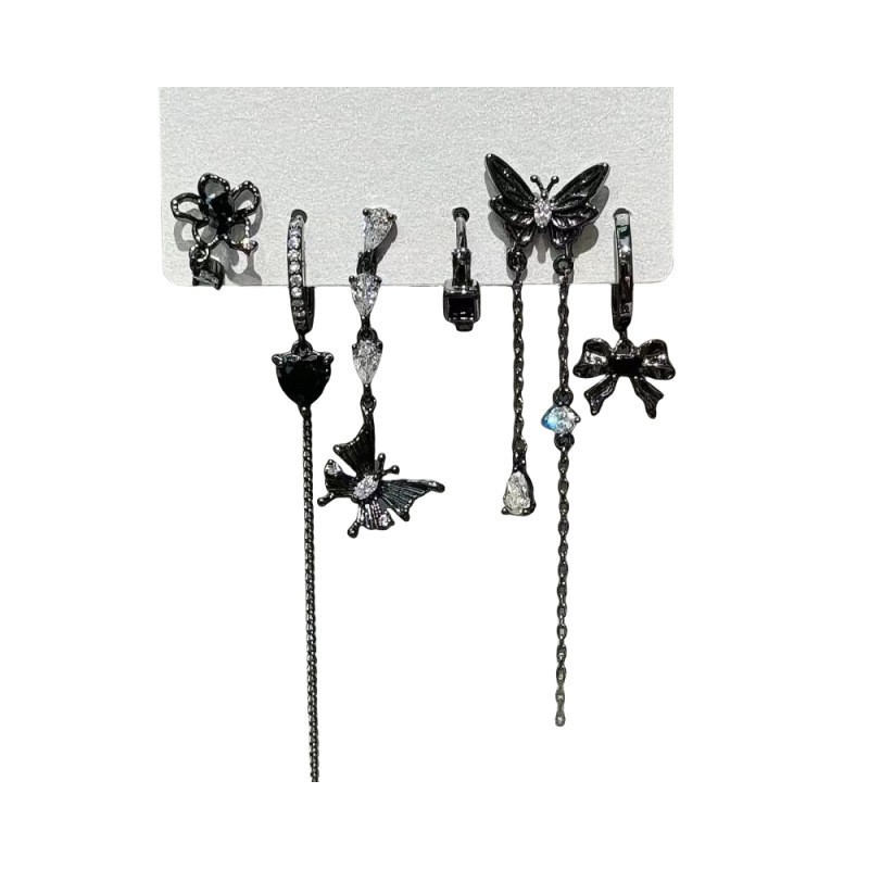 酷grl ! 暗黑蝴蝶流苏六件套耳钉甜酷耳圈小众设计件套耳扣耳饰女