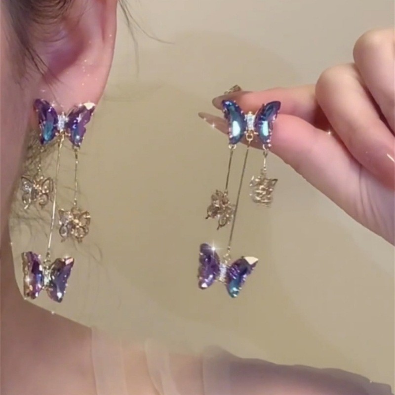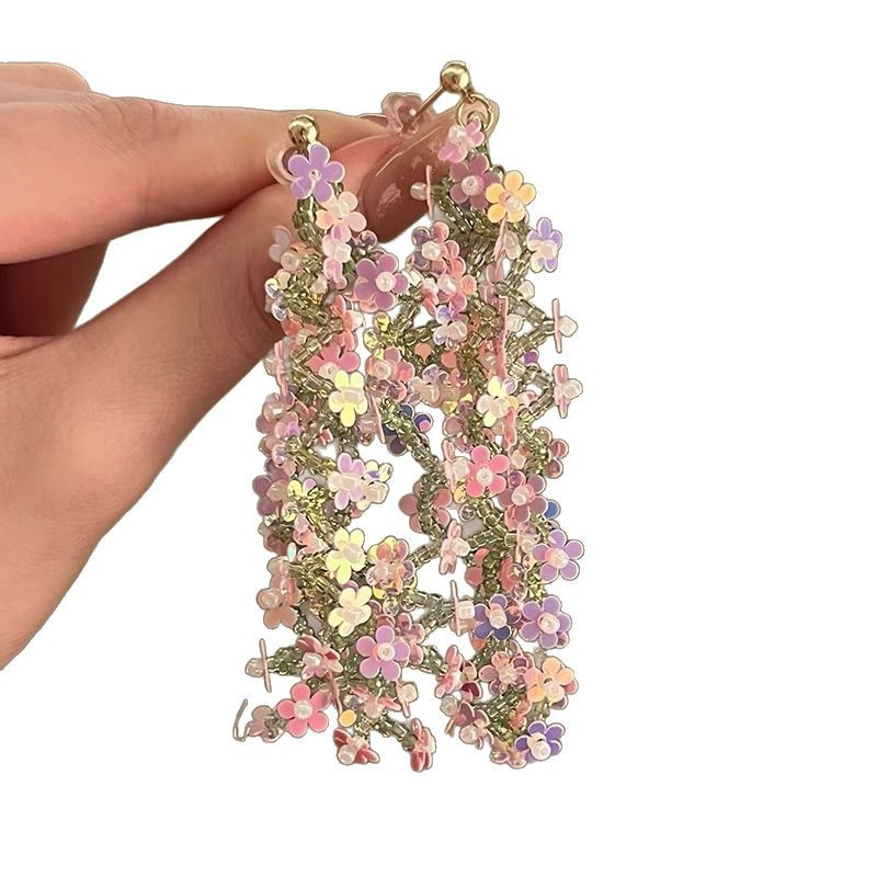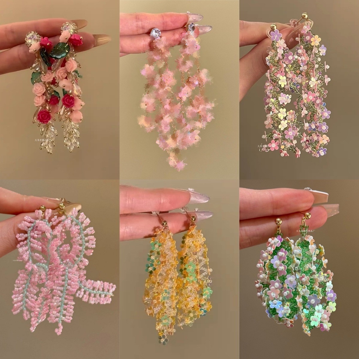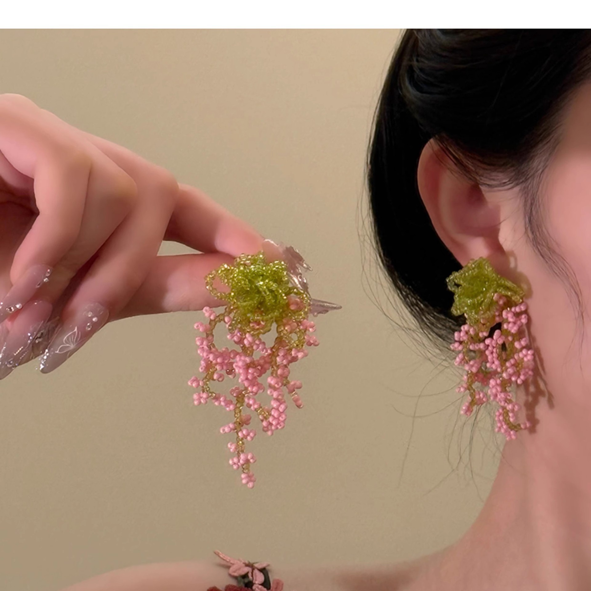 缠春风 超仙法式复古花朵串珠流苏耳环高级感小众气质温柔耳饰女