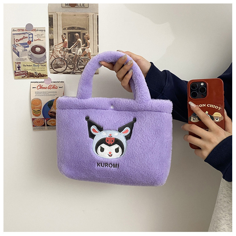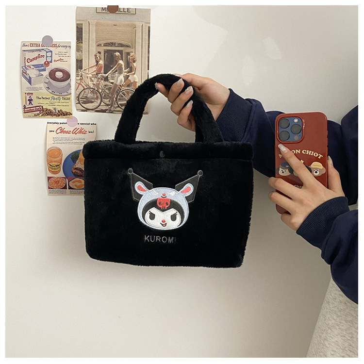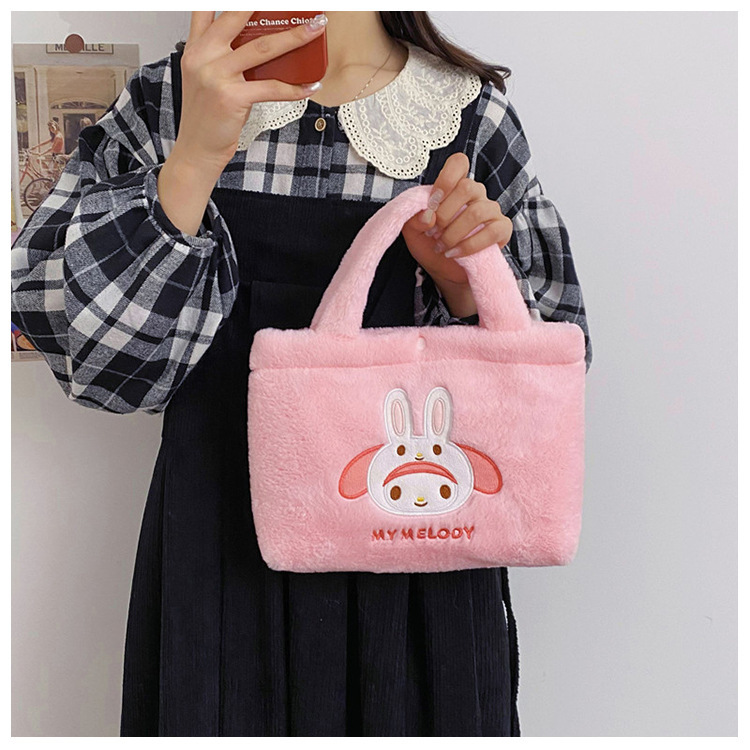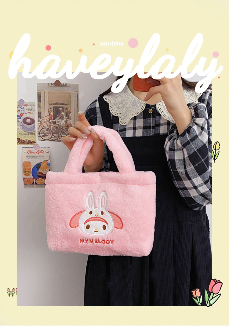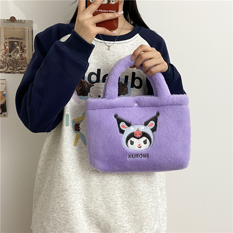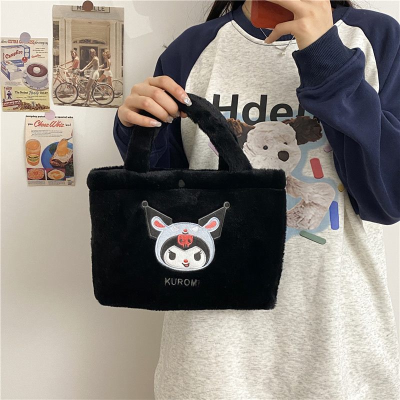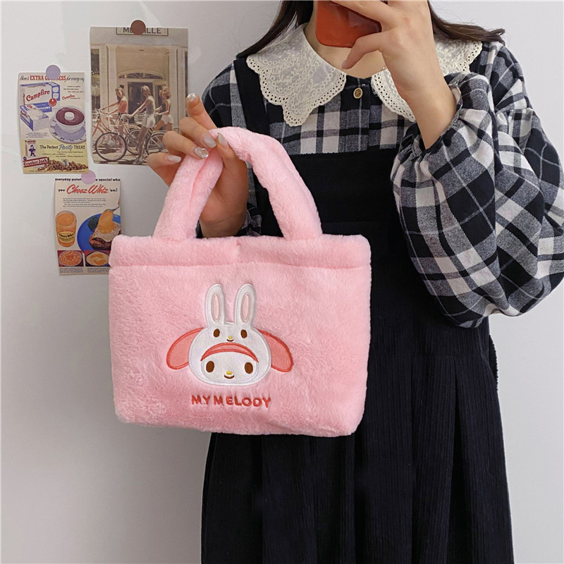 新款包包卡通库洛米美乐蒂毛绒包可爱三丽鸥手提包儿童收纳零钱包