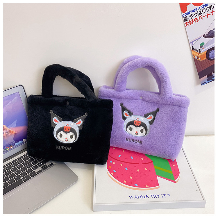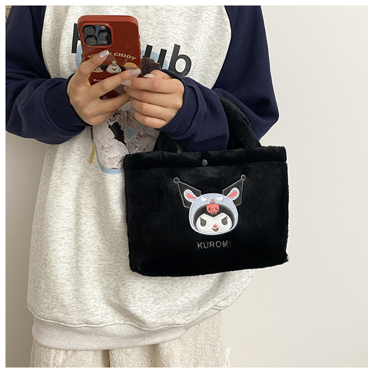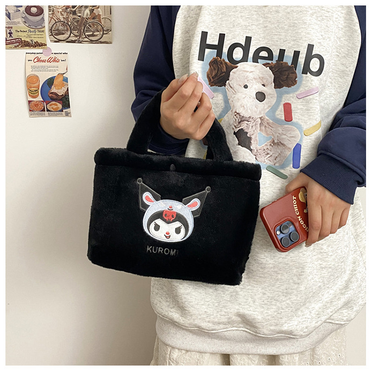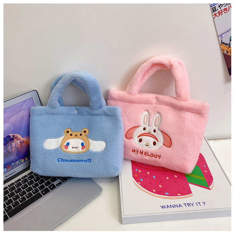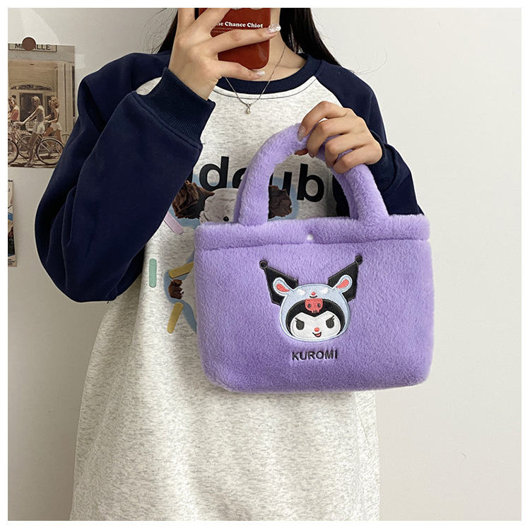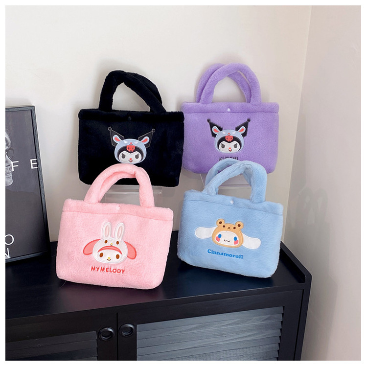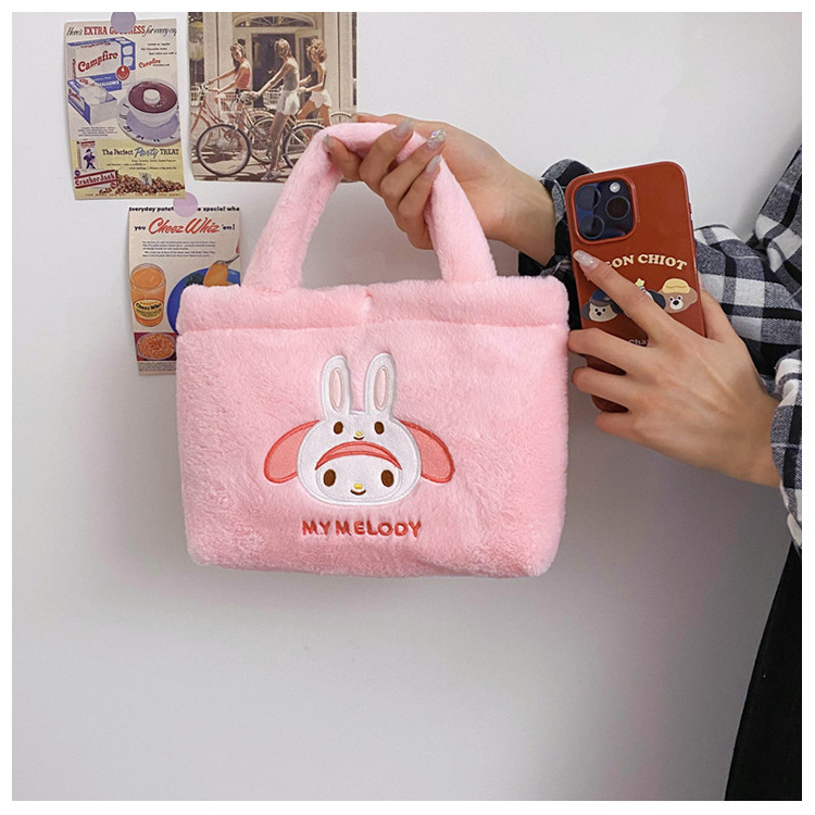 新款包包卡通库洛米美乐蒂毛绒包可爱三丽鸥手提包儿童收纳零钱包