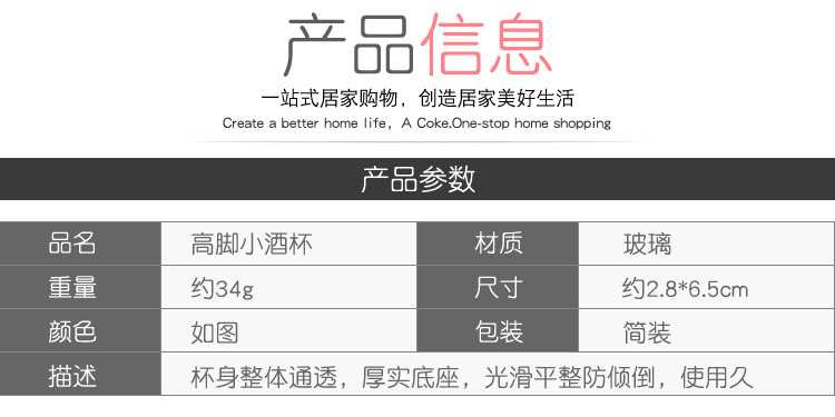 6个玻璃小酒杯一口杯烈酒家用酒盅白酒杯分酒器高脚杯喝酒杯酒具