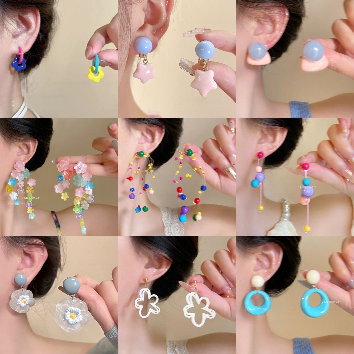 多巴胺花花贝壳耳钉女春天独特漂亮甜美撞色耳坠彩色夸张旅游耳饰