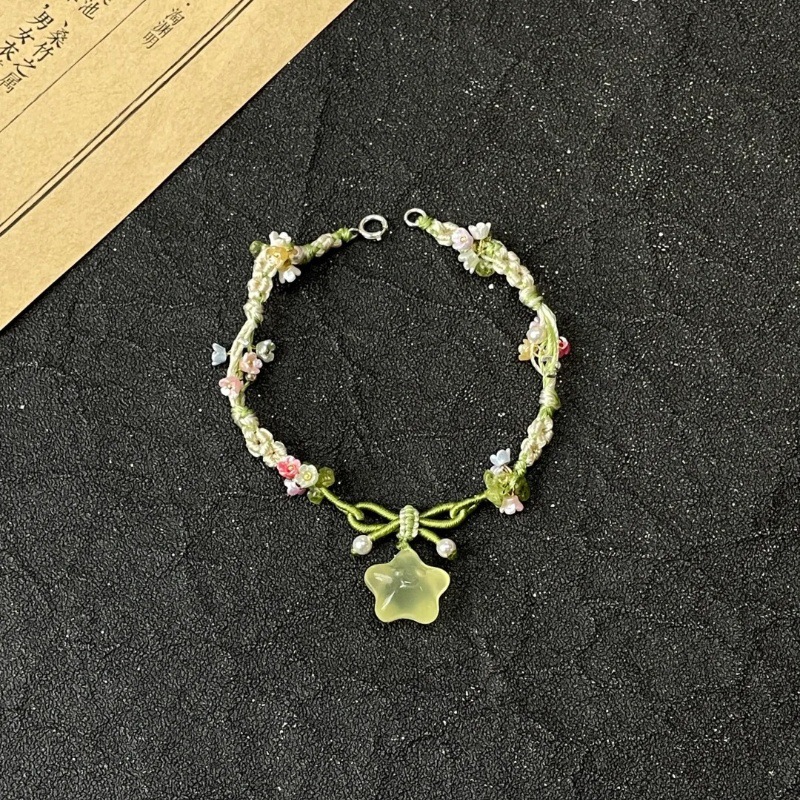 关于夏天冰透小星星绿水晶五彩小花编织项链手绳百搭个性甜美可爱