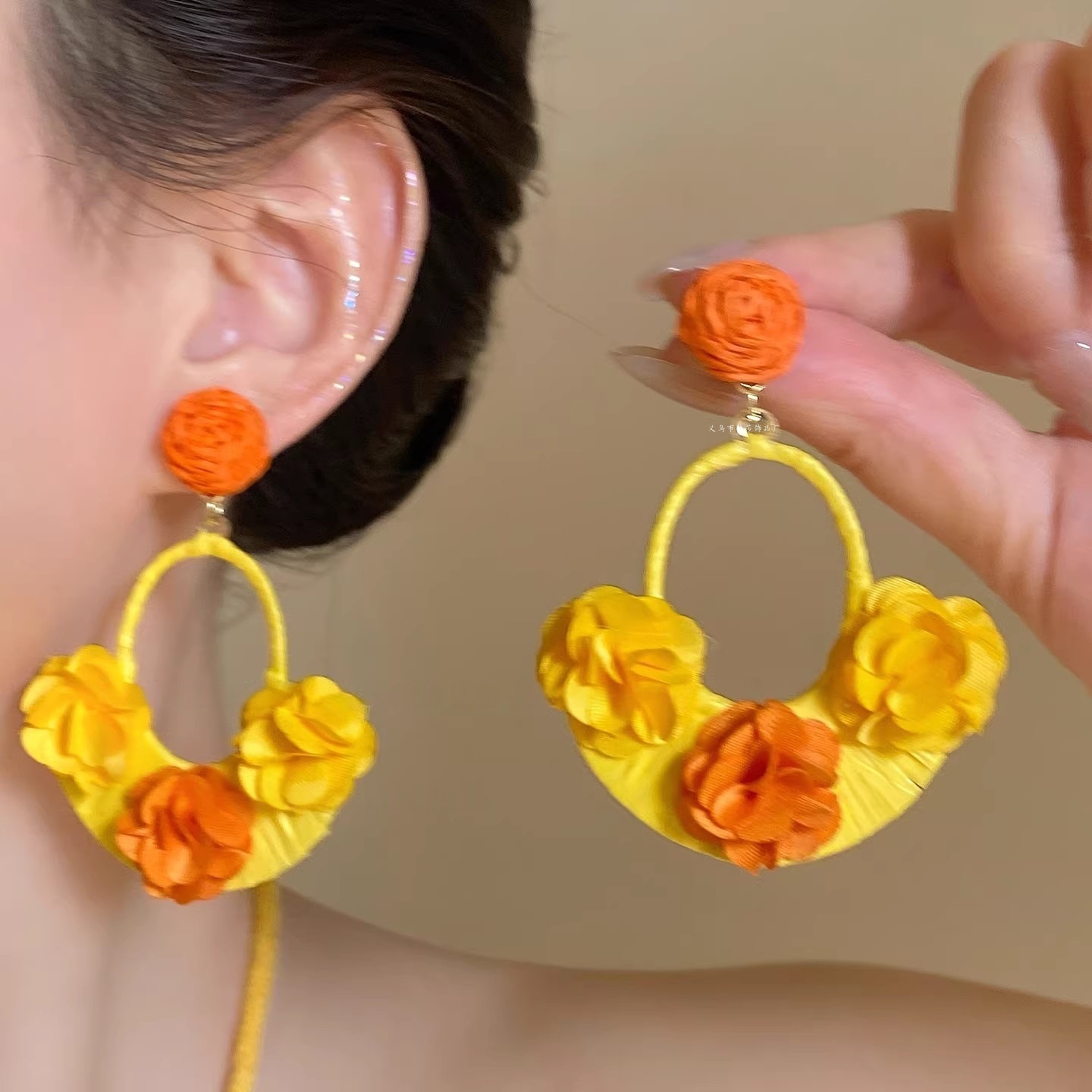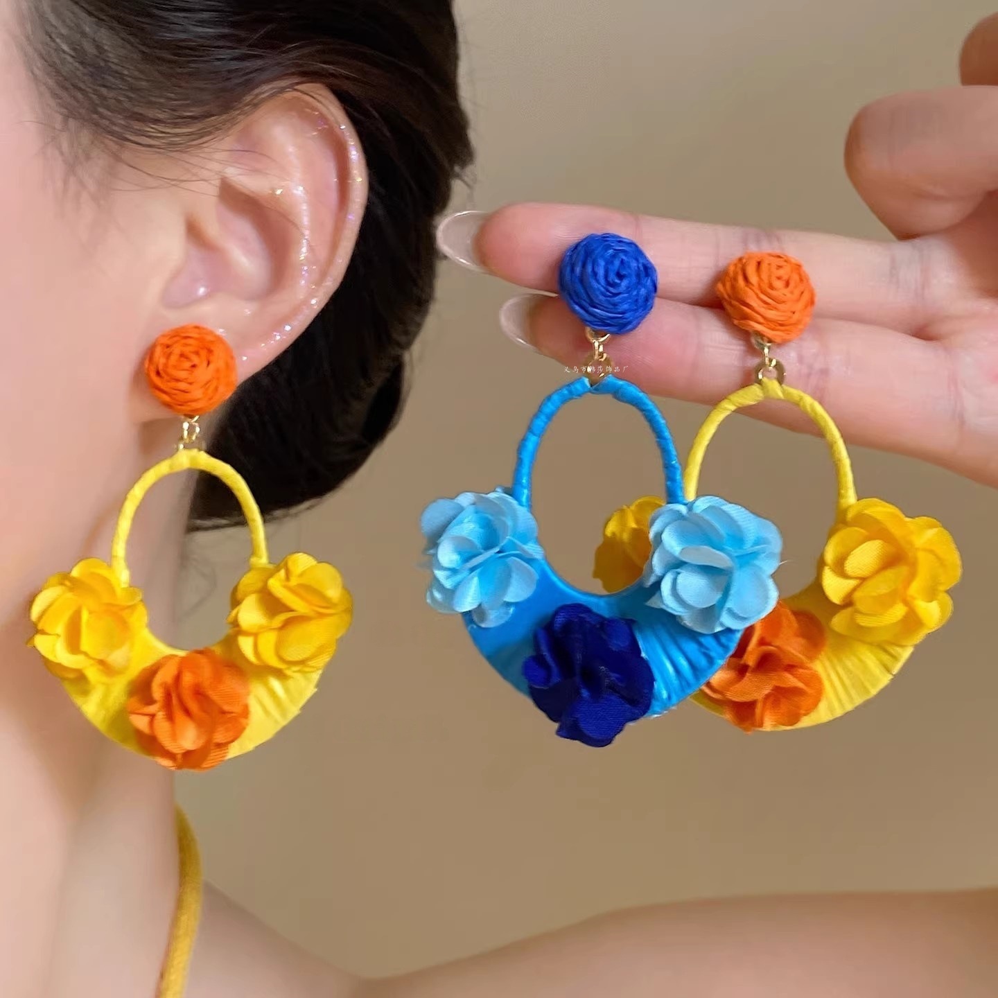 超仙绝美夸张花朵耳环女海边度假风高级感耳钉超好看独特漂亮耳饰