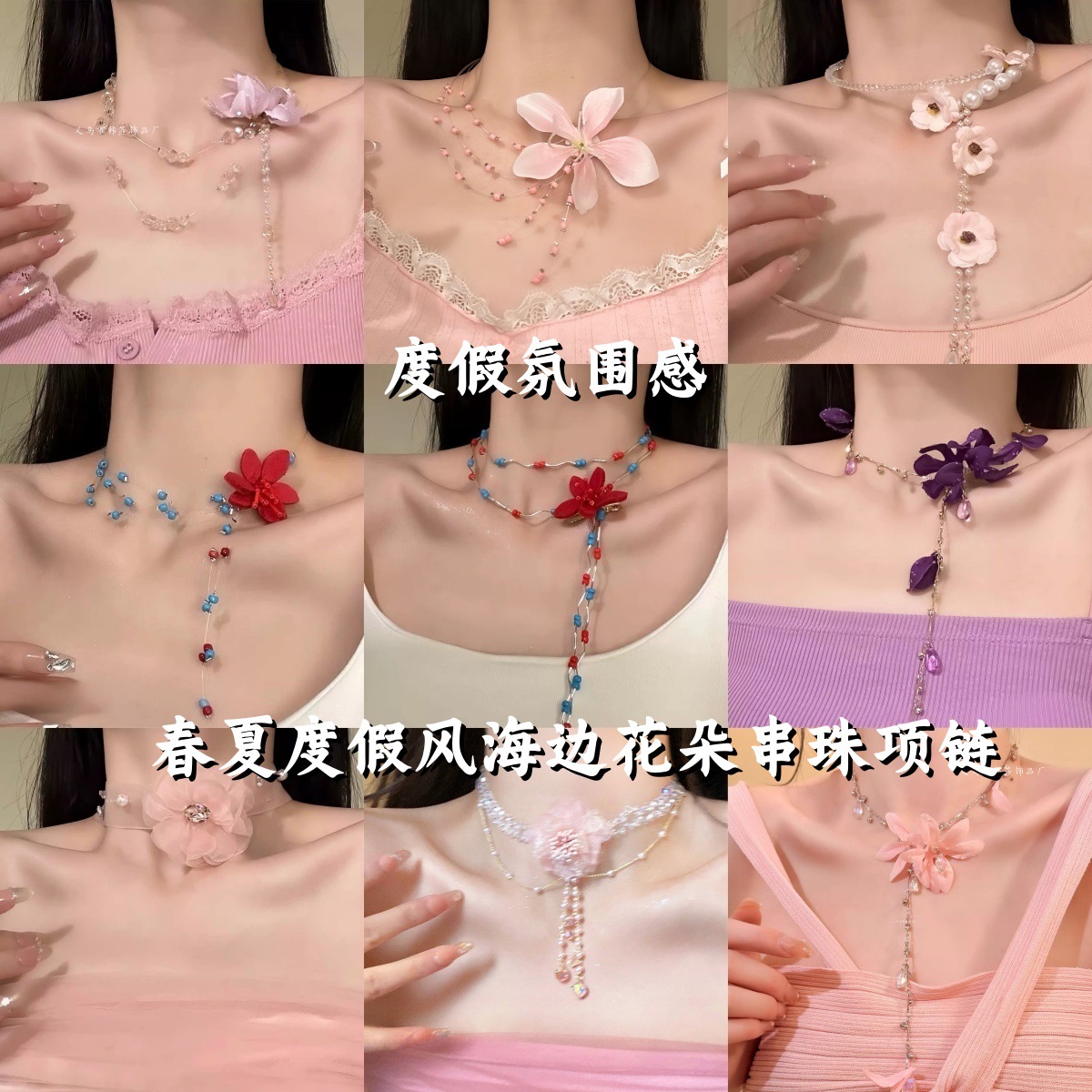 春夏季纯欲风花朵串珠项链锁骨链女春日甜美明媚choker高级感颈链