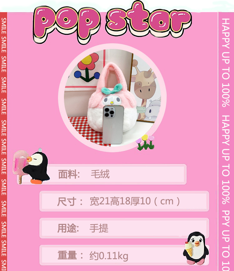 卡通三丽鸥毛绒包可爱库洛米斜跨包儿童百搭卡皮巴拉零钱包儿童包