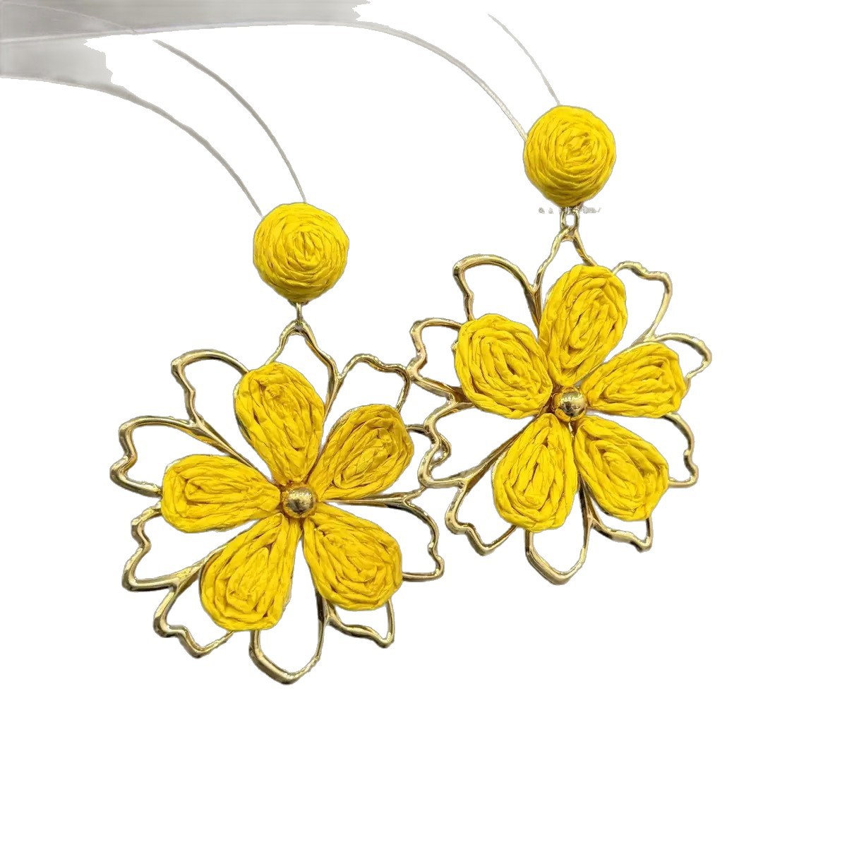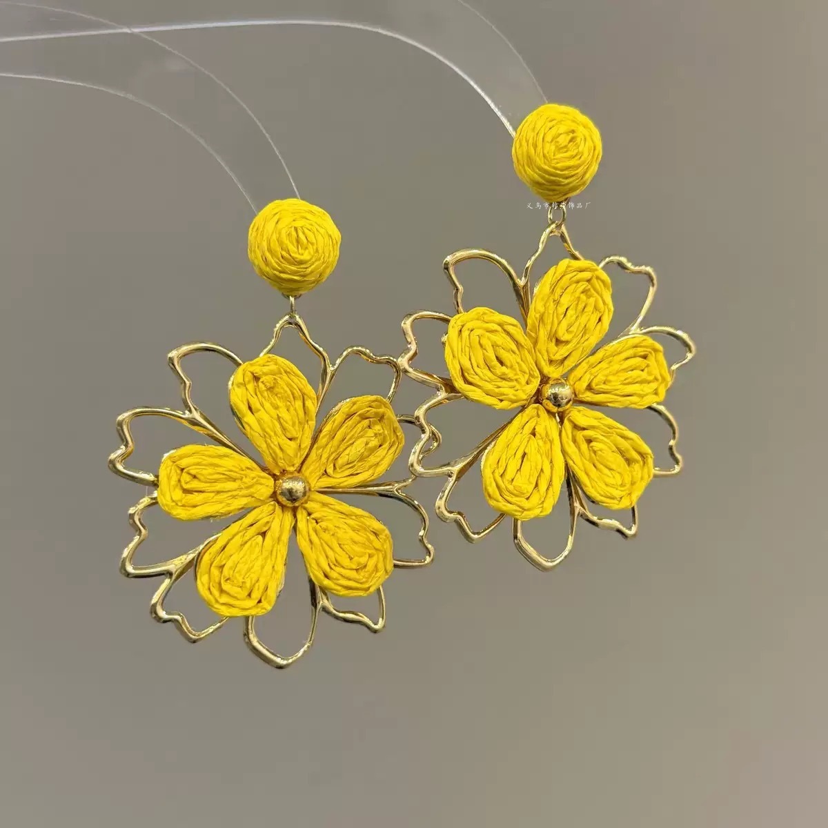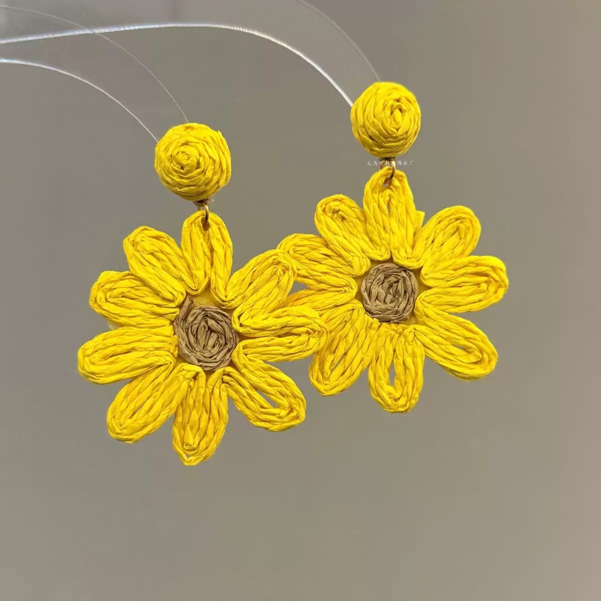 风吹岛屿 度假风编织太阳花朵耳环女高级感耳饰夸张海边绝美耳钉