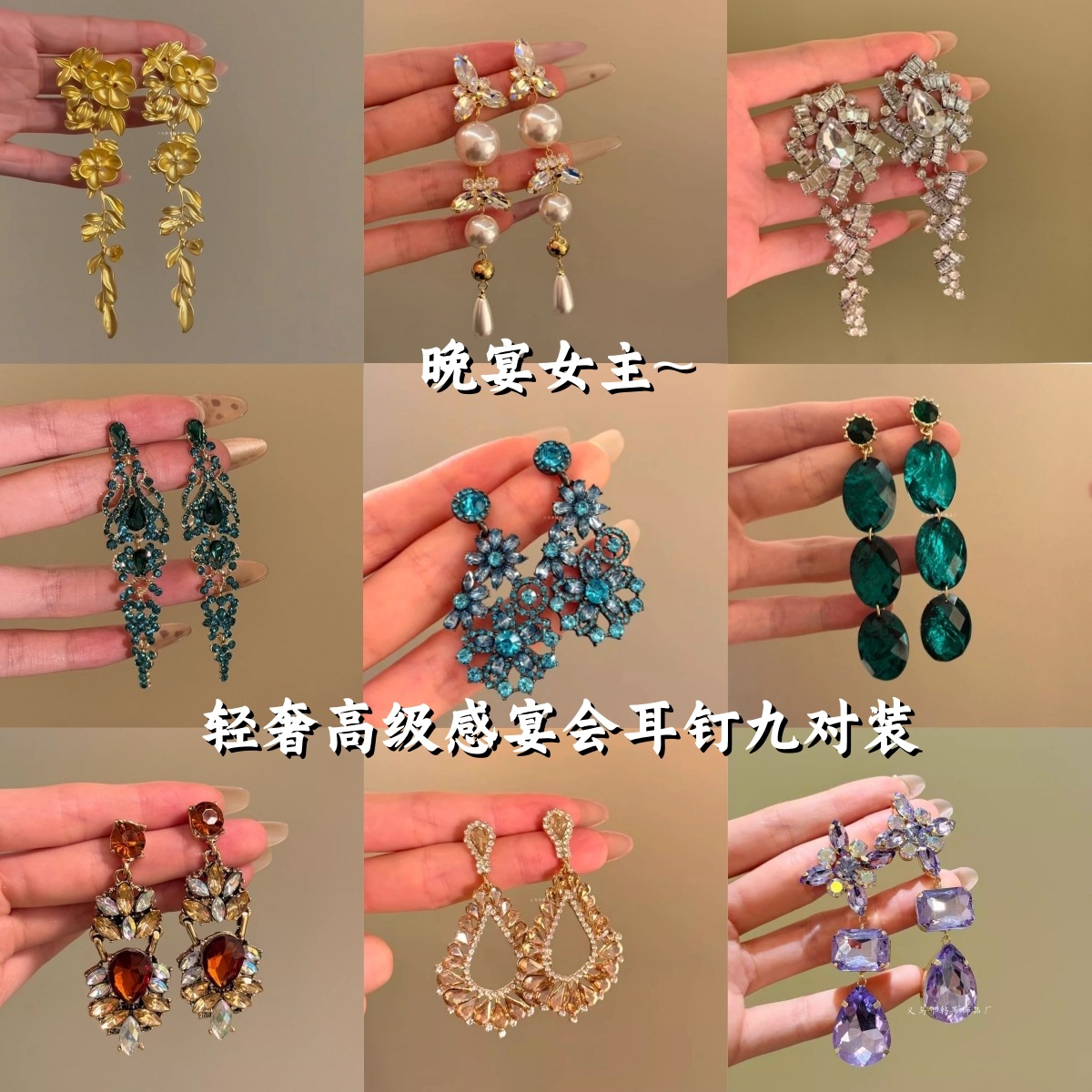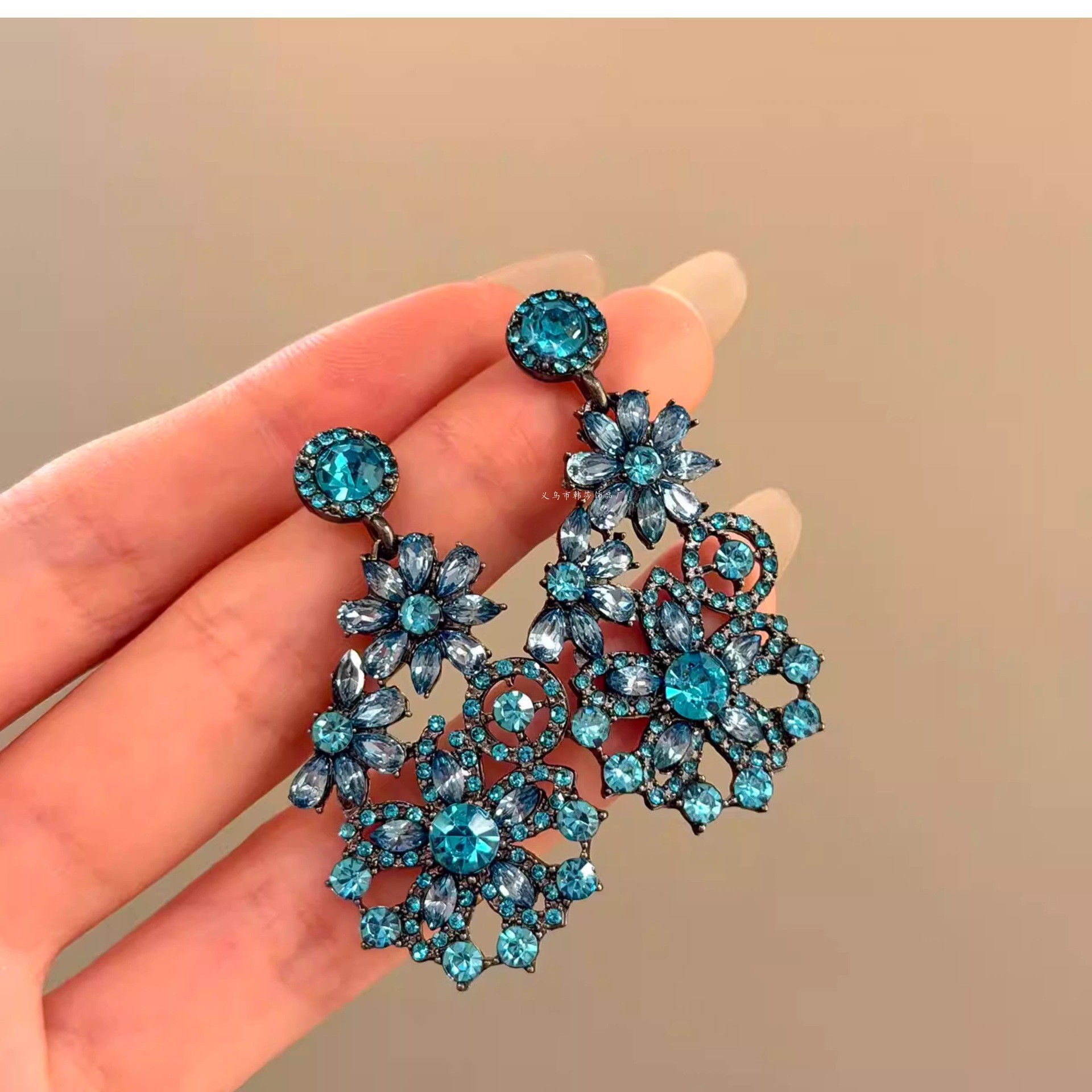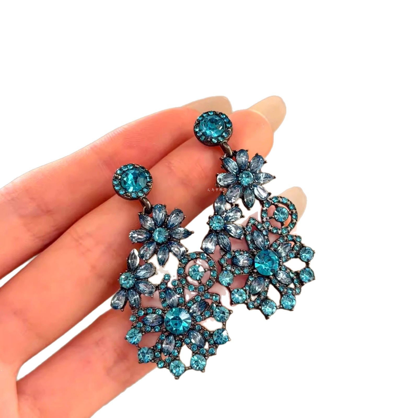 晚宴女主!巨显白蓝色闪钻耳环女重工轻奢高级感耳饰名媛风耳钉