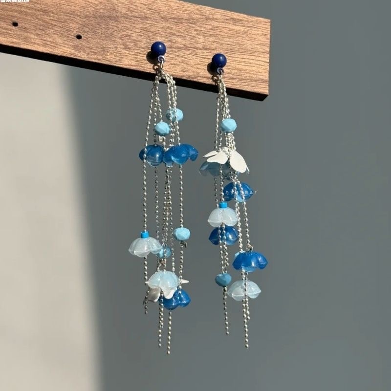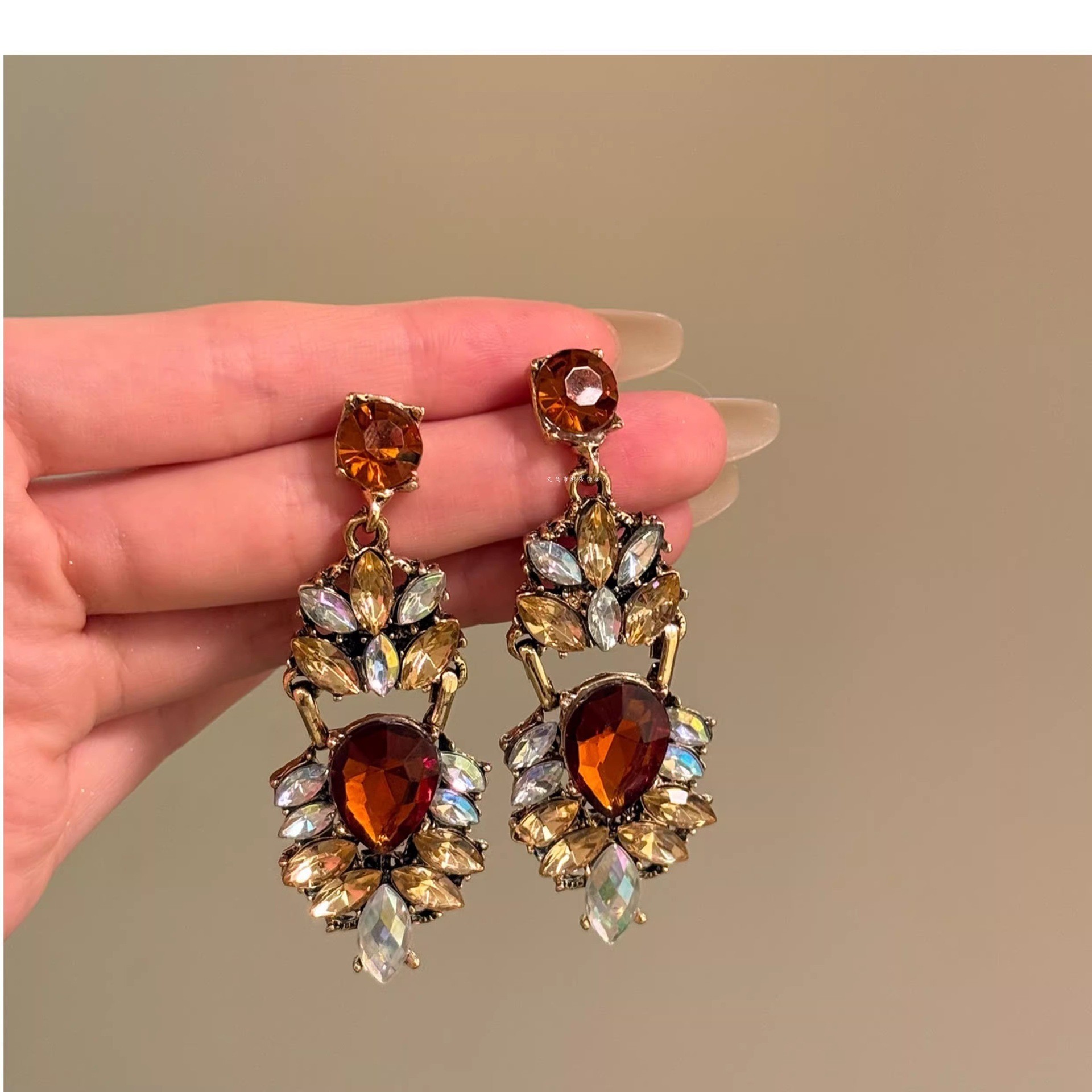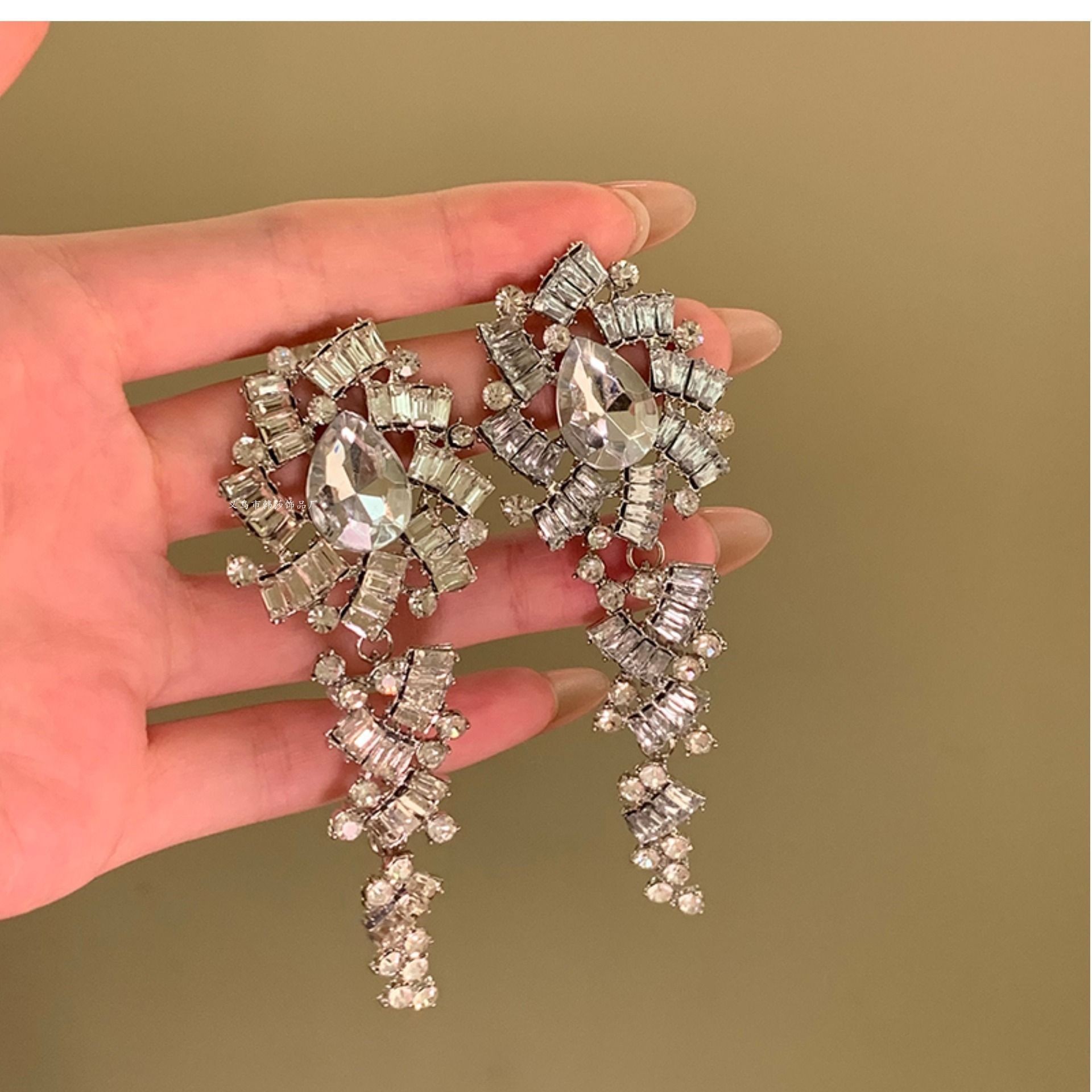 晚宴女主!巨显白蓝色闪钻耳环女重工轻奢高级感耳饰名媛风耳钉