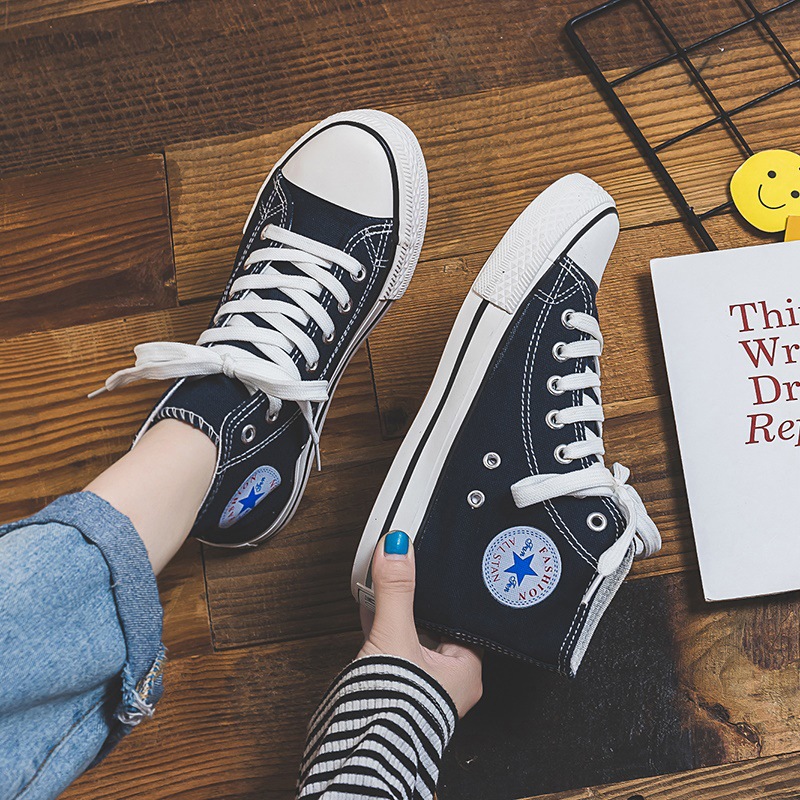 春秋新款帆布鞋女学生1970s高帮系带韩版球鞋ing潮款板鞋潮流