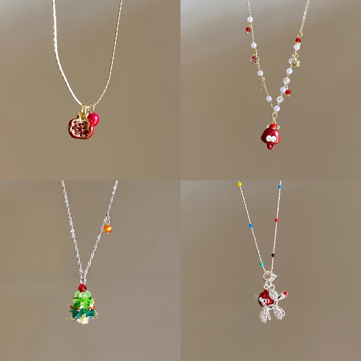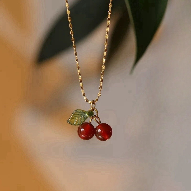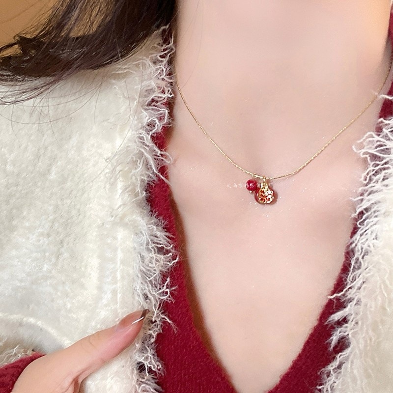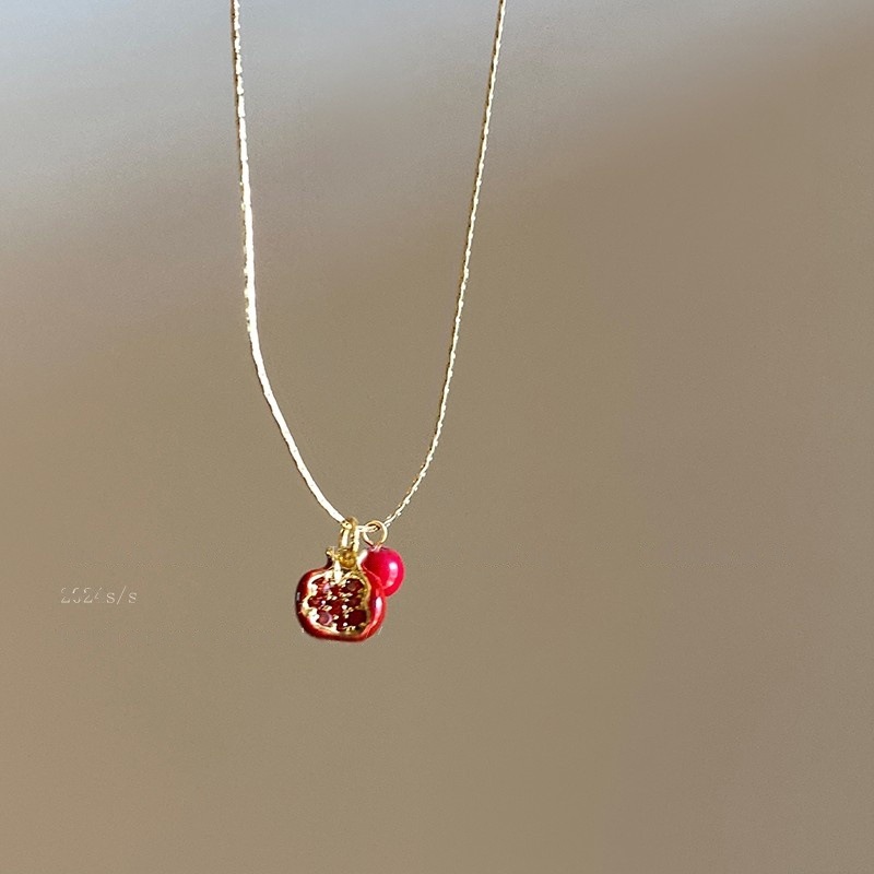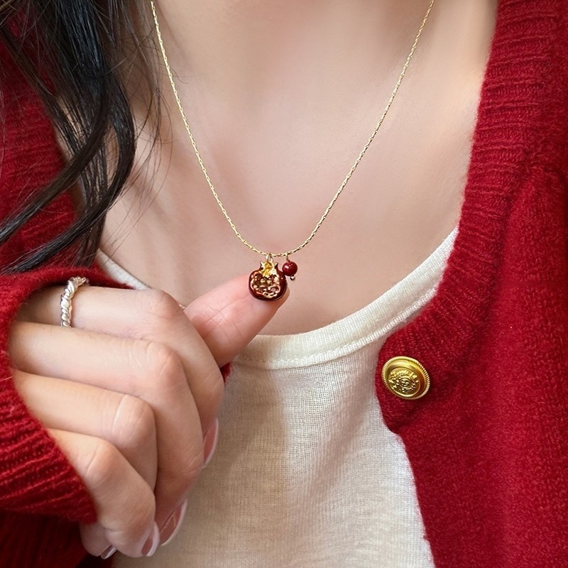 安可拉红石榴项链女秋冬高级感精致锁骨链复古简约新款毛衣链配饰