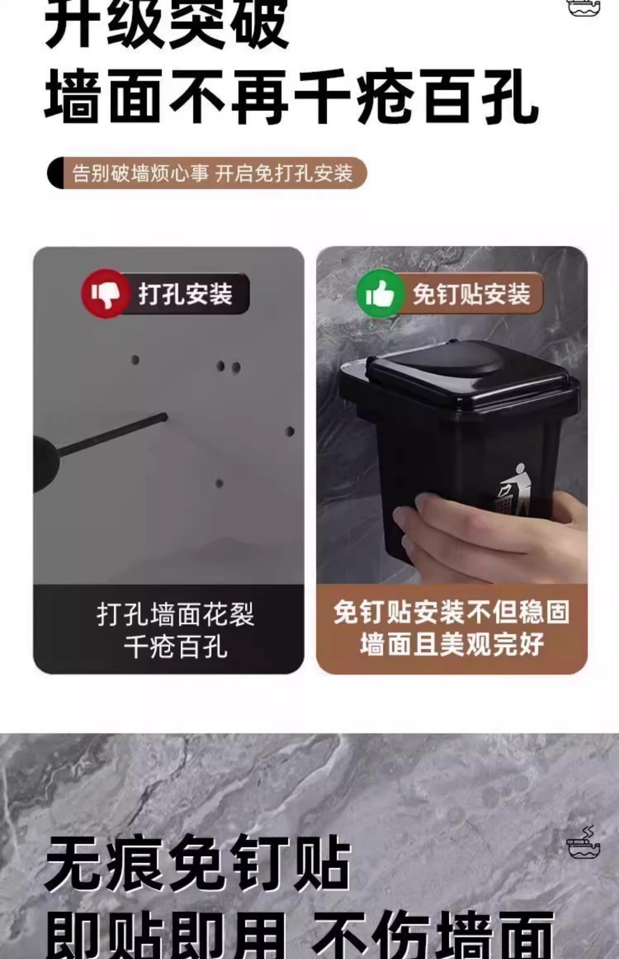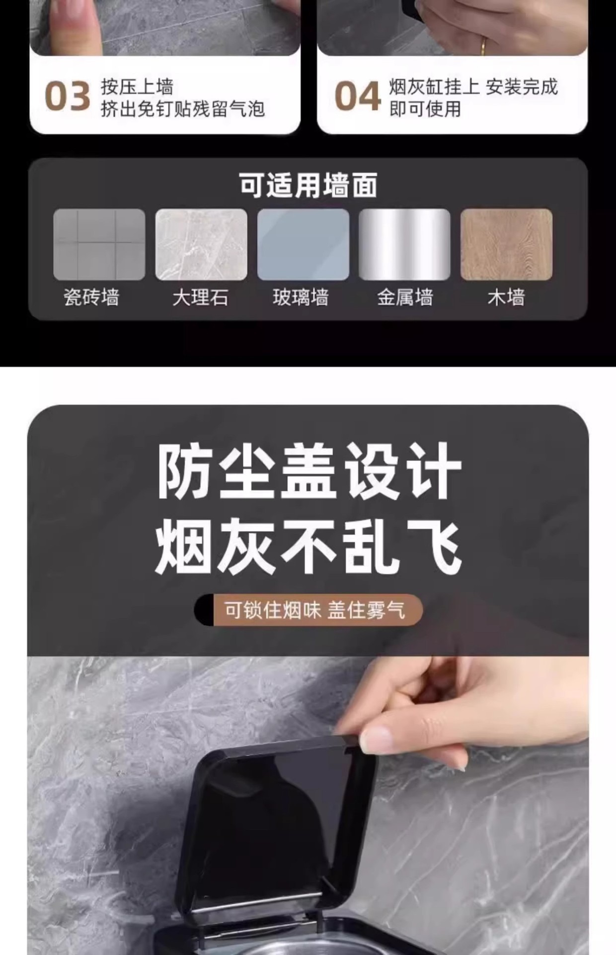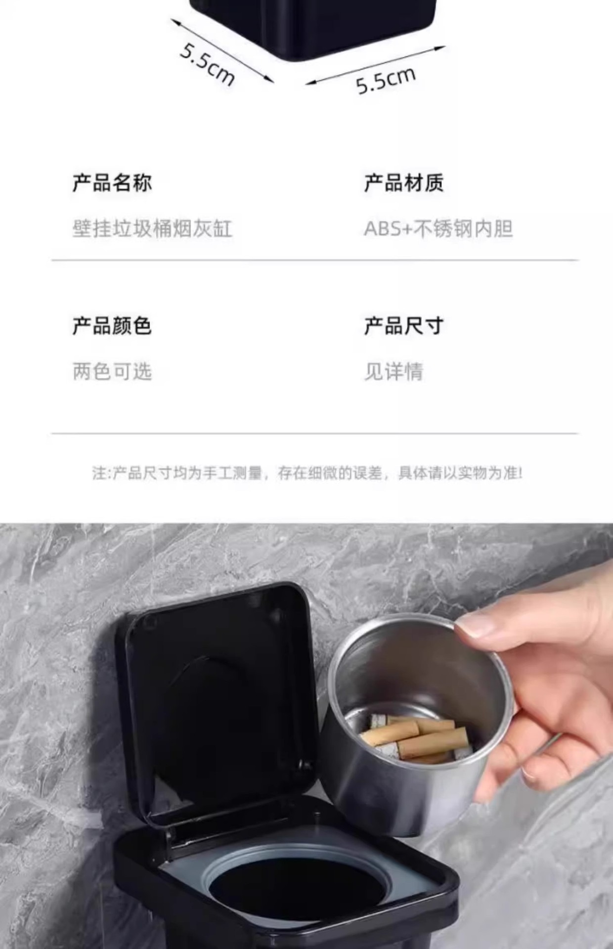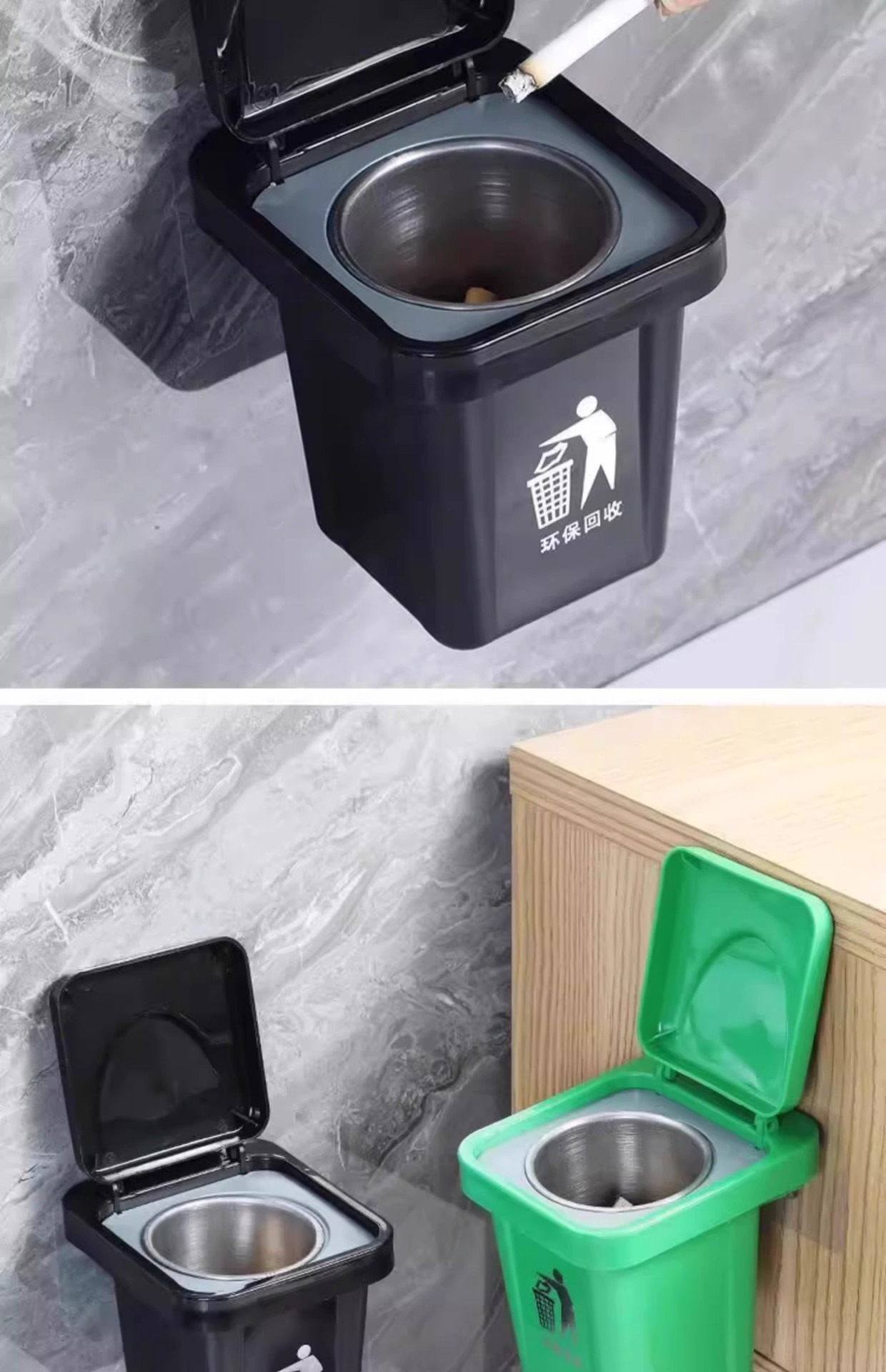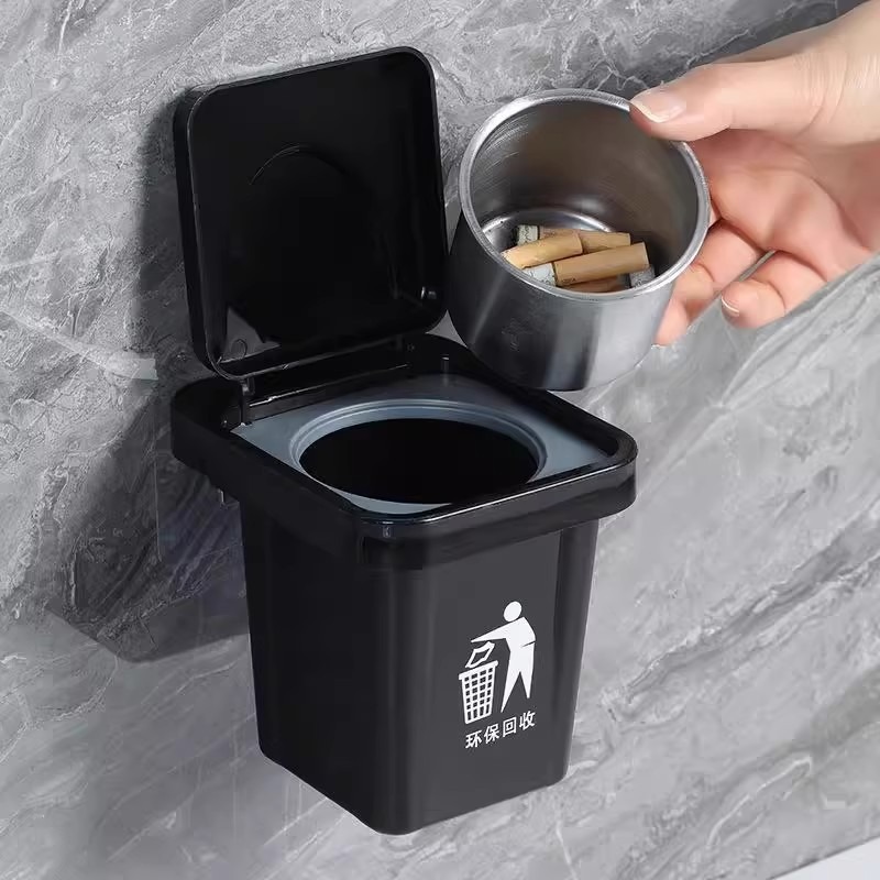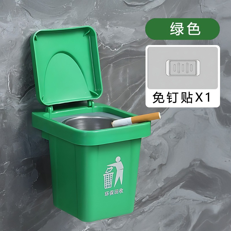 创意壁挂式垃圾桶烟灰缸收纳盒不锈钢内胆带盖防飞灰卫生间烟灰缸