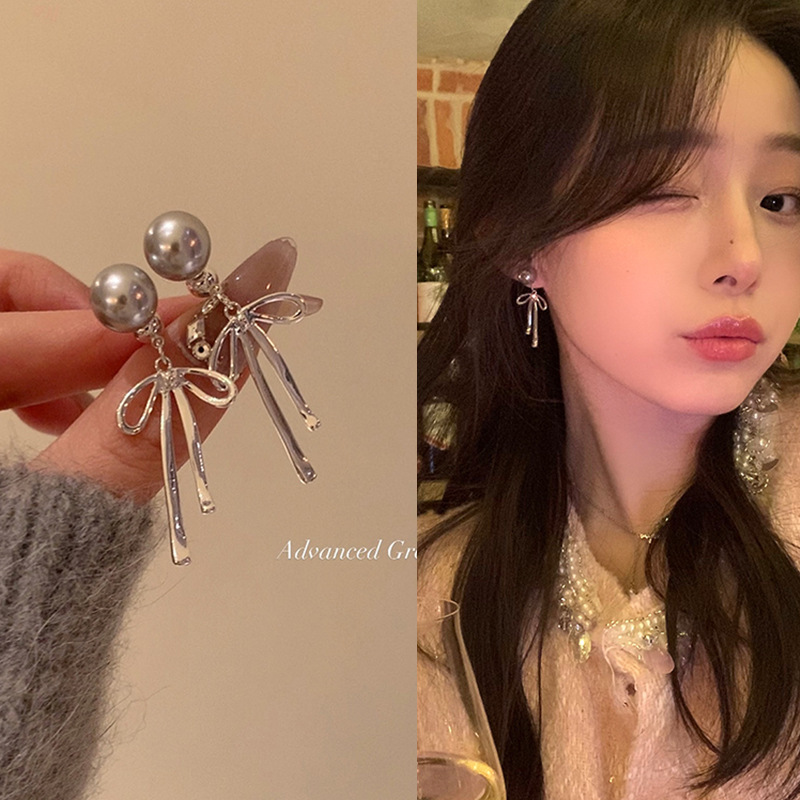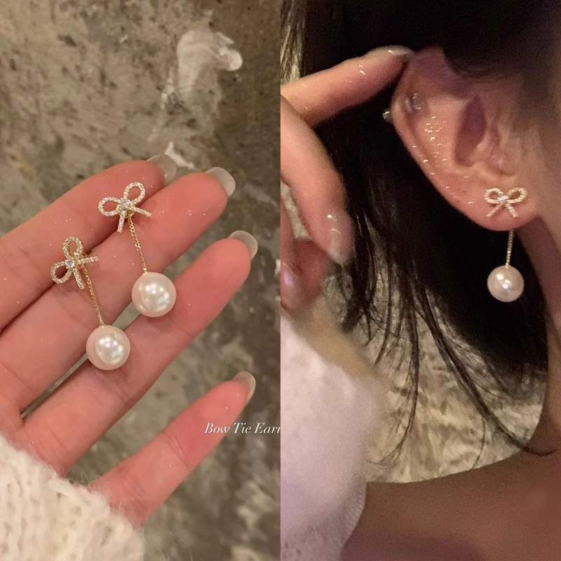 韩系精致锆石蝴蝶结耳环女高级感轻奢气质流苏耳钉爆款百搭耳饰品