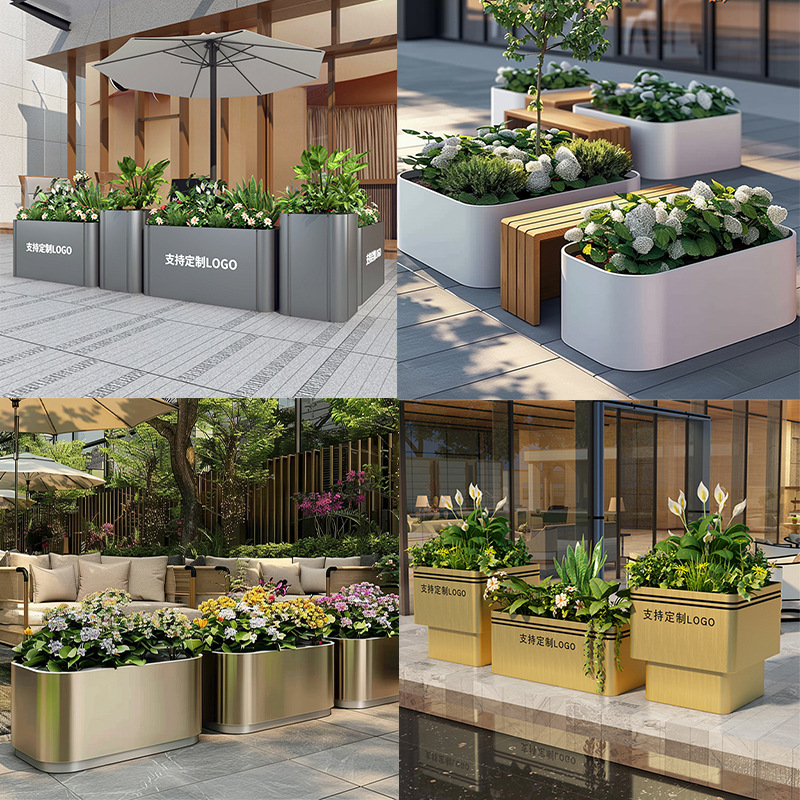 户外不锈钢花箱组合外摆花架花池隔断围栏花坛室外售楼部花盆花箱