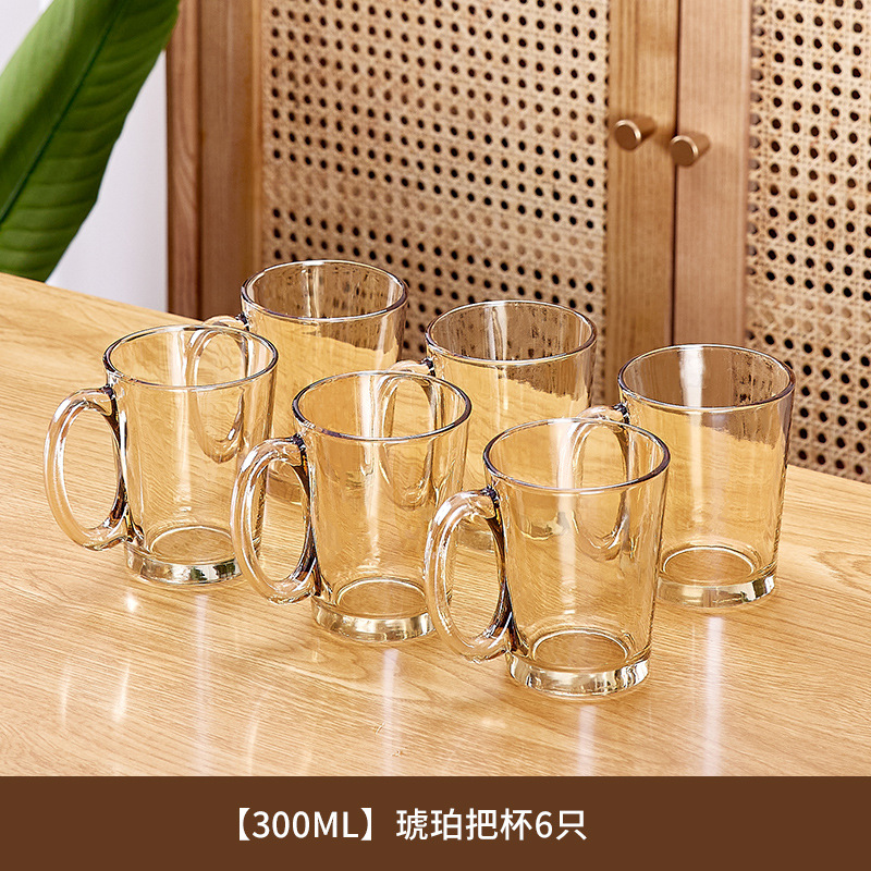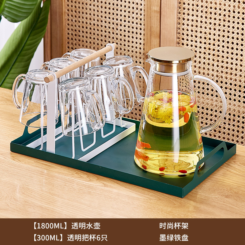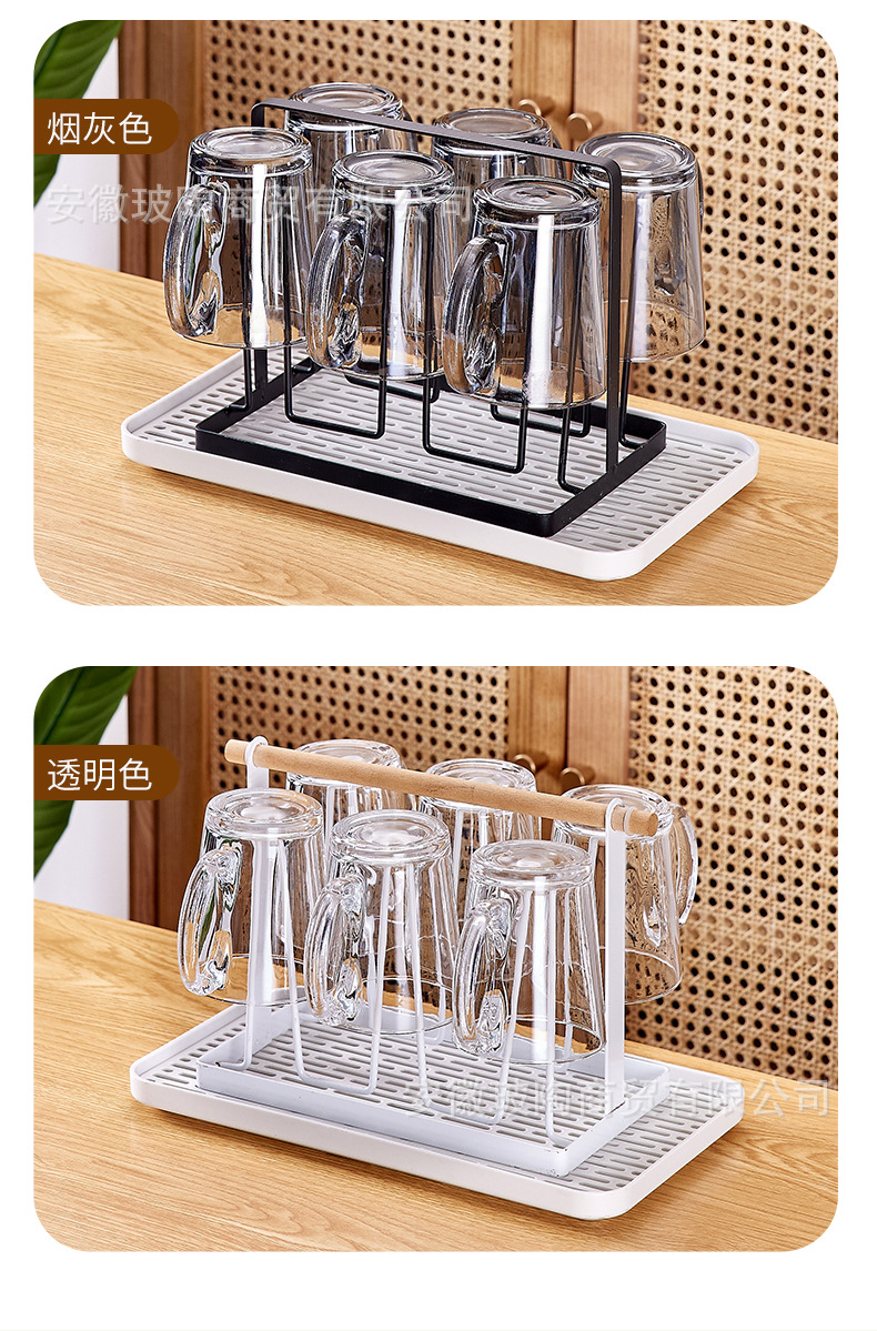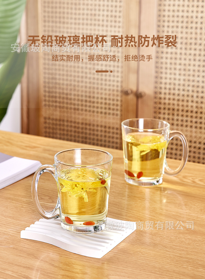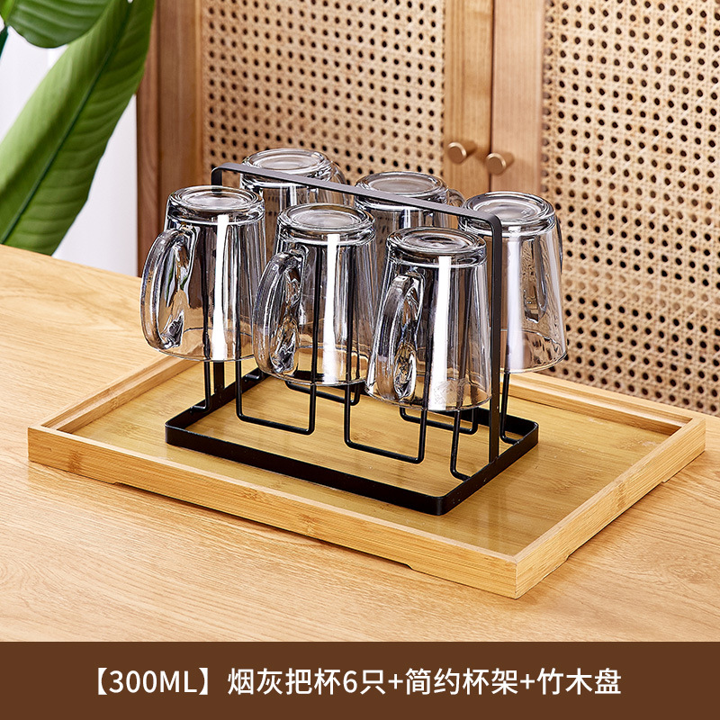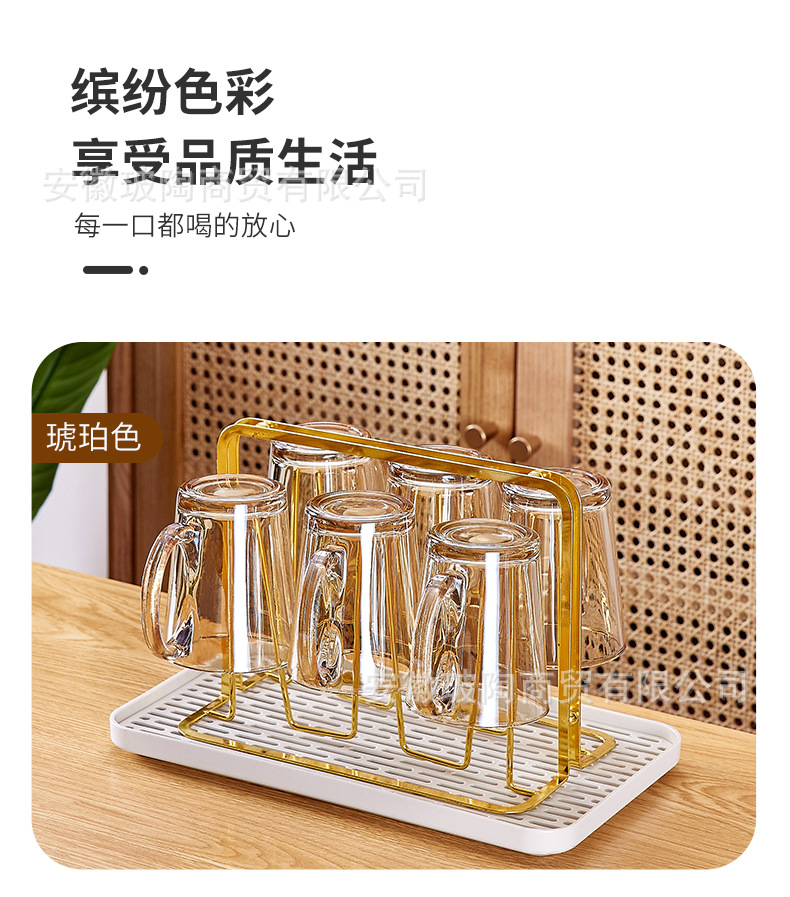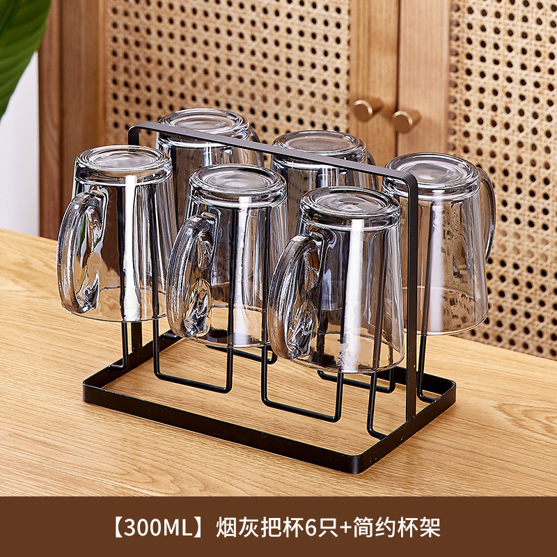 玻璃耐高温杯子套装家用家庭客厅待客茶杯水杯带把手喝水杯子杯架
