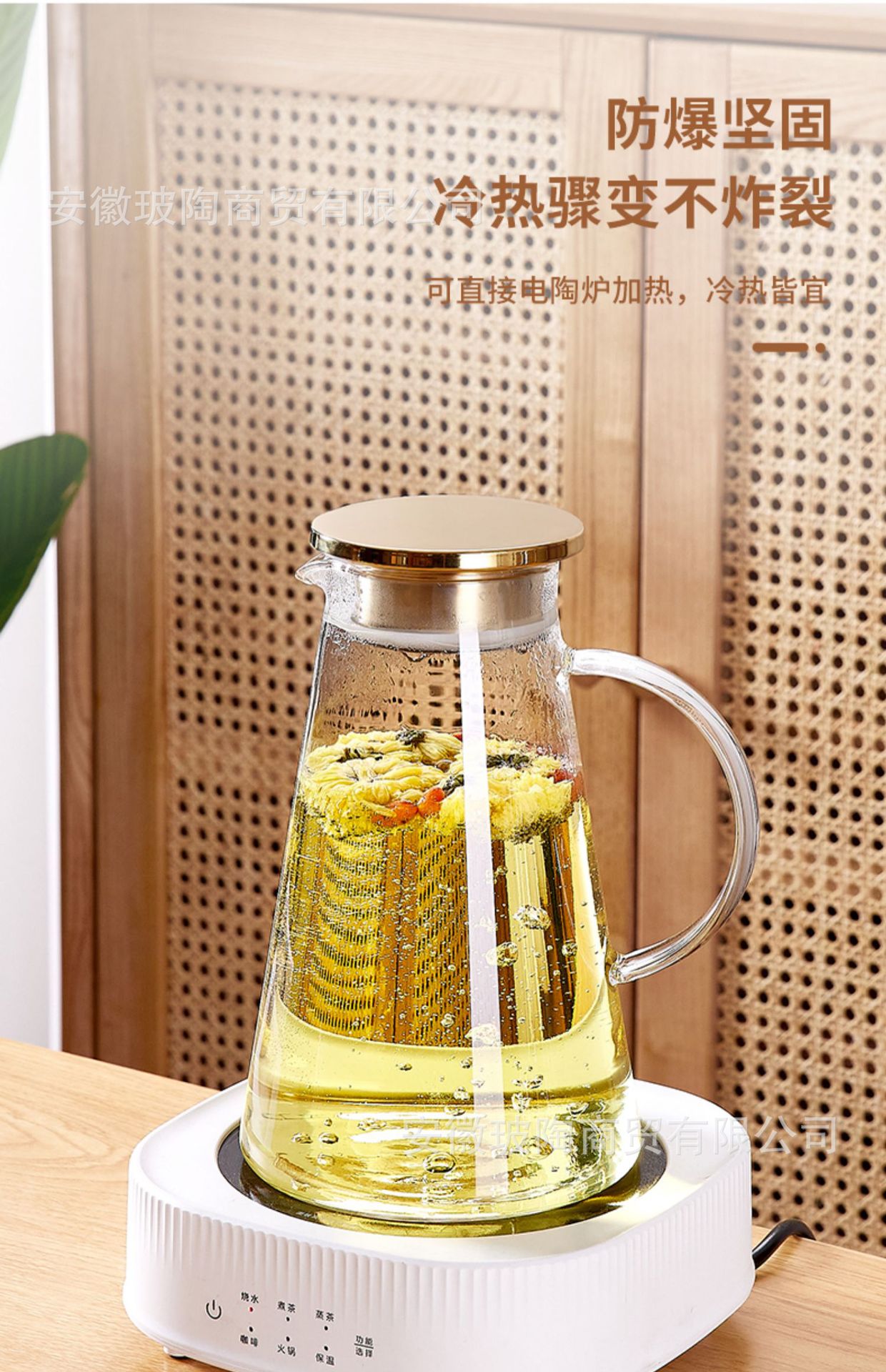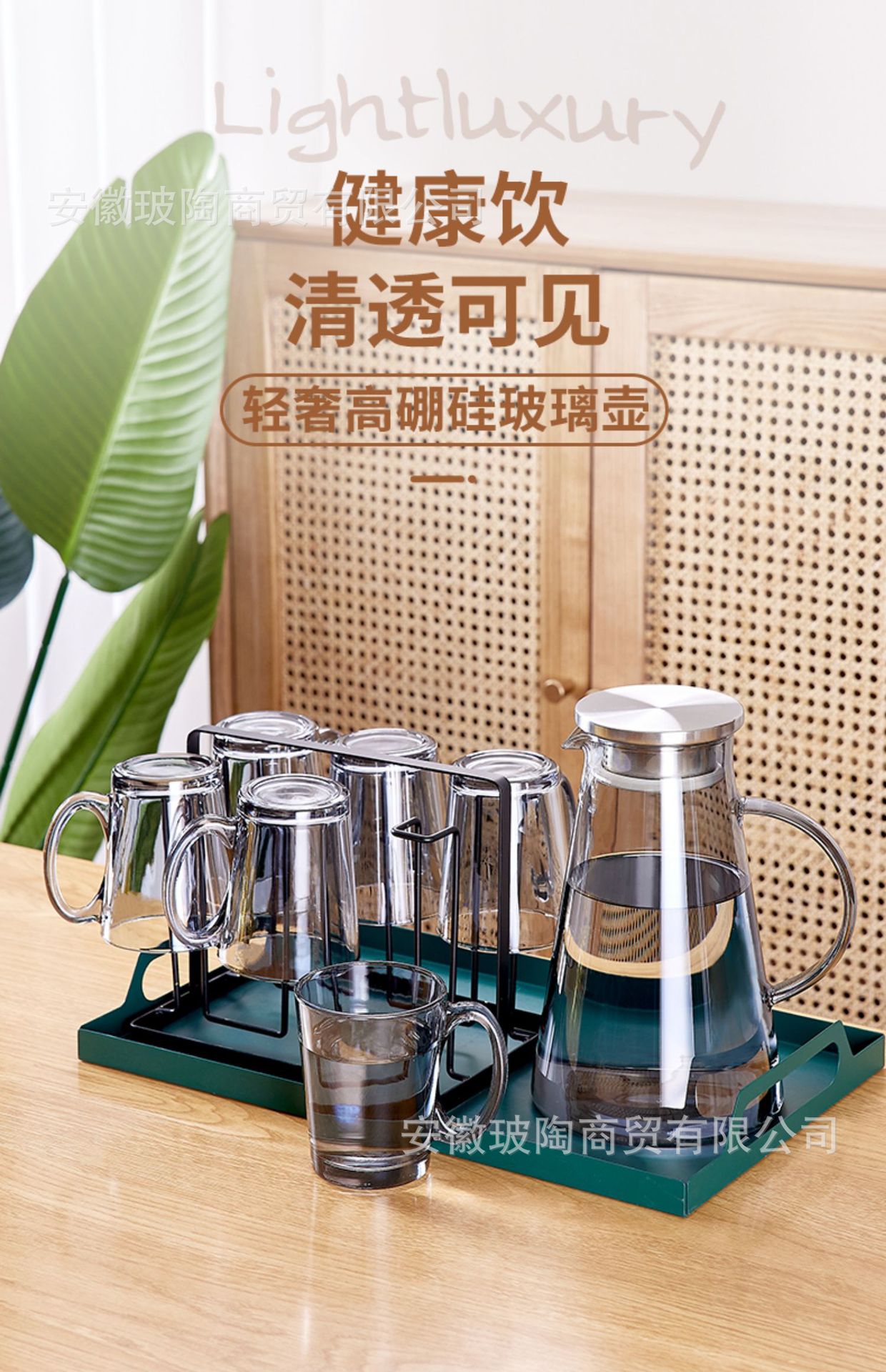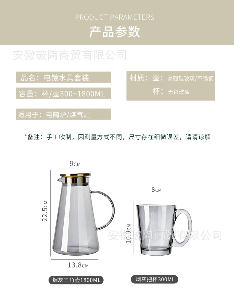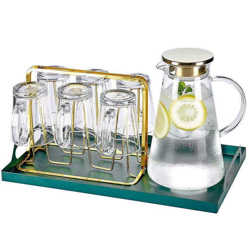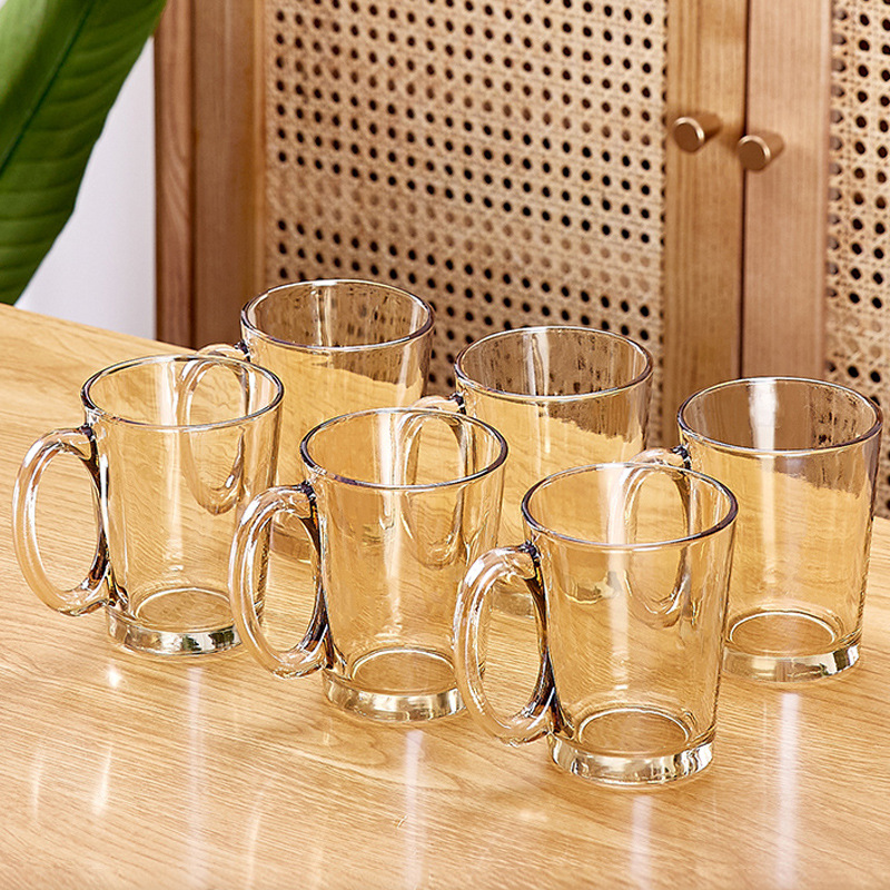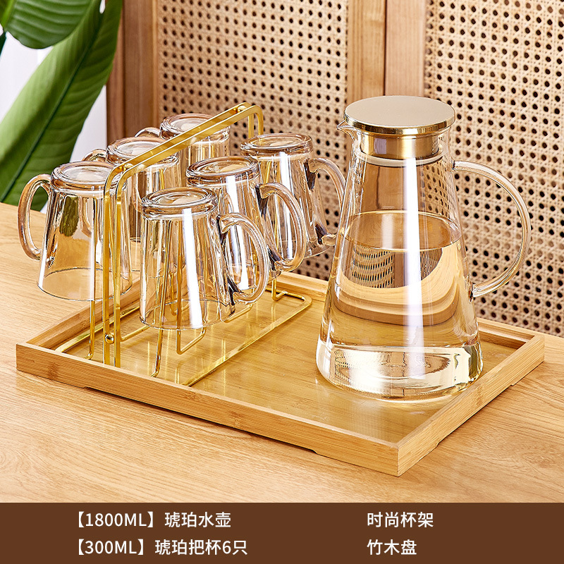 玻璃耐高温杯子套装家用家庭客厅待客茶杯水杯带把手喝水杯子杯架