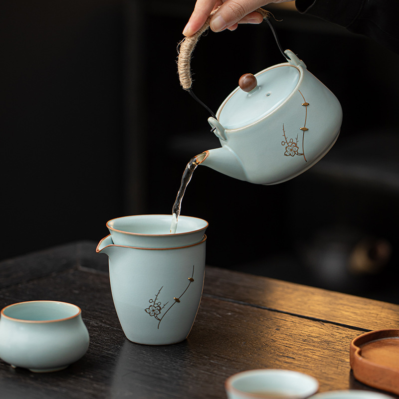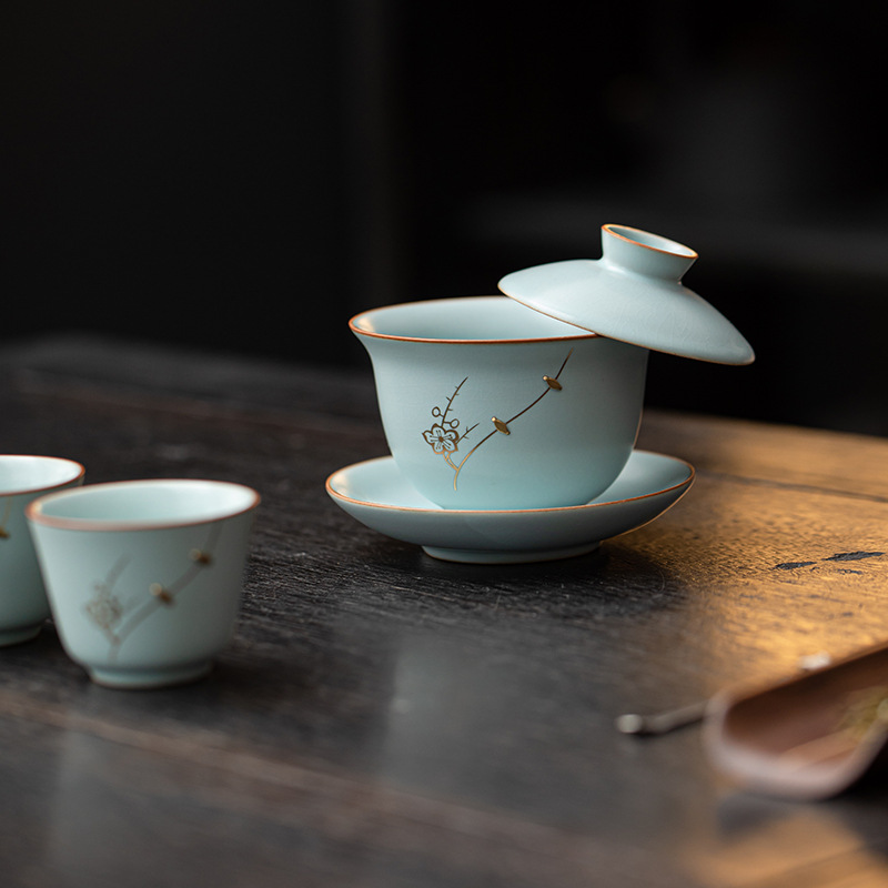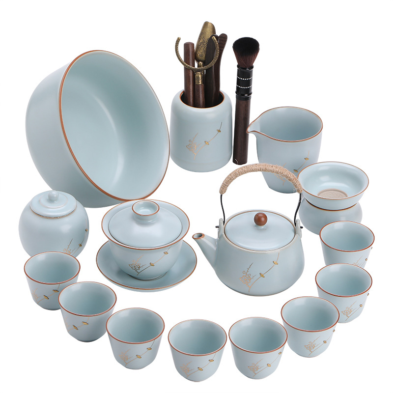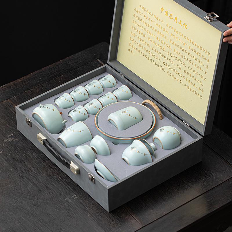 高档汝窑茶具套装茶杯汝窑陶瓷开片茶具礼盒装公司商务礼品送客户